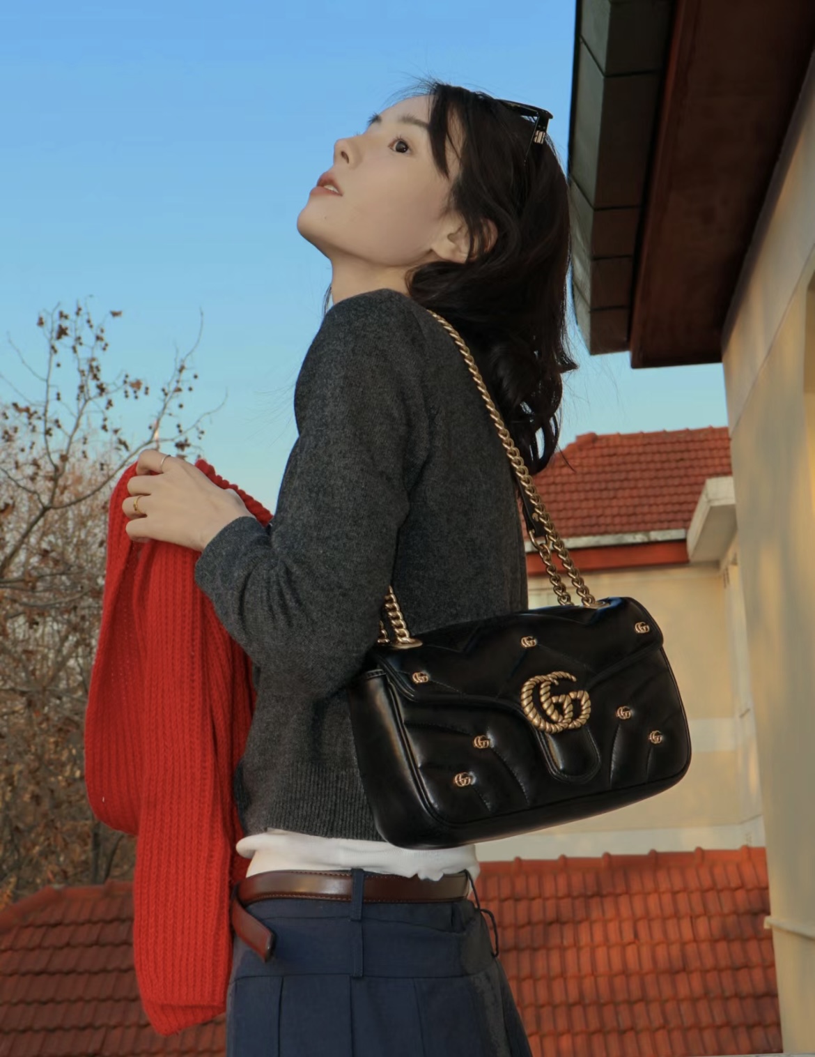 这款包包是AAAAA 1:1 质量 (非常棒). 使用了和原版一模一样的材料. 商标部分也保持了和古奇/Gucci一样. 图片拍摄是实物包包拍摄, 您所收到的实物保证和我们图片一模一样.