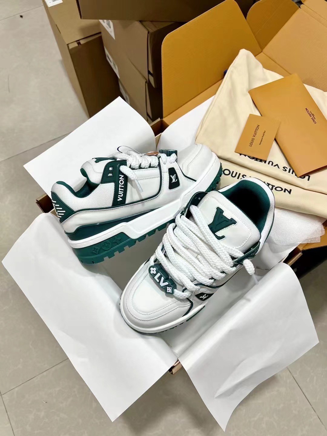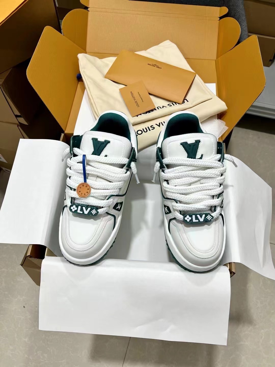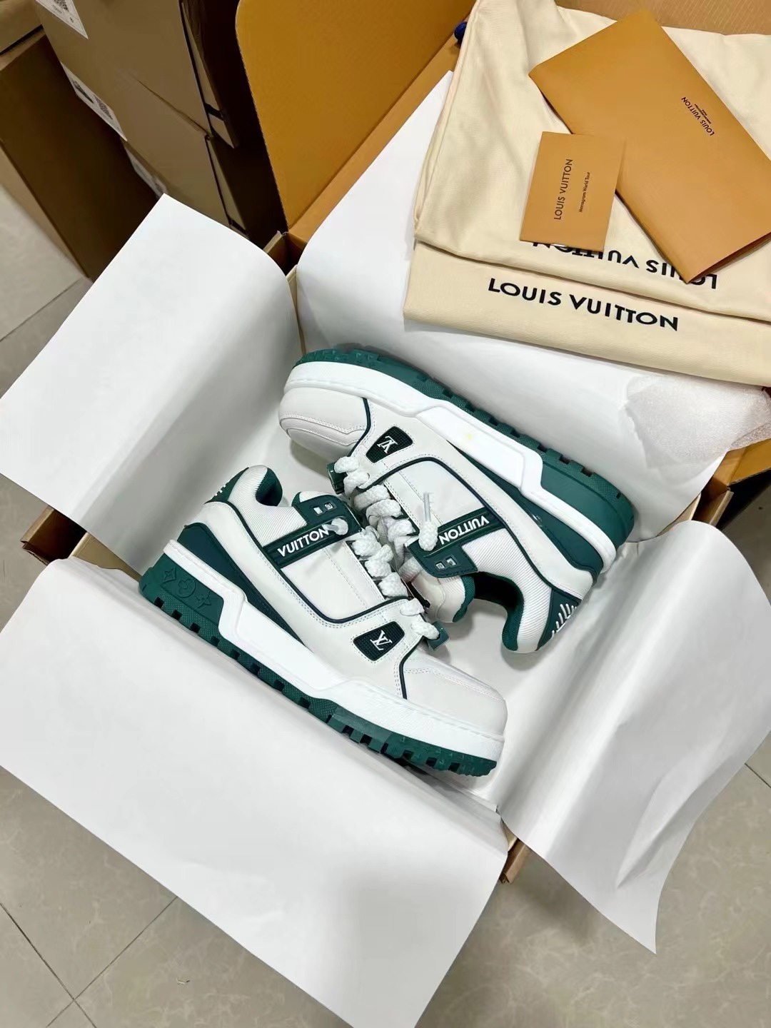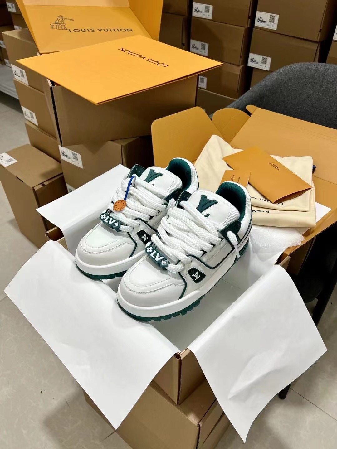这款鞋子是AAAAA 1:1 质量 (非常棒). 使用了和原版一模一样的材料. 商标部分也保持了和路易威登/Louis Vuitton一样. 图片拍摄是实物鞋子拍摄, 您所收到的实物保证和我们图片一模一样.