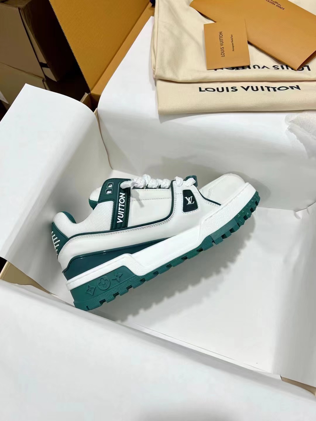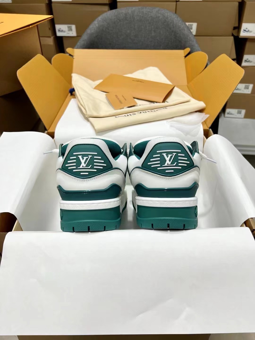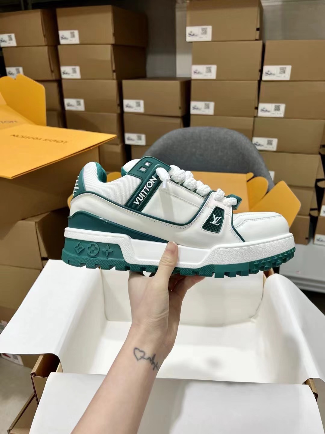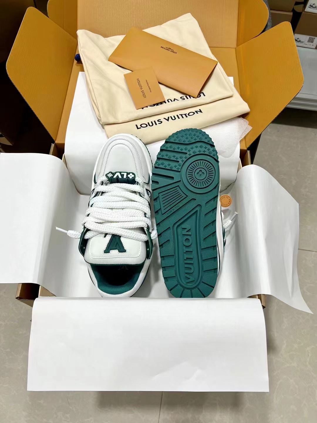 这款鞋子是AAAAA 1:1 质量 (非常棒). 使用了和原版一模一样的材料. 商标部分也保持了和路易威登/Louis Vuitton一样. 图片拍摄是实物鞋子拍摄, 您所收到的实物保证和我们图片一模一样.