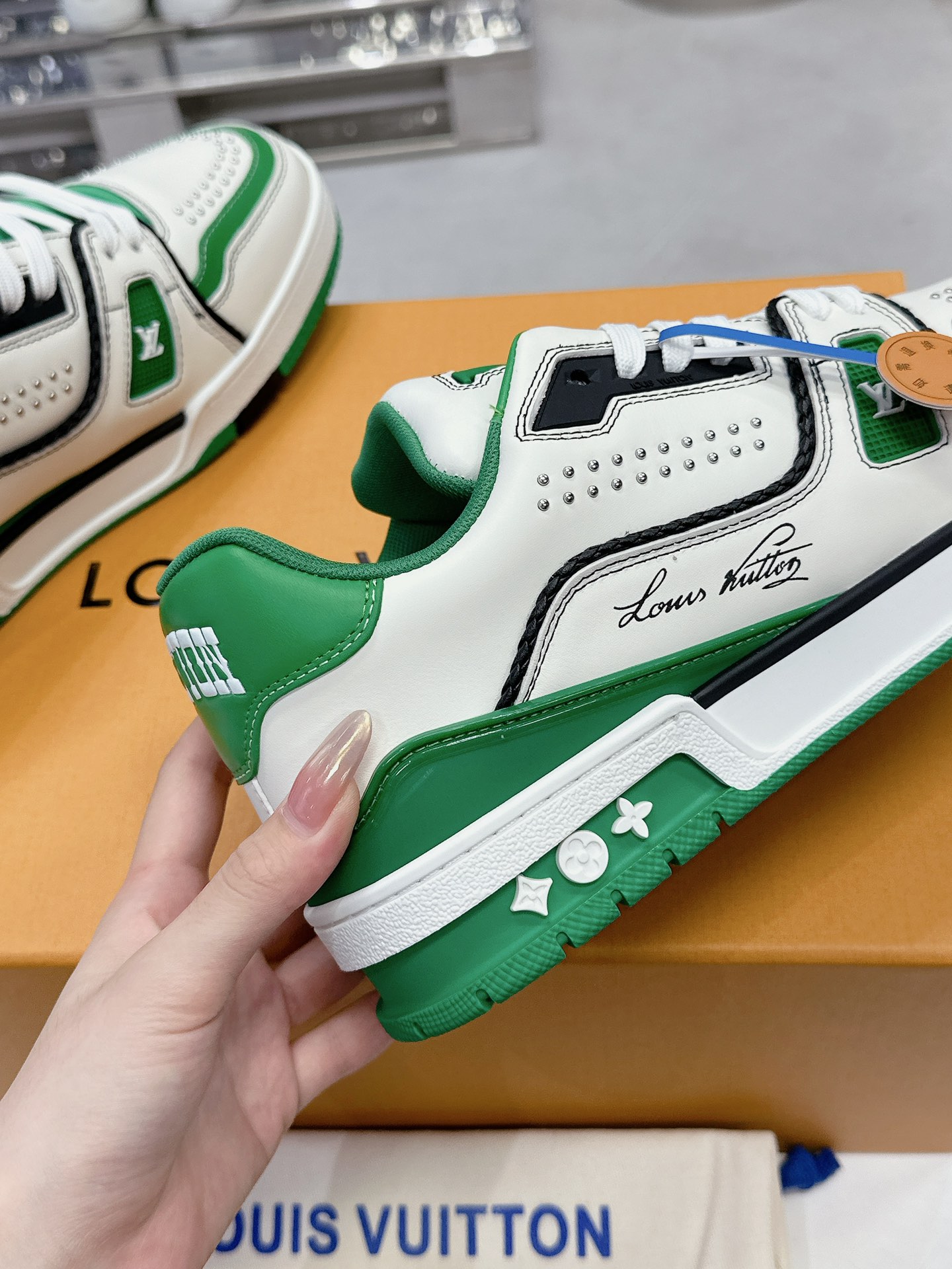 这款鞋子是AAAAA 1:1 质量 (非常棒). 使用了和原版一模一样的材料. 商标部分也保持了和路易威登/Louis Vuitton一样. 图片拍摄是实物鞋子拍摄, 您所收到的实物保证和我们图片一模一样.