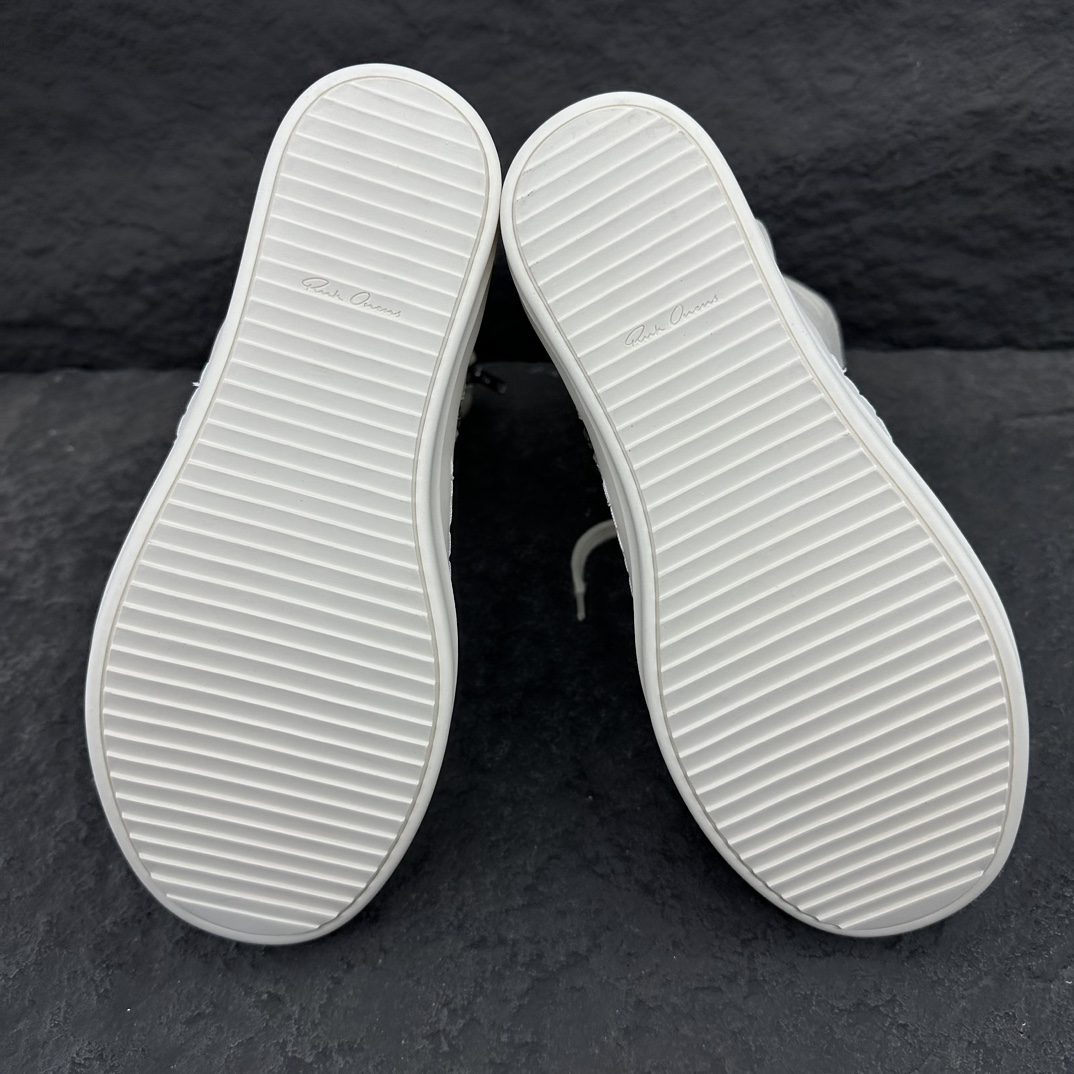 这款鞋子是AAAAA 1:1 质量 (非常棒). 使用了和原版一模一样的材料. 商标部分也保持了和里克·欧文斯/Rick Owens一样. 图片拍摄是实物鞋子拍摄, 您所收到的实物保证和我们图片一模一样.