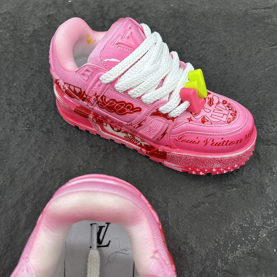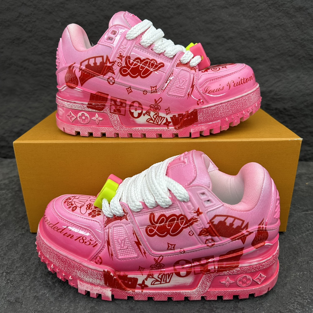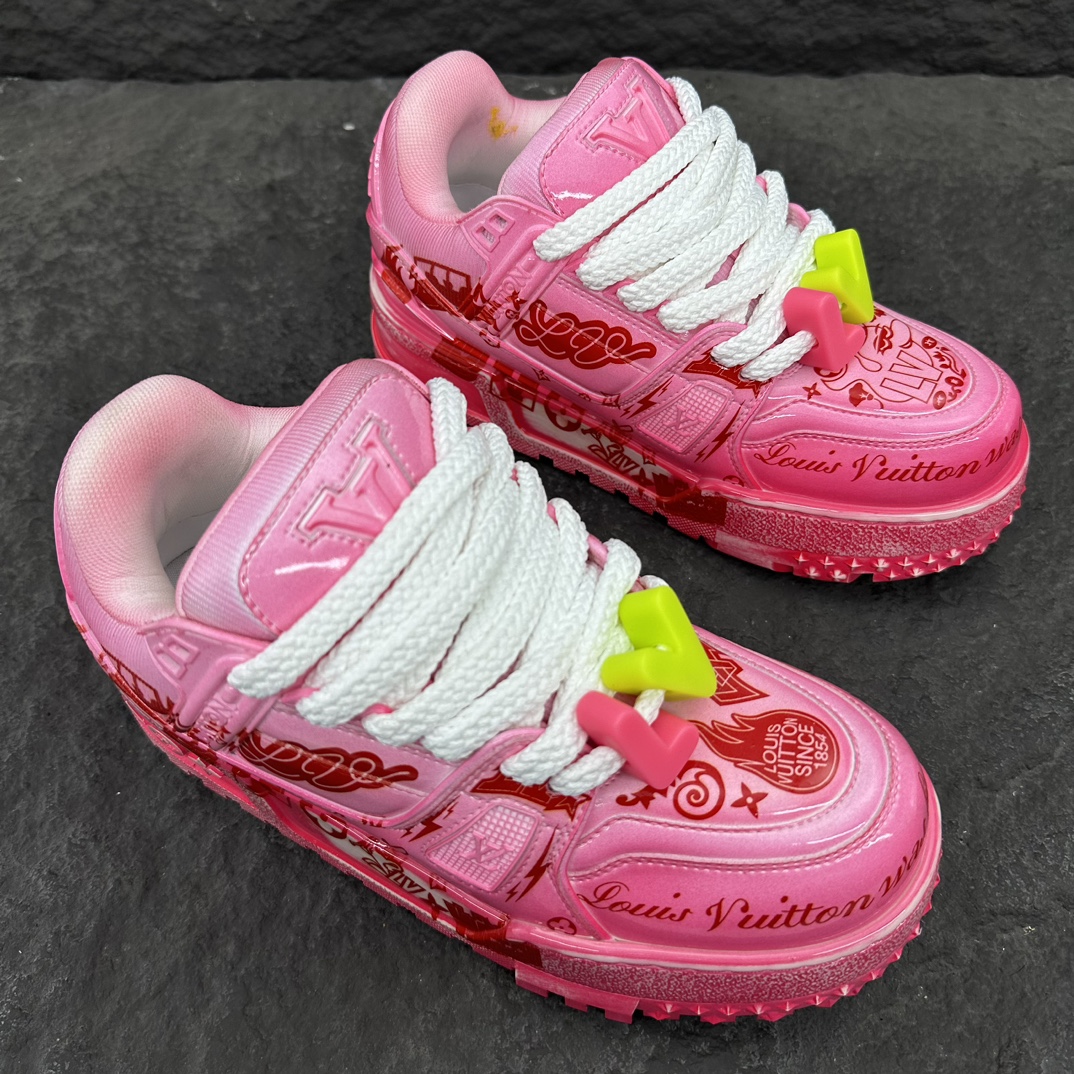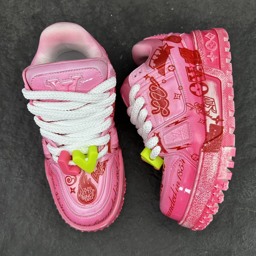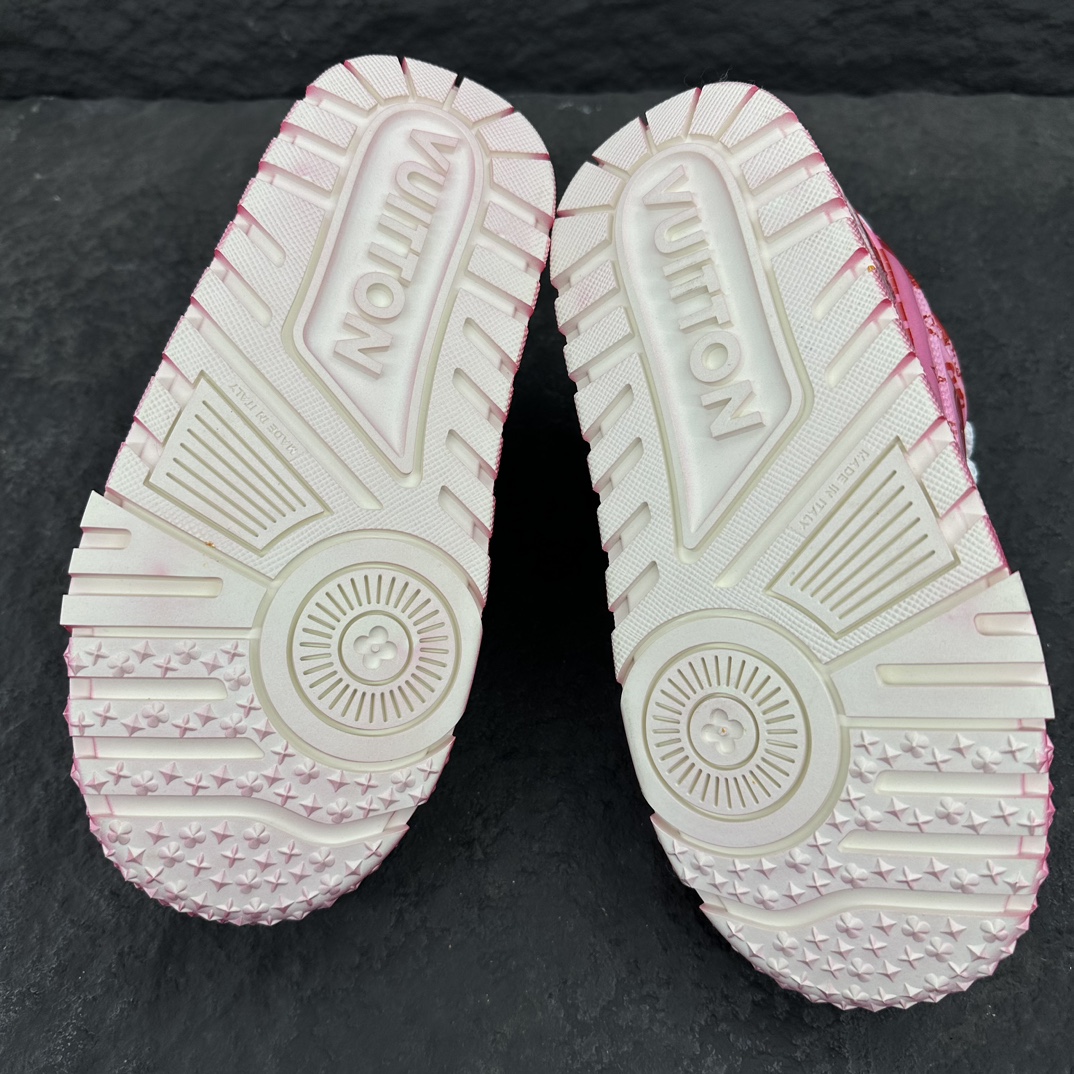 这款鞋子是AAAAA 1:1 质量 (非常棒). 使用了和原版一模一样的材料. 商标部分也保持了和路易威登/Louis Vuitton一样. 图片拍摄是实物鞋子拍摄, 您所收到的实物保证和我们图片一模一样.