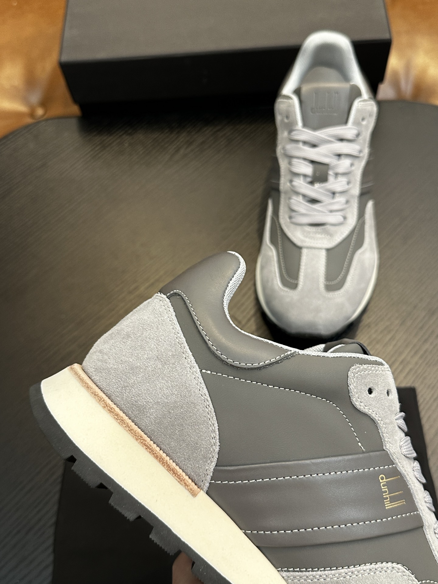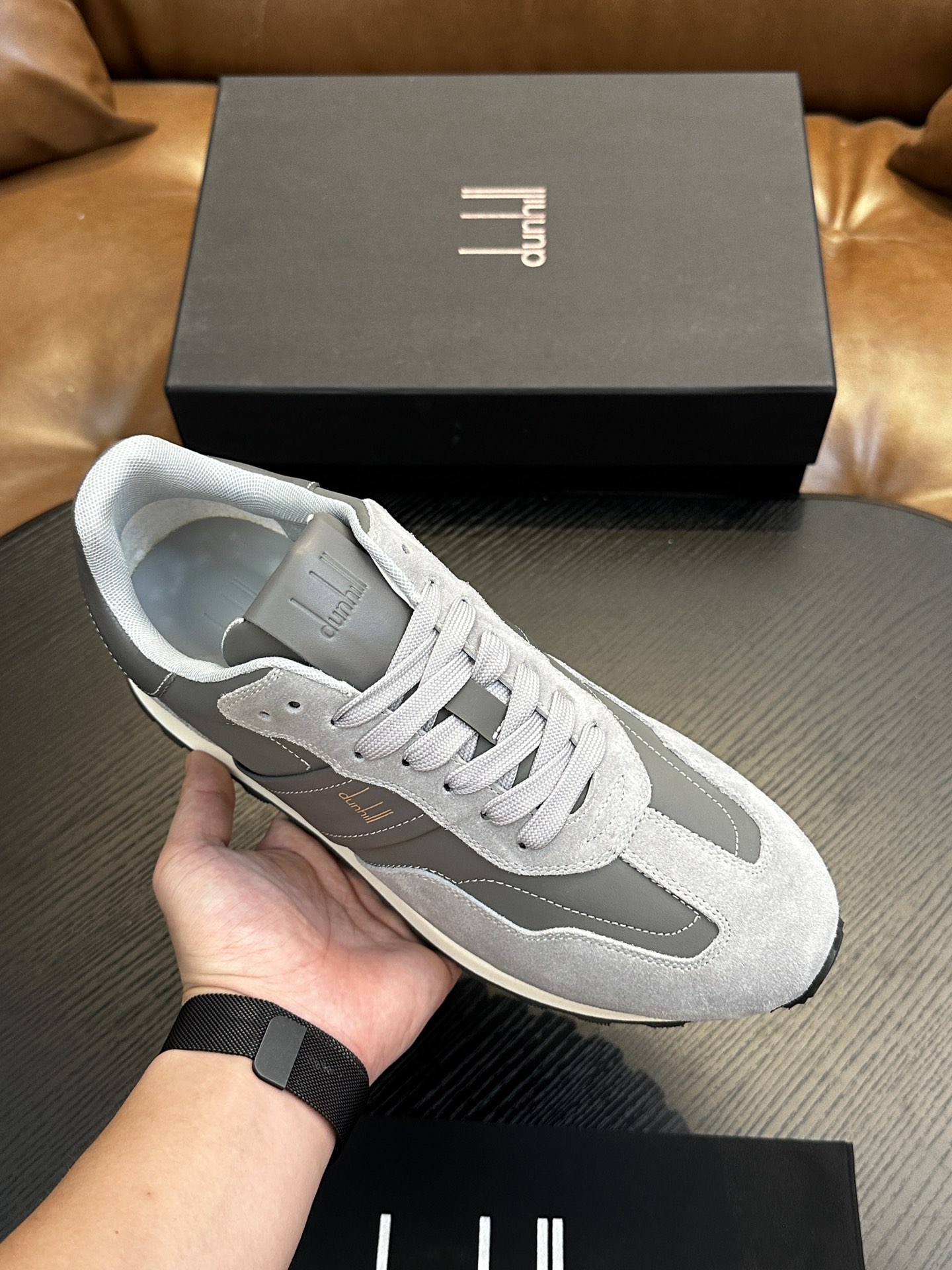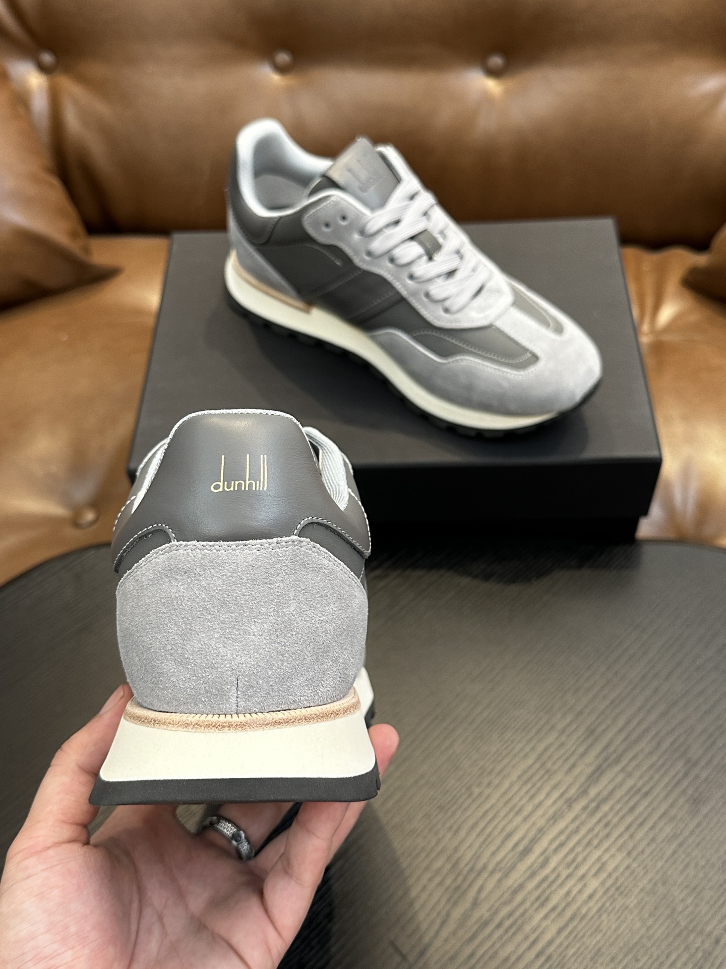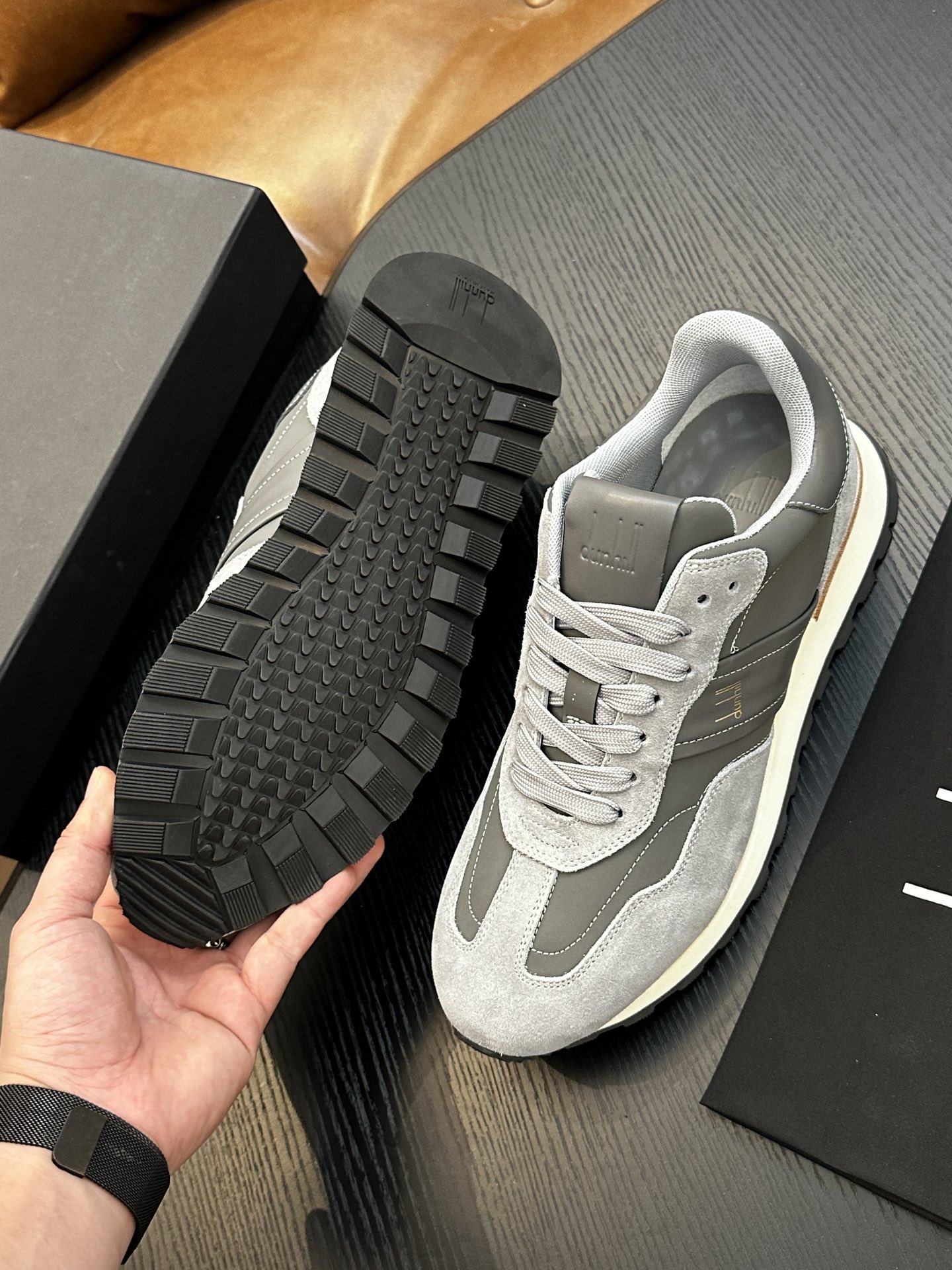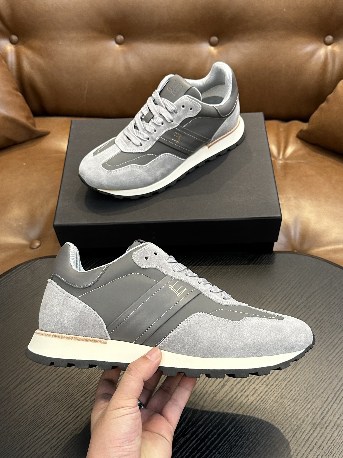 这款鞋子是AAAAA 1:1 质量 (非常棒). 使用了和原版一模一样的材料. 商标部分也保持了和dunhill一样. 图片拍摄是实物鞋子拍摄, 您所收到的实物保证和我们图片一模一样.