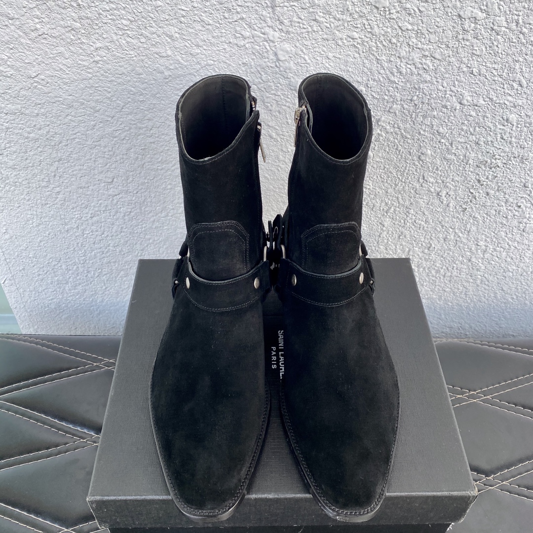 这款鞋子是AAAAA 1:1 质量 (非常棒). 使用了和原版一模一样的材料. 商标部分也保持了和圣罗兰/Saint Laurent一样. 图片拍摄是实物鞋子拍摄, 您所收到的实物保证和我们图片一模一样.