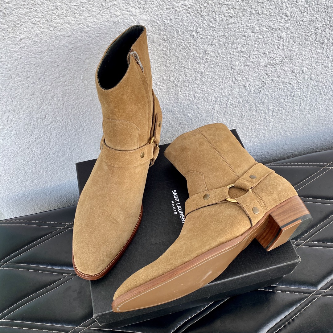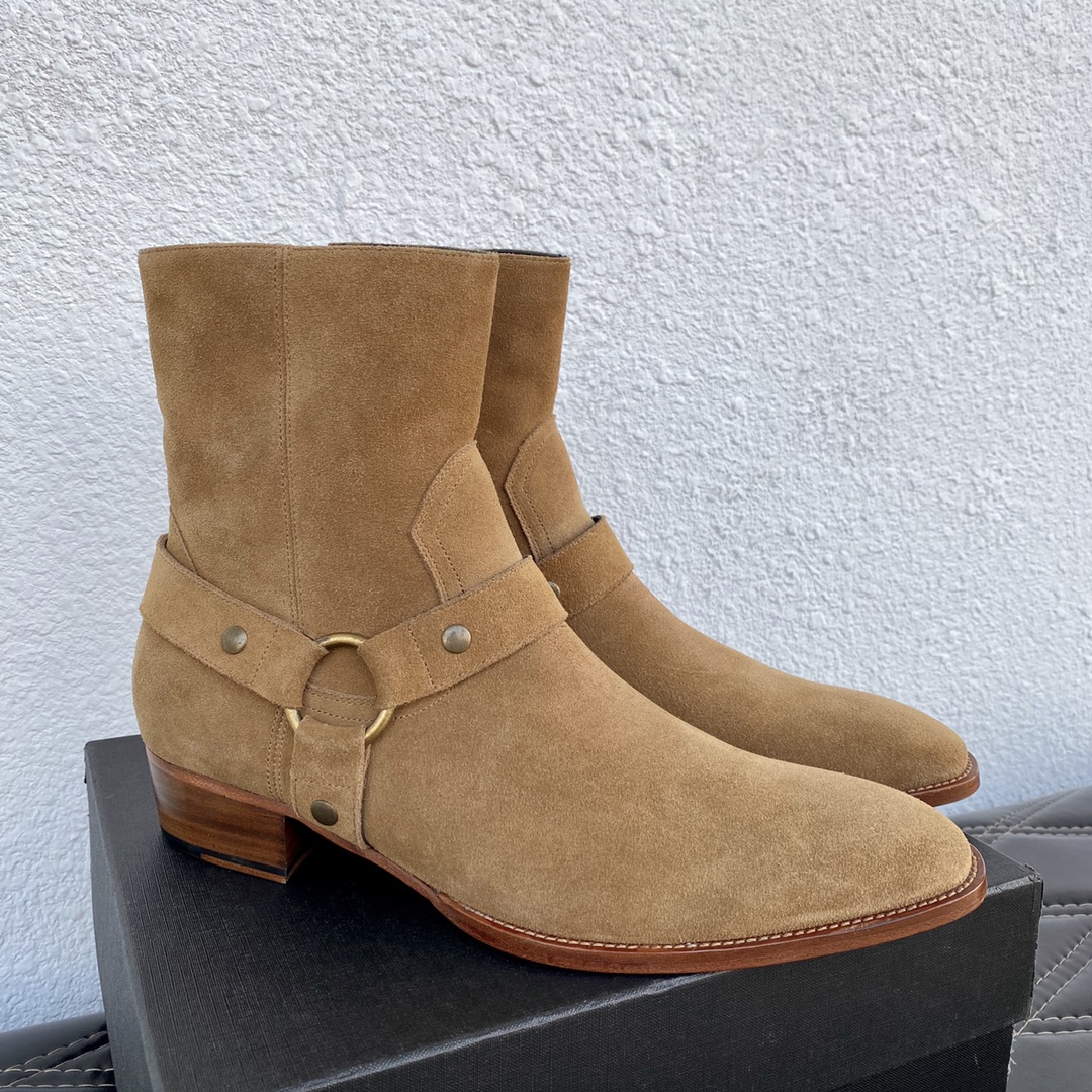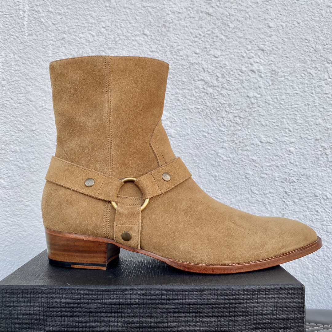 这款鞋子是AAAAA 1:1 质量 (非常棒). 使用了和原版一模一样的材料. 商标部分也保持了和圣罗兰/Saint Laurent一样. 图片拍摄是实物鞋子拍摄, 您所收到的实物保证和我们图片一模一样.