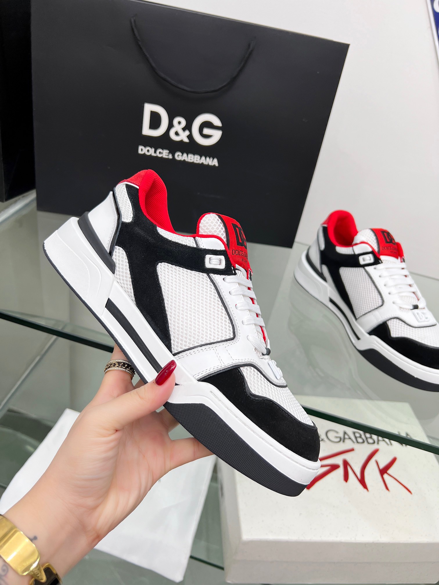 这款鞋子是AAAAA 1:1 质量 (非常棒). 使用了和原版一模一样的材料. 商标部分也保持了和杜嘉班纳/Dolce&Gabbana一样. 图片拍摄是实物鞋子拍摄, 您所收到的实物保证和我们图片一模一样.