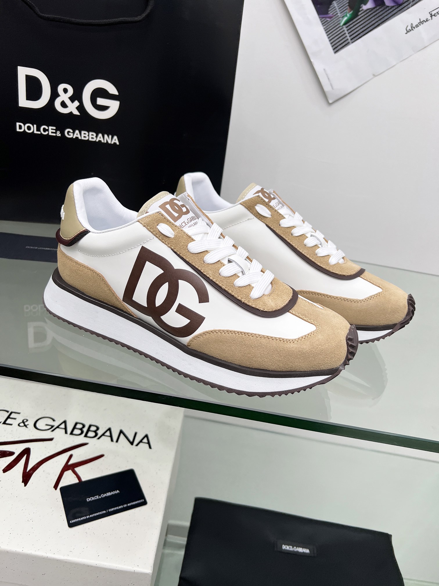 这款鞋子是AAAAA 1:1 质量 (非常棒). 使用了和原版一模一样的材料. 商标部分也保持了和杜嘉班纳/Dolce&Gabbana一样. 图片拍摄是实物鞋子拍摄, 您所收到的实物保证和我们图片一模一样.
