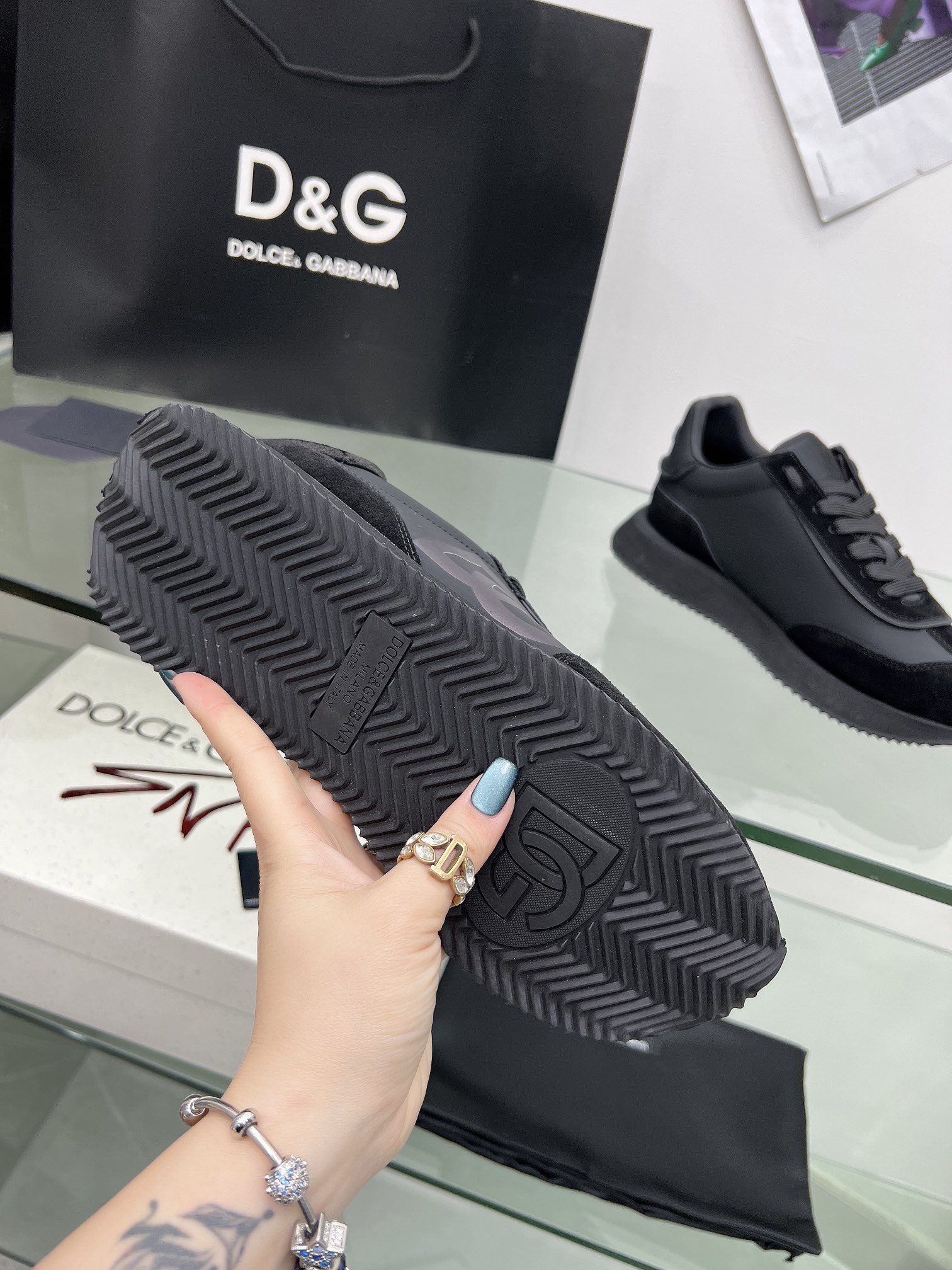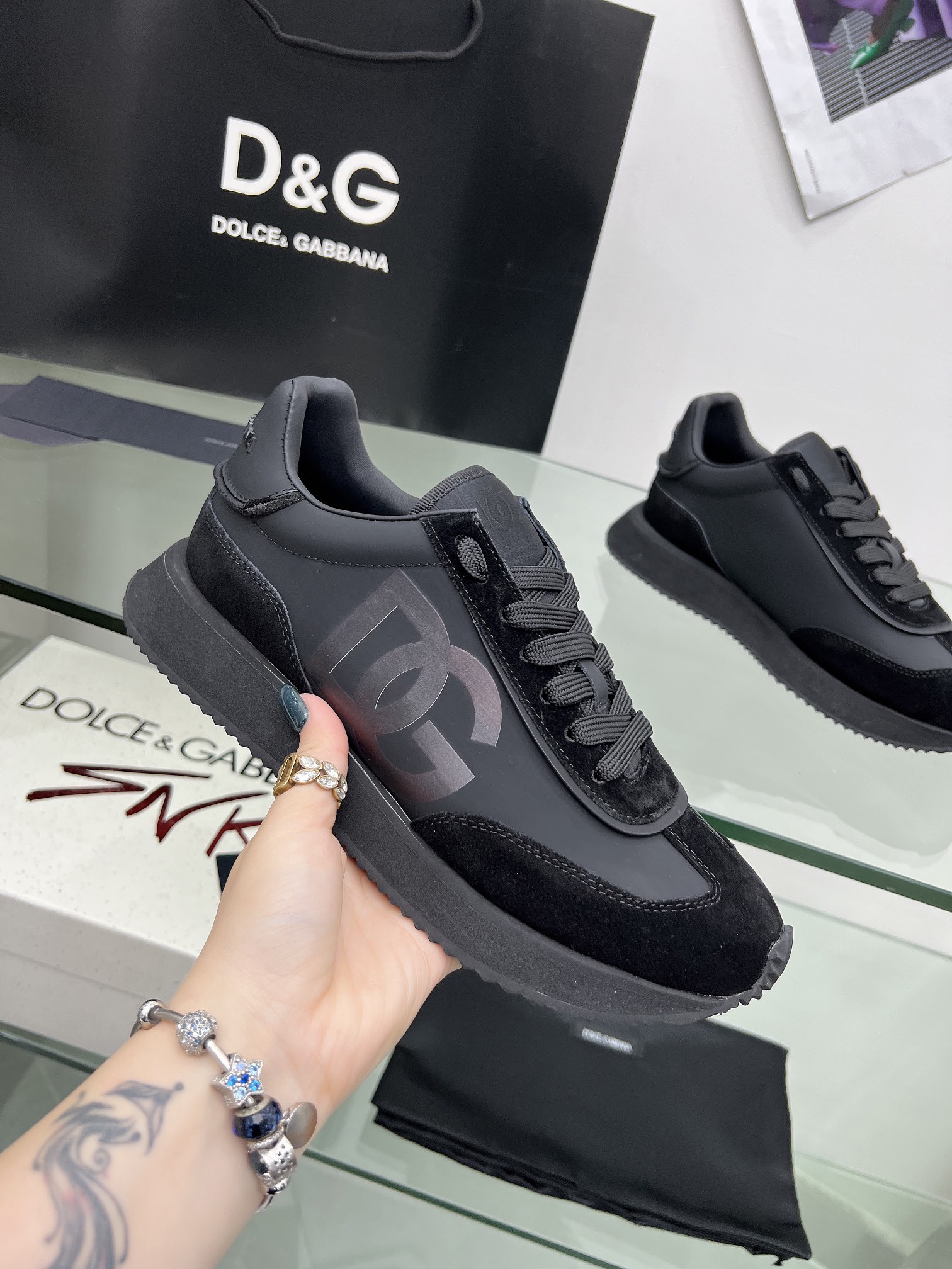 这款鞋子是AAAAA 1:1 质量 (非常棒). 使用了和原版一模一样的材料. 商标部分也保持了和杜嘉班纳/Dolce&Gabbana一样. 图片拍摄是实物鞋子拍摄, 您所收到的实物保证和我们图片一模一样.
