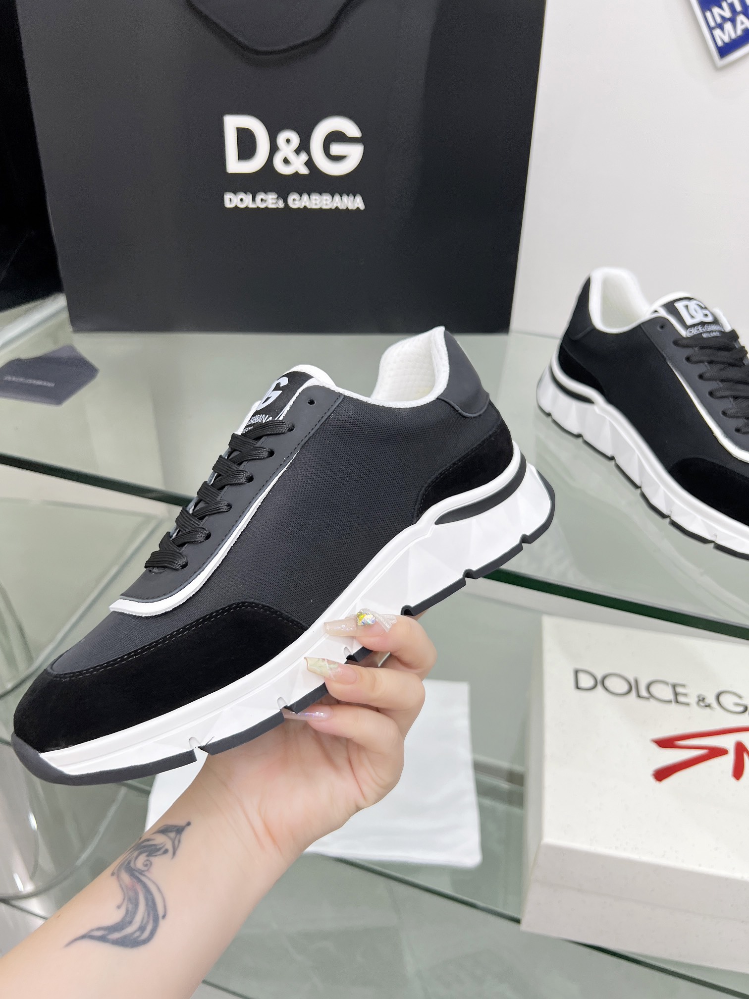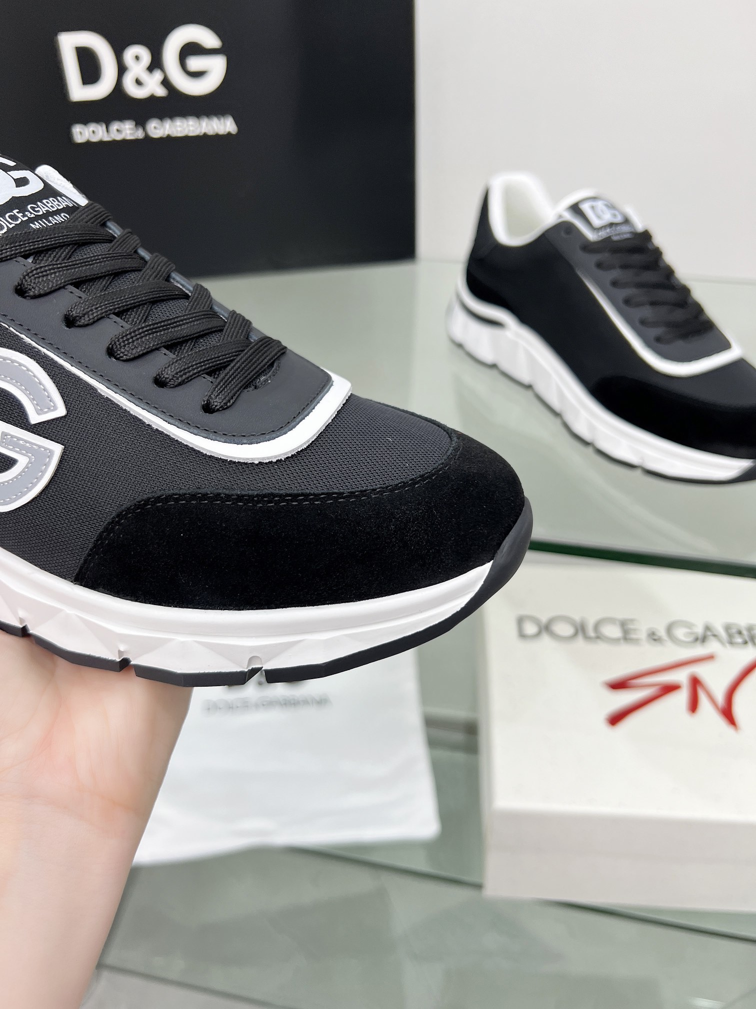 这款鞋子是AAAAA 1:1 质量 (非常棒). 使用了和原版一模一样的材料. 商标部分也保持了和杜嘉班纳/Dolce&Gabbana一样. 图片拍摄是实物鞋子拍摄, 您所收到的实物保证和我们图片一模一样.