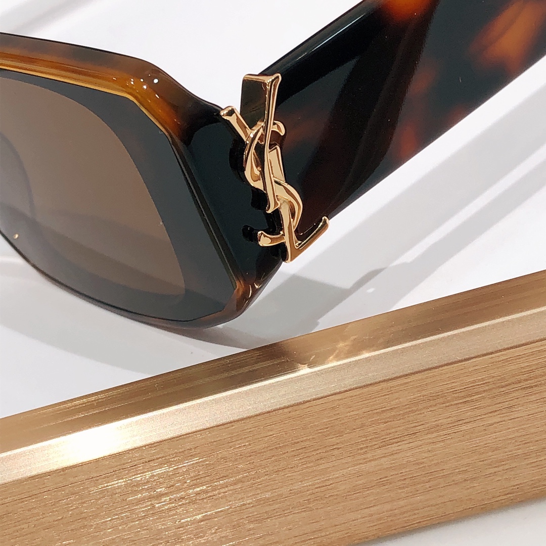 这款太阳眼镜是AAAAA 1:1 质量 (非常棒). 使用了和原版一模一样的材料. 商标部分也保持了和圣罗兰/Saint Laurent一样. 图片拍摄是实物太阳眼镜拍摄, 您所收到的实物保证和我们图片一模一样.