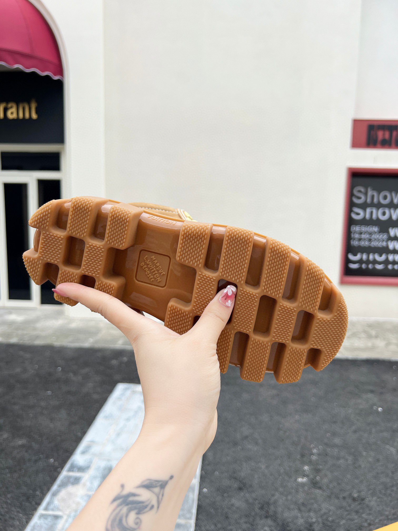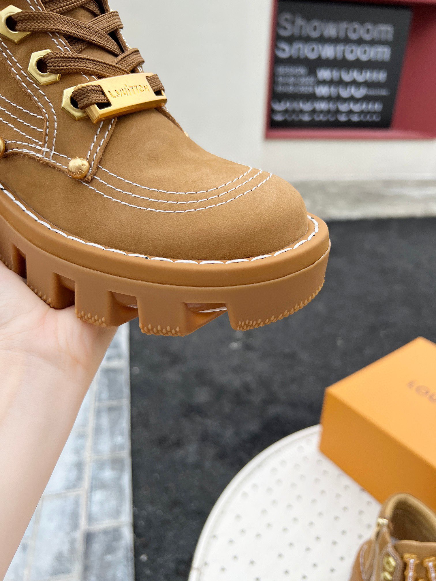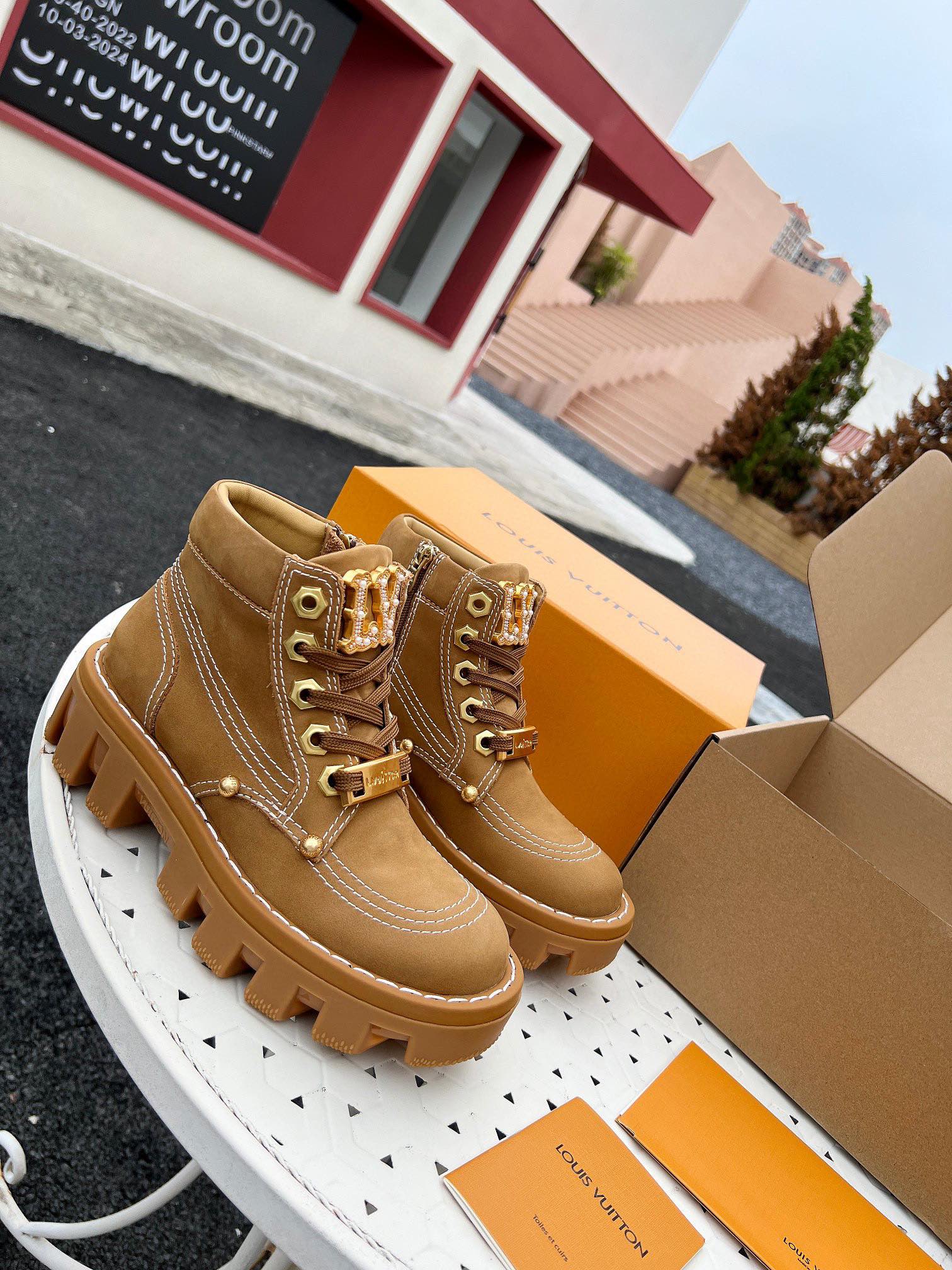这款鞋子是AAAAA 1:1 质量 (非常棒). 使用了和原版一模一样的材料. 商标部分也保持了和路易威登/Louis Vuitton一样. 图片拍摄是实物鞋子拍摄, 您所收到的实物保证和我们图片一模一样.