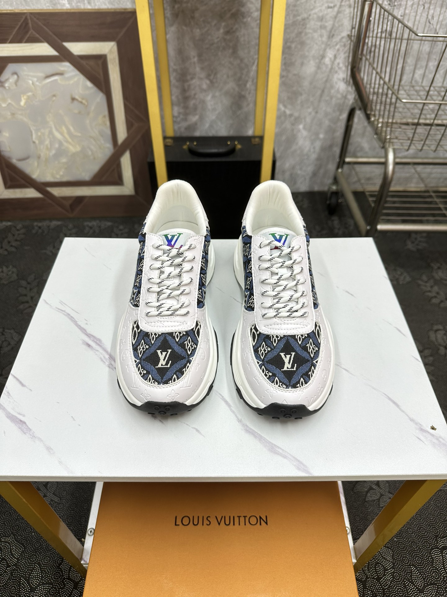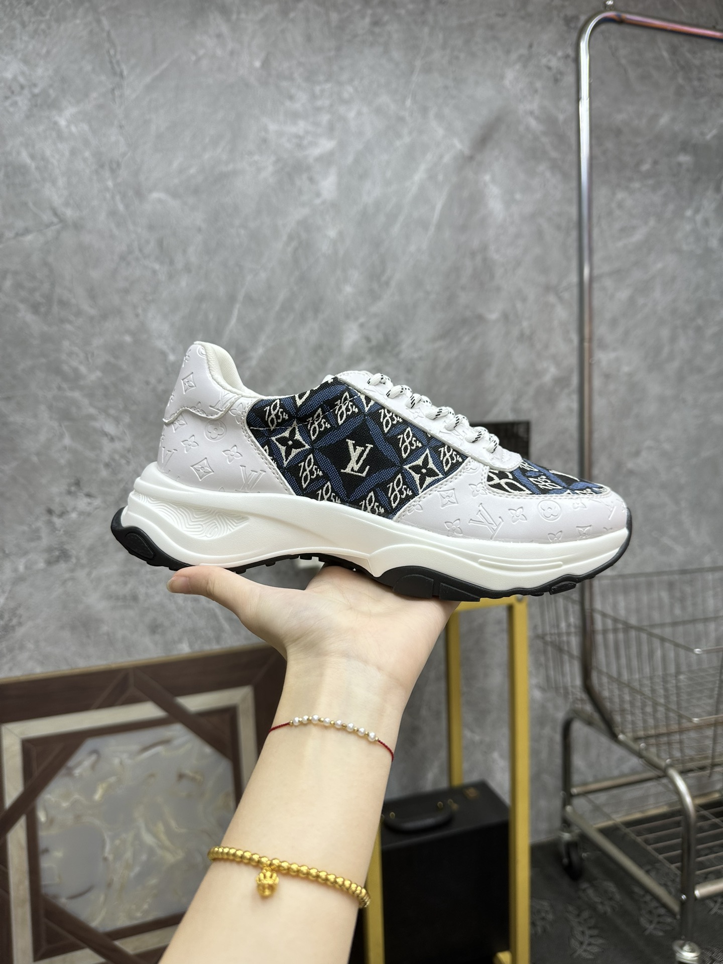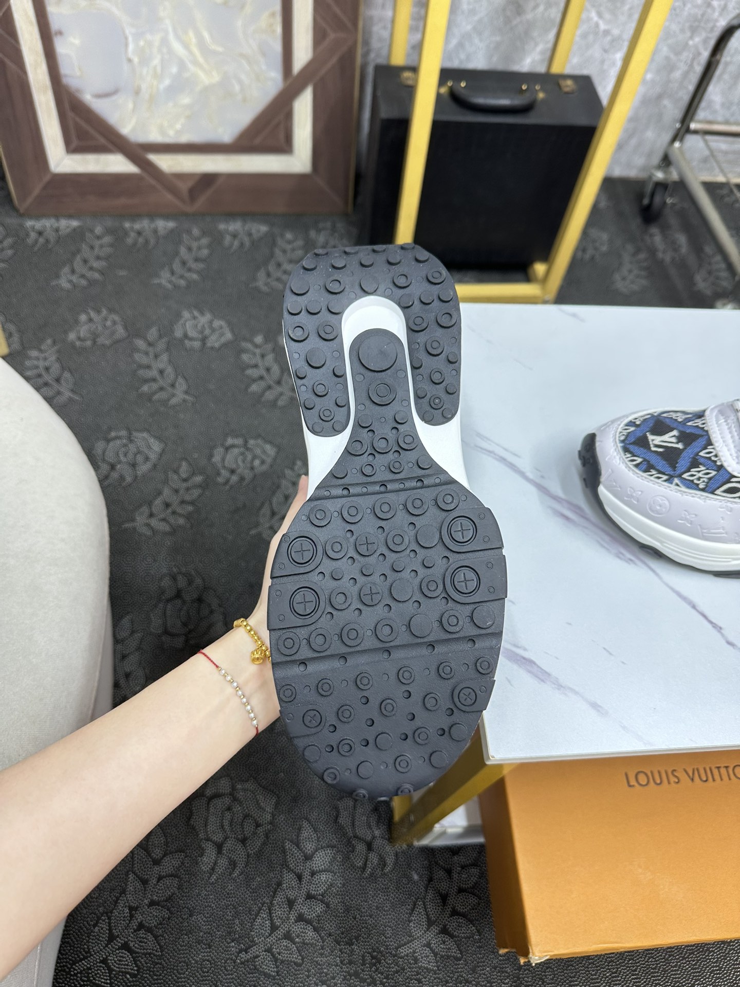 这款鞋子是AAAAA 1:1 质量 (非常棒). 使用了和原版一模一样的材料. 商标部分也保持了和路易威登/Louis Vuitton一样. 图片拍摄是实物鞋子拍摄, 您所收到的实物保证和我们图片一模一样.