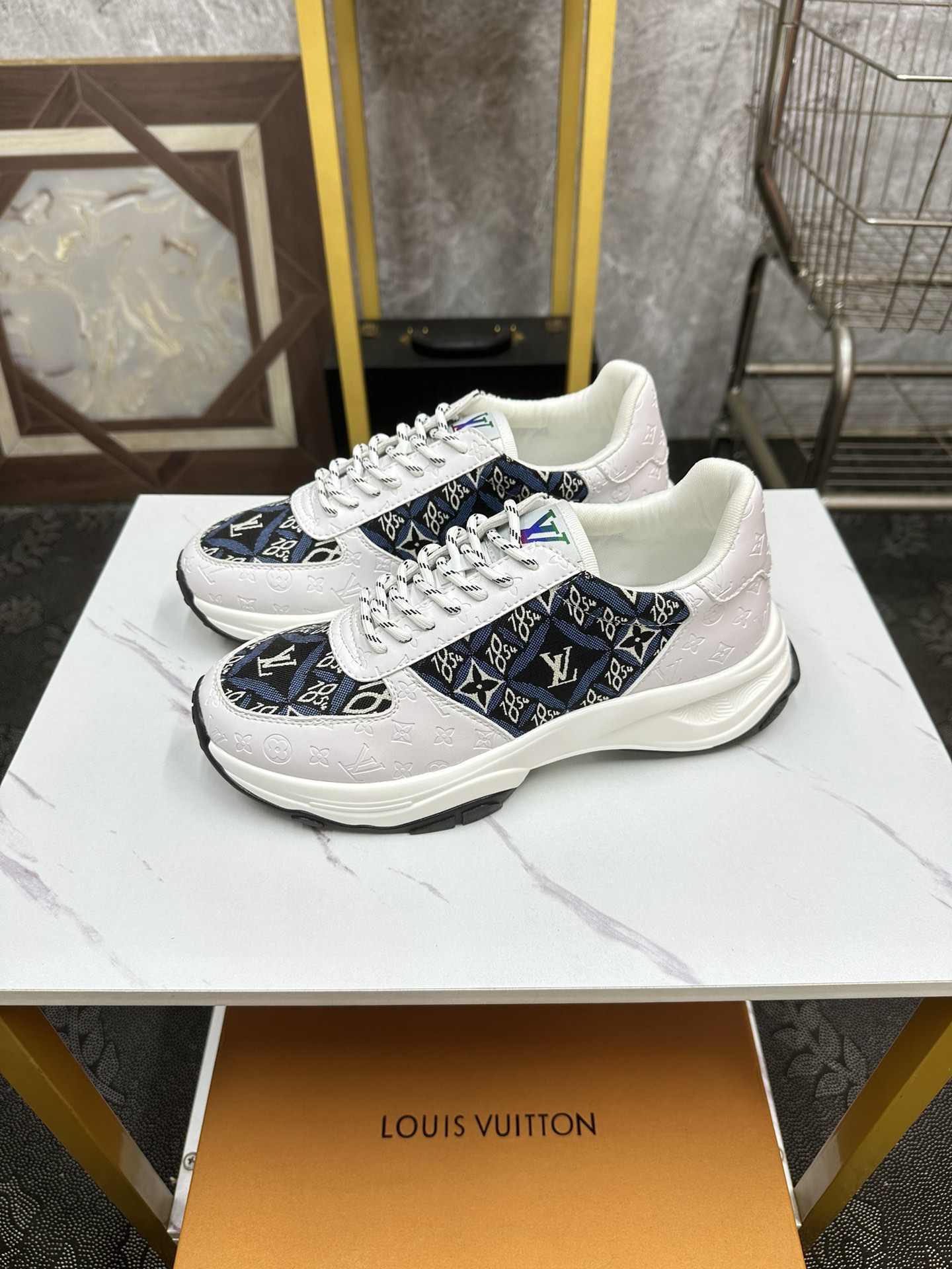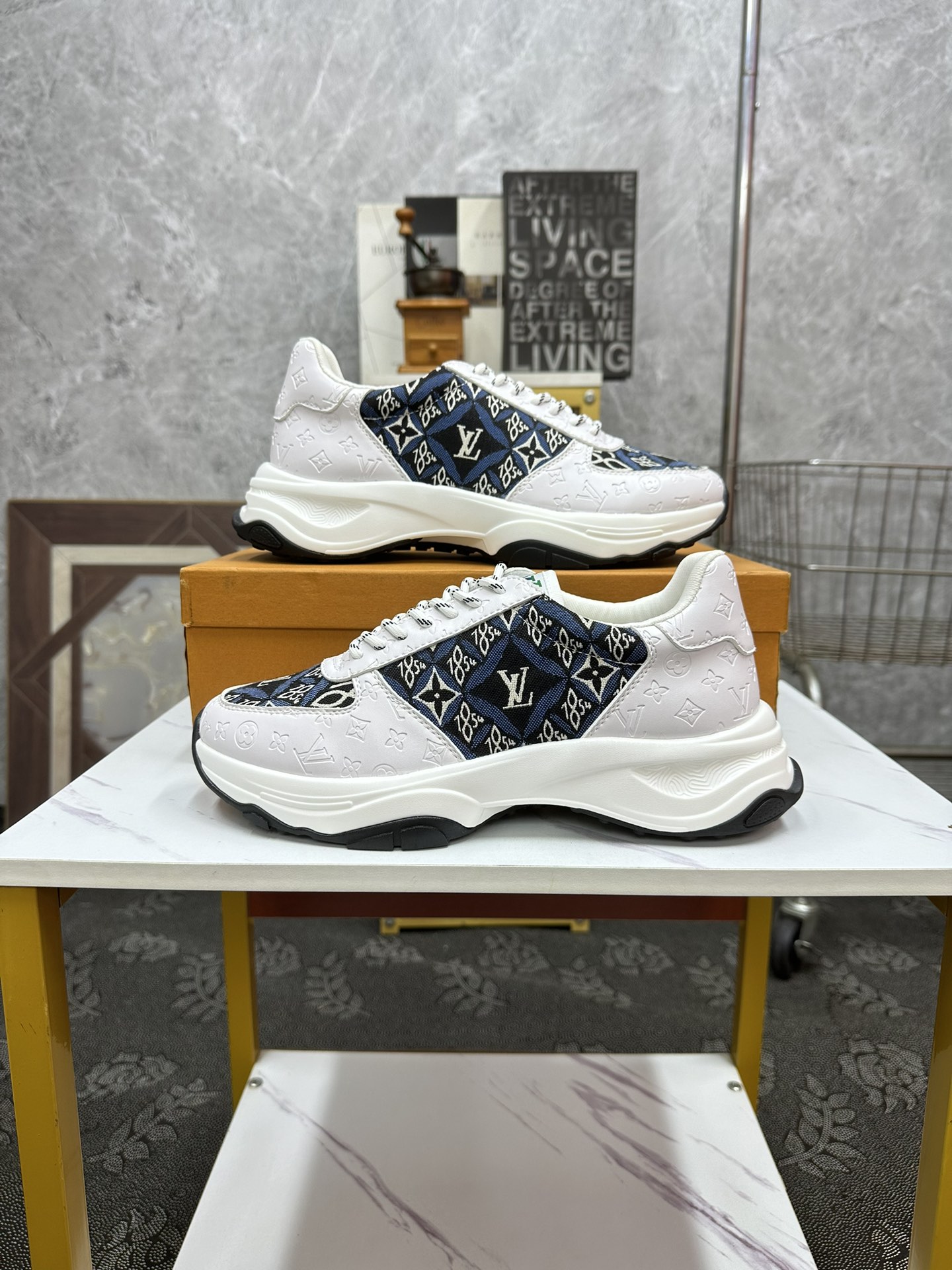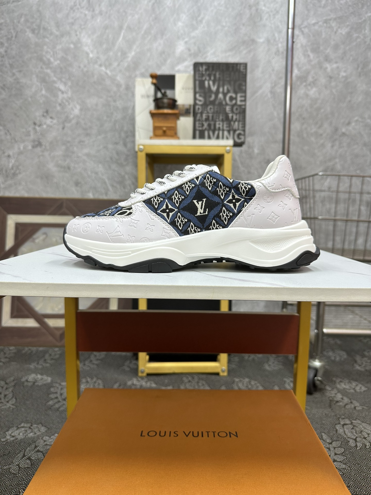 这款鞋子是AAAAA 1:1 质量 (非常棒). 使用了和原版一模一样的材料. 商标部分也保持了和路易威登/Louis Vuitton一样. 图片拍摄是实物鞋子拍摄, 您所收到的实物保证和我们图片一模一样.