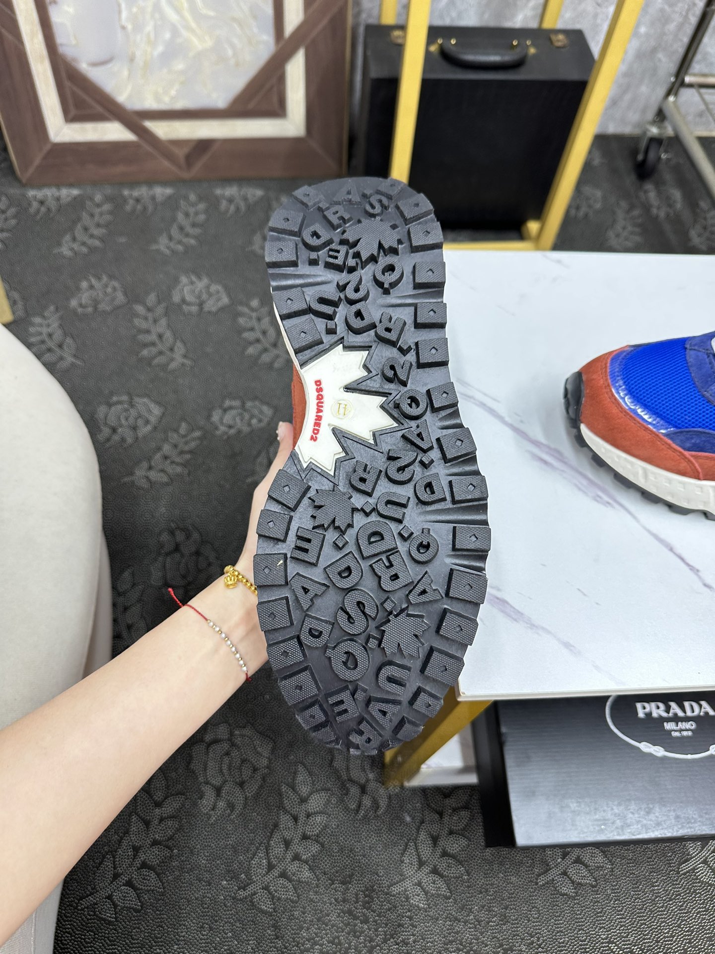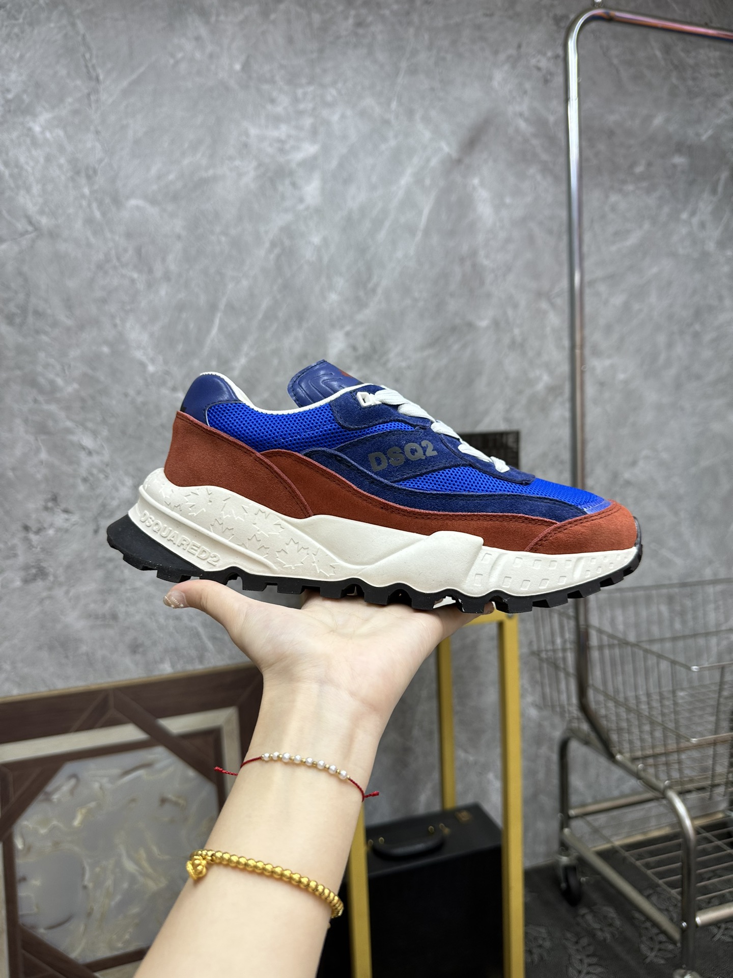 这款鞋子是AAAAA 1:1 质量 (非常棒). 使用了和原版一模一样的材料. 商标部分也保持了和DSQUARED2一样. 图片拍摄是实物鞋子拍摄, 您所收到的实物保证和我们图片一模一样.