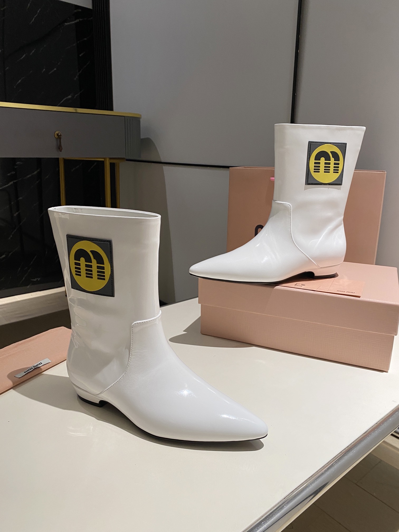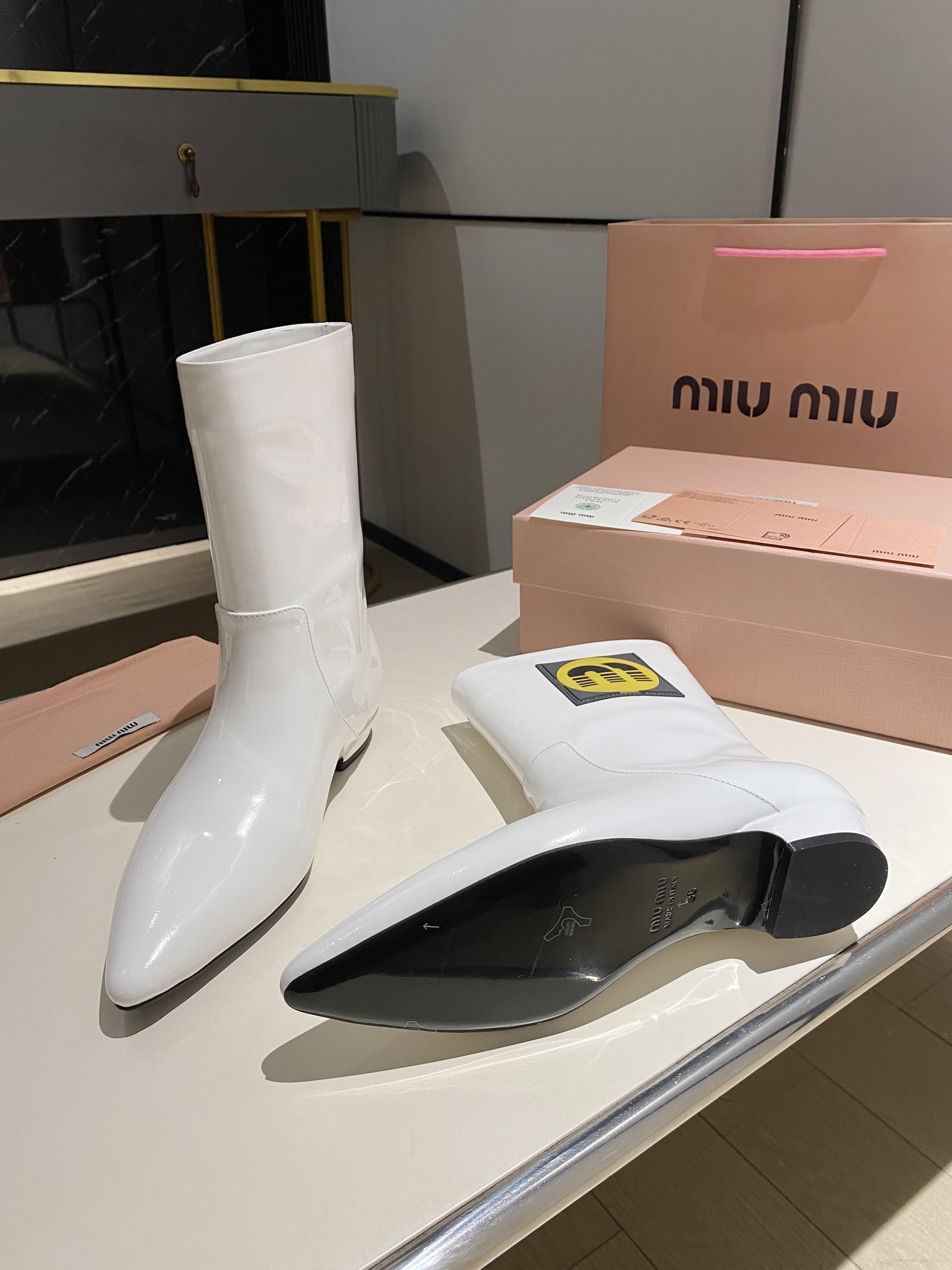 这款鞋子是AAAAA 1:1 质量 (非常棒). 使用了和原版一模一样的材料. 商标部分也保持了和缪缪/Miu Miu一样. 图片拍摄是实物鞋子拍摄, 您所收到的实物保证和我们图片一模一样.