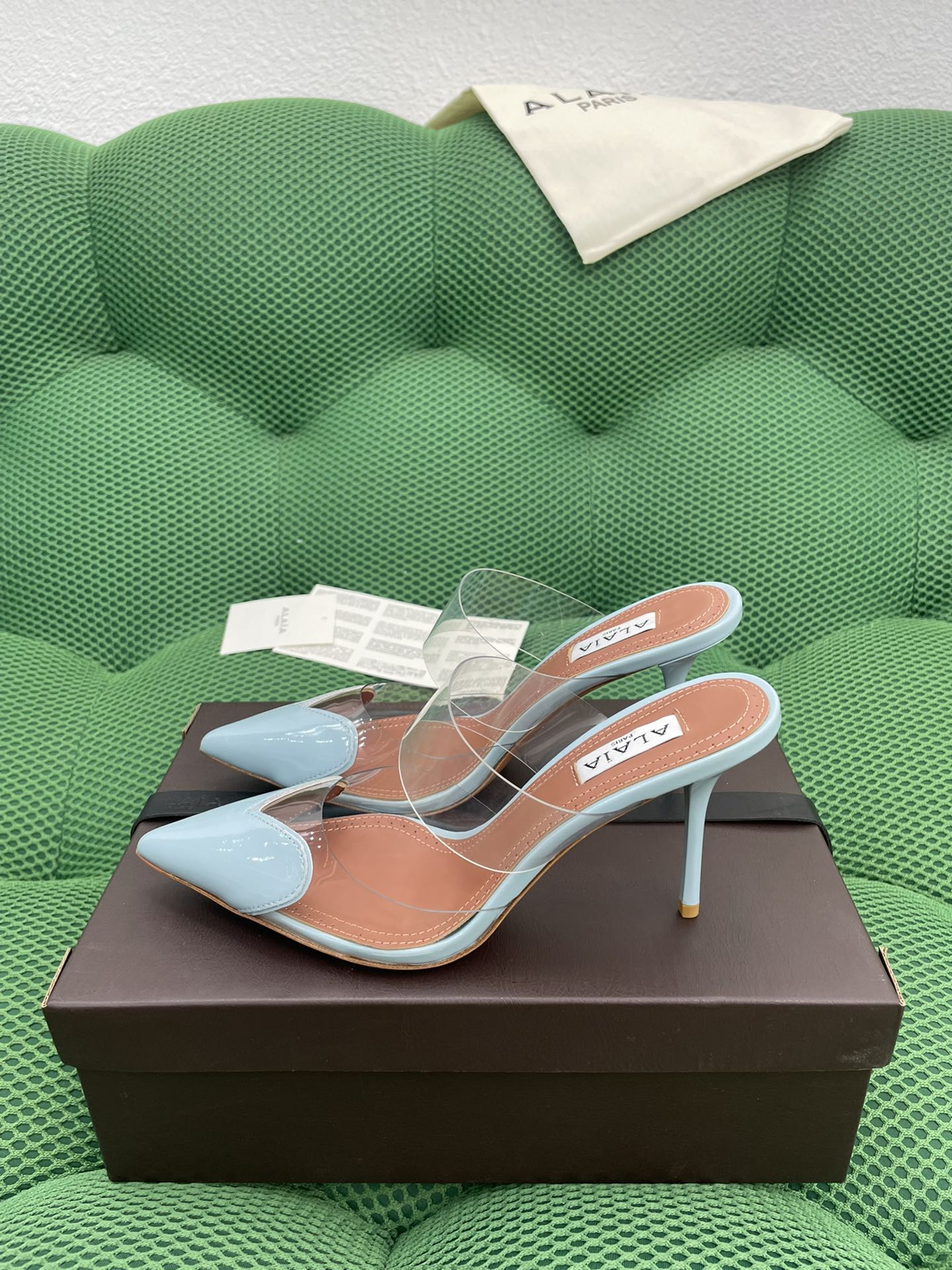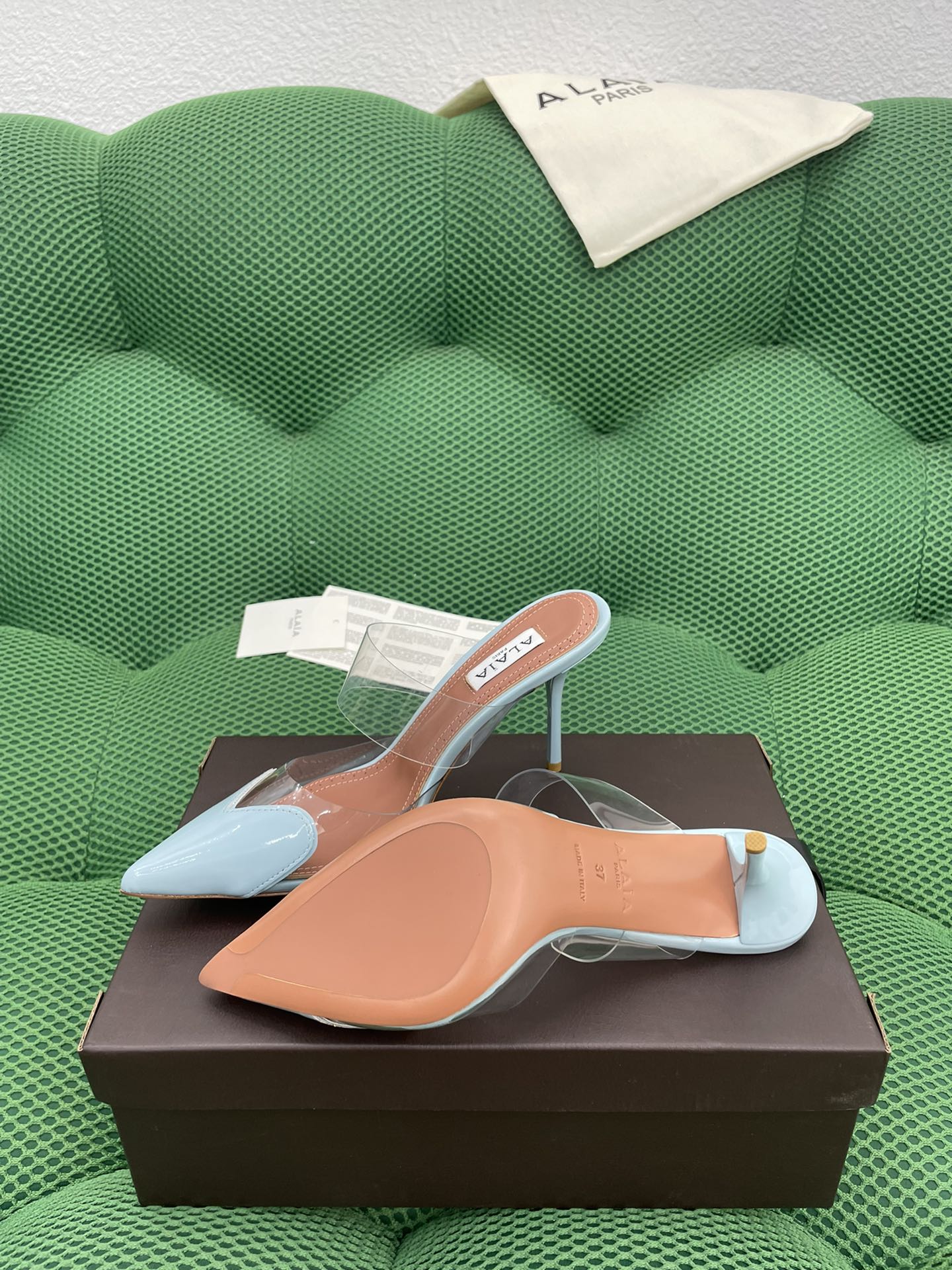 这款鞋子是AAAAA 1:1 质量 (非常棒). 使用了和原版一模一样的材料. 商标部分也保持了和Alaia一样. 图片拍摄是实物鞋子拍摄, 您所收到的实物保证和我们图片一模一样.