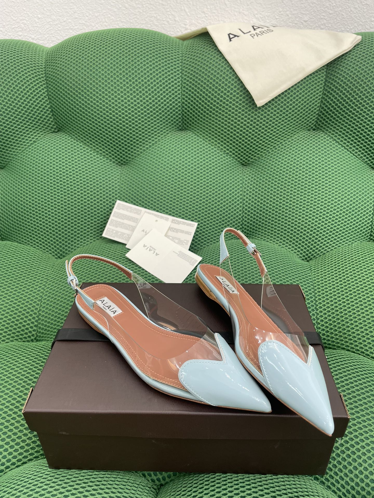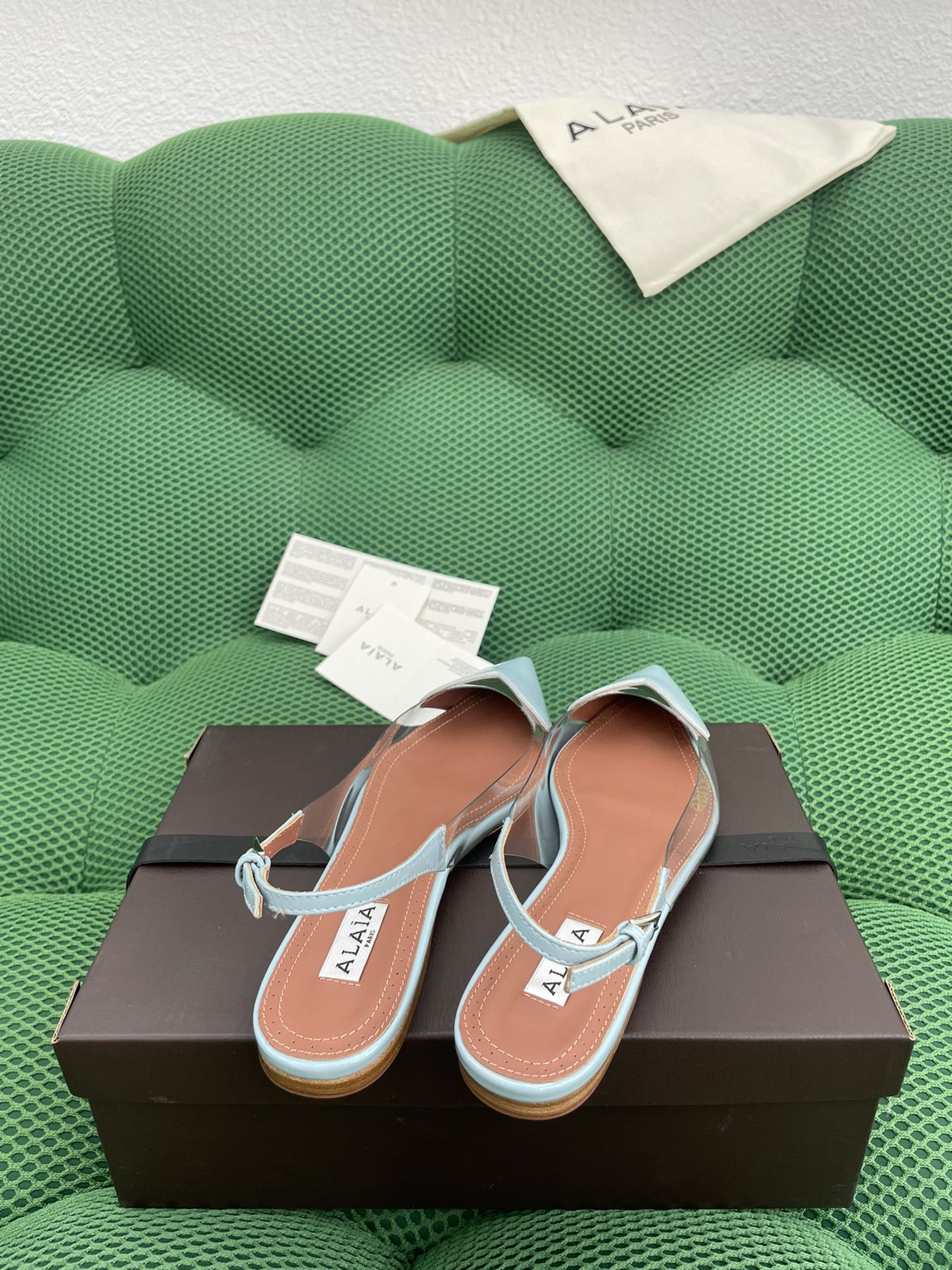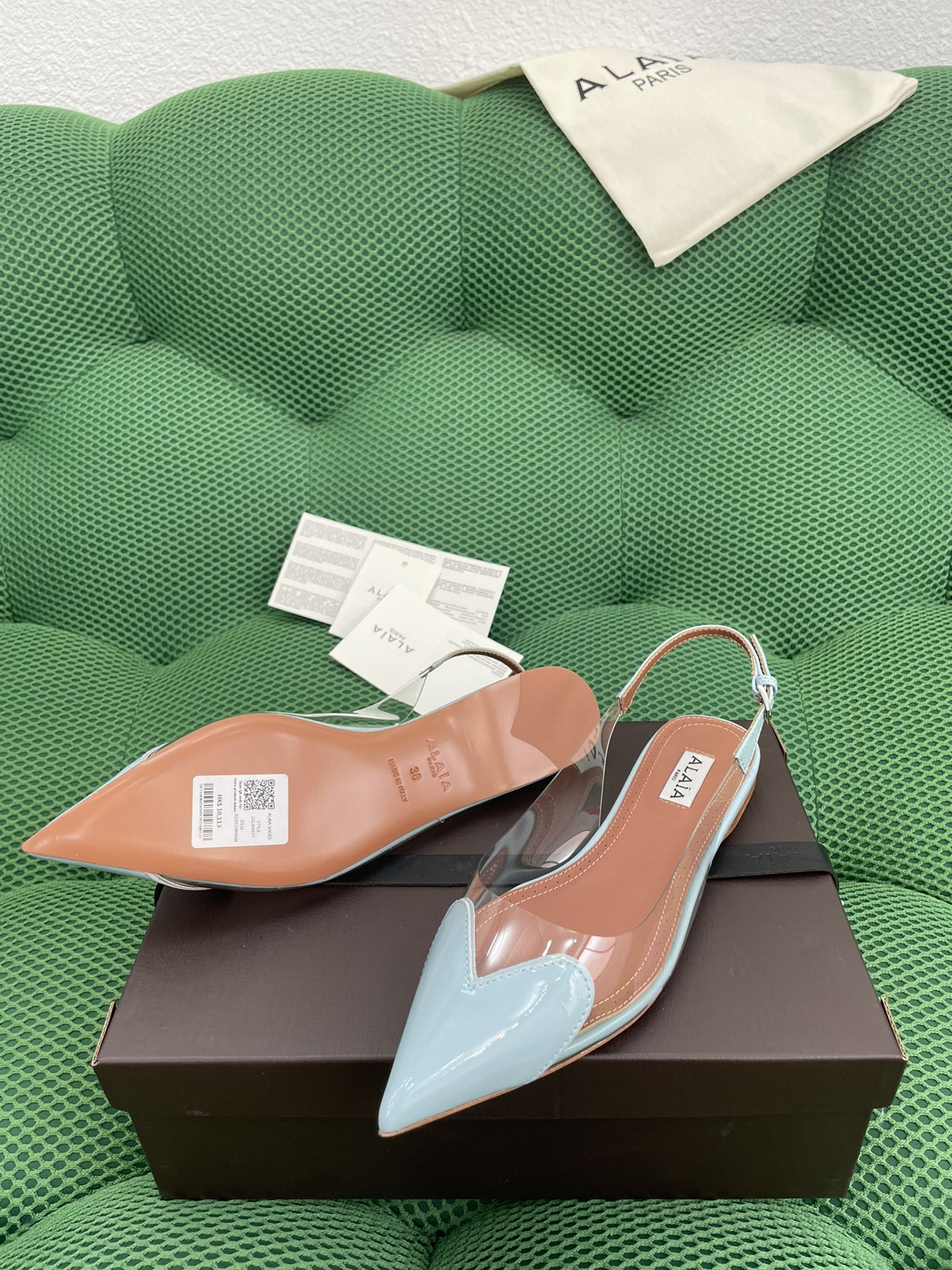 这款鞋子是AAAAA 1:1 质量 (非常棒). 使用了和原版一模一样的材料. 商标部分也保持了和Alaia一样. 图片拍摄是实物鞋子拍摄, 您所收到的实物保证和我们图片一模一样.