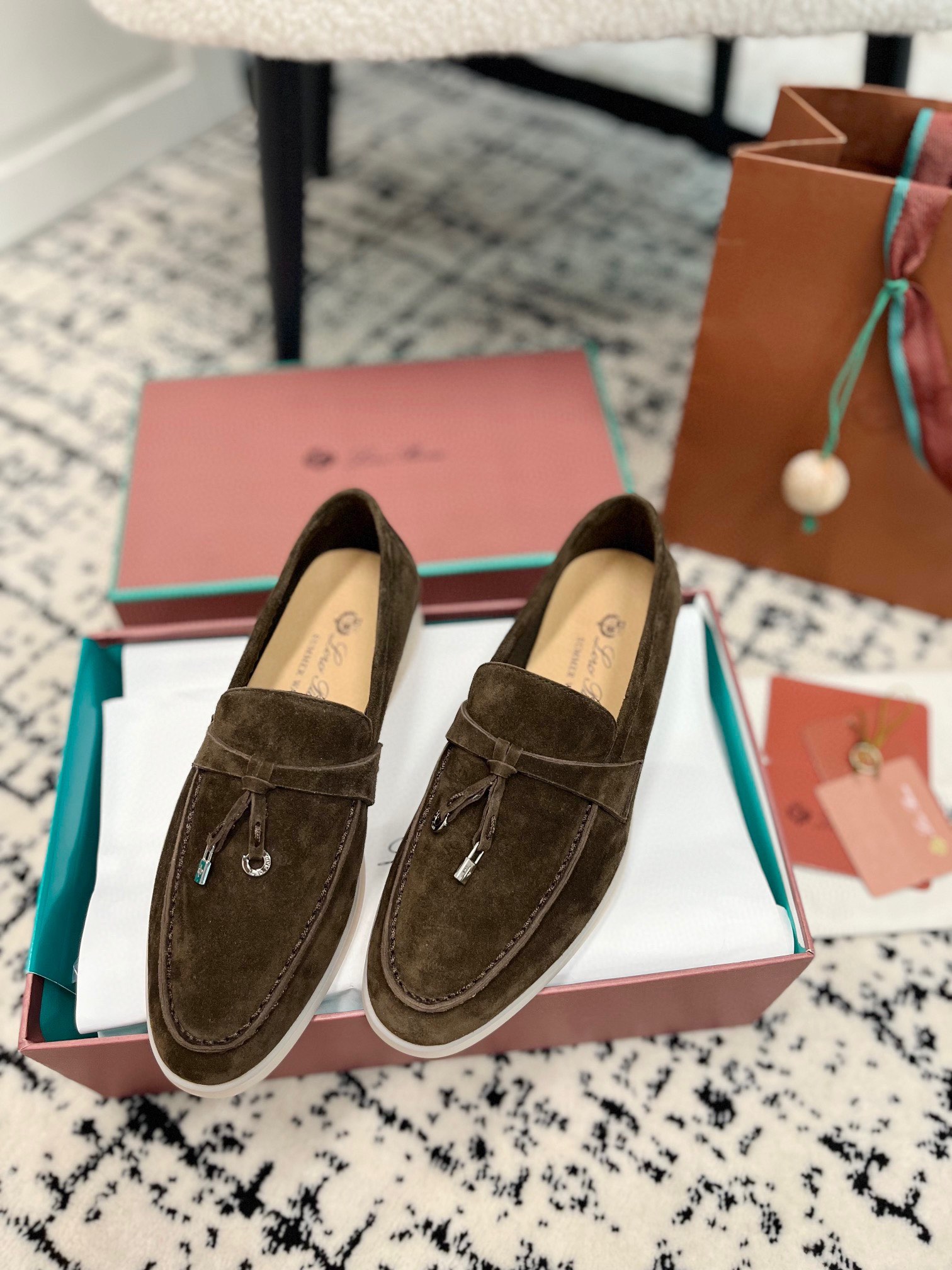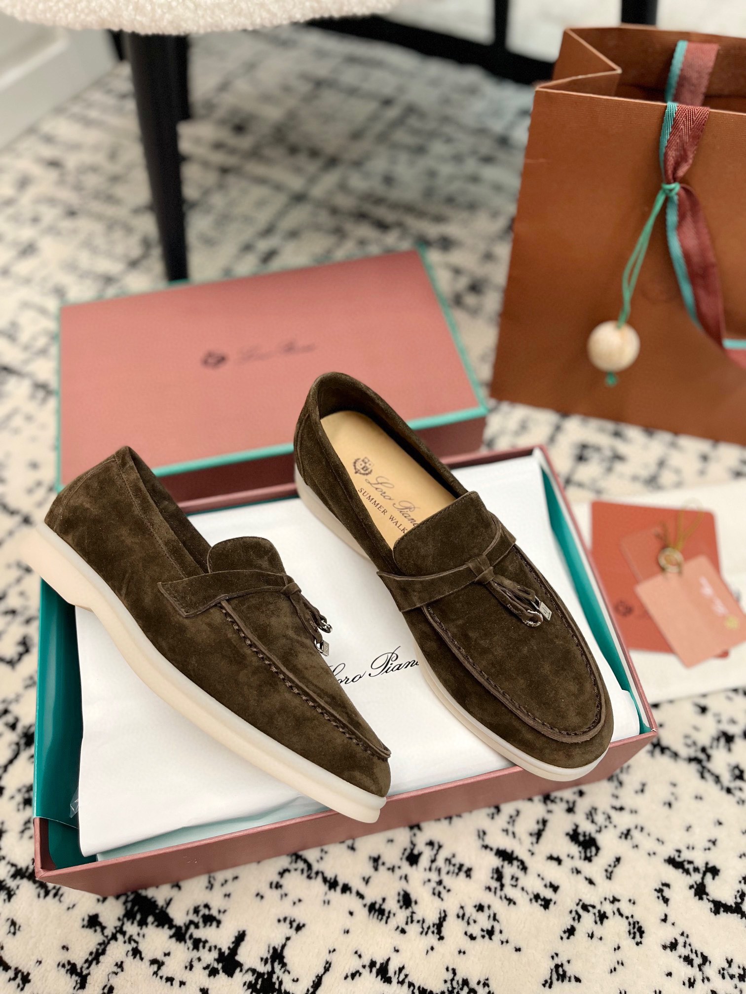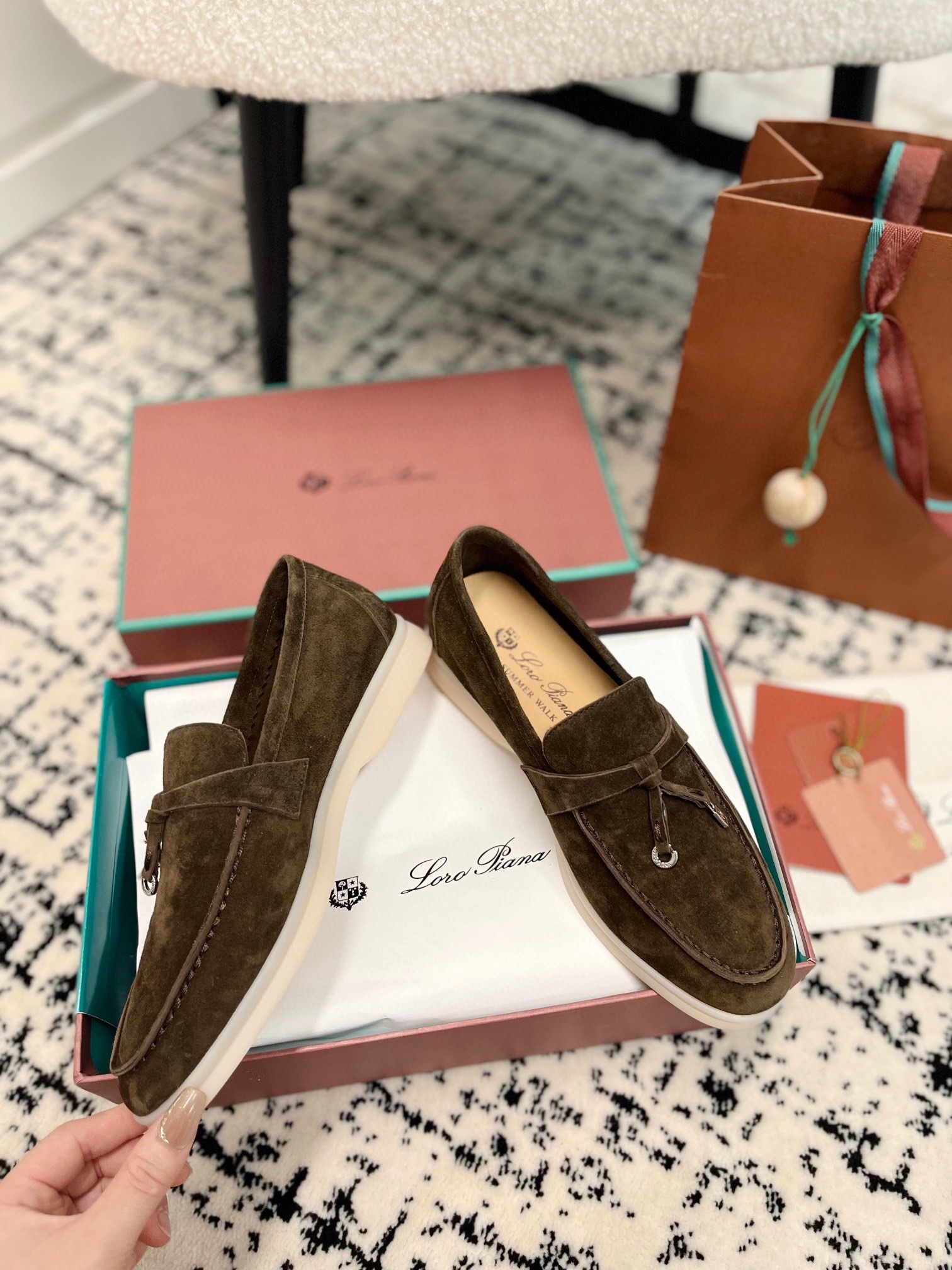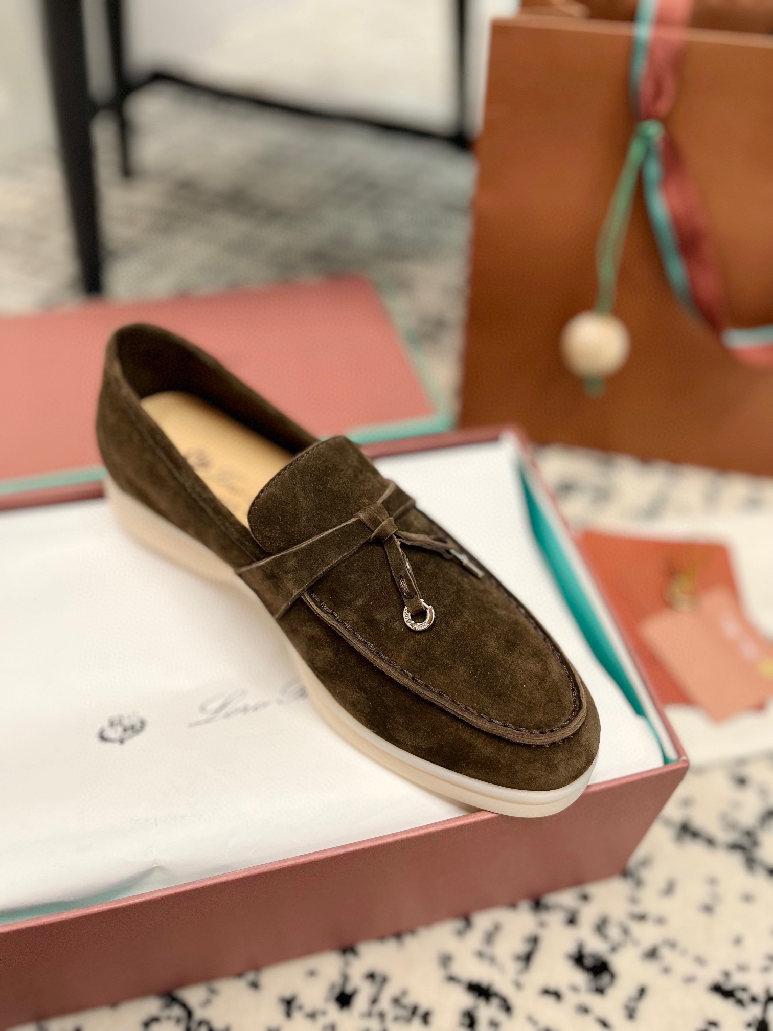 这款鞋子是AAAAA 1:1 质量 (非常棒). 使用了和原版一模一样的材料. 商标部分也保持了和洛罗皮亚纳/Loro Piana一样. 图片拍摄是实物鞋子拍摄, 您所收到的实物保证和我们图片一模一样.