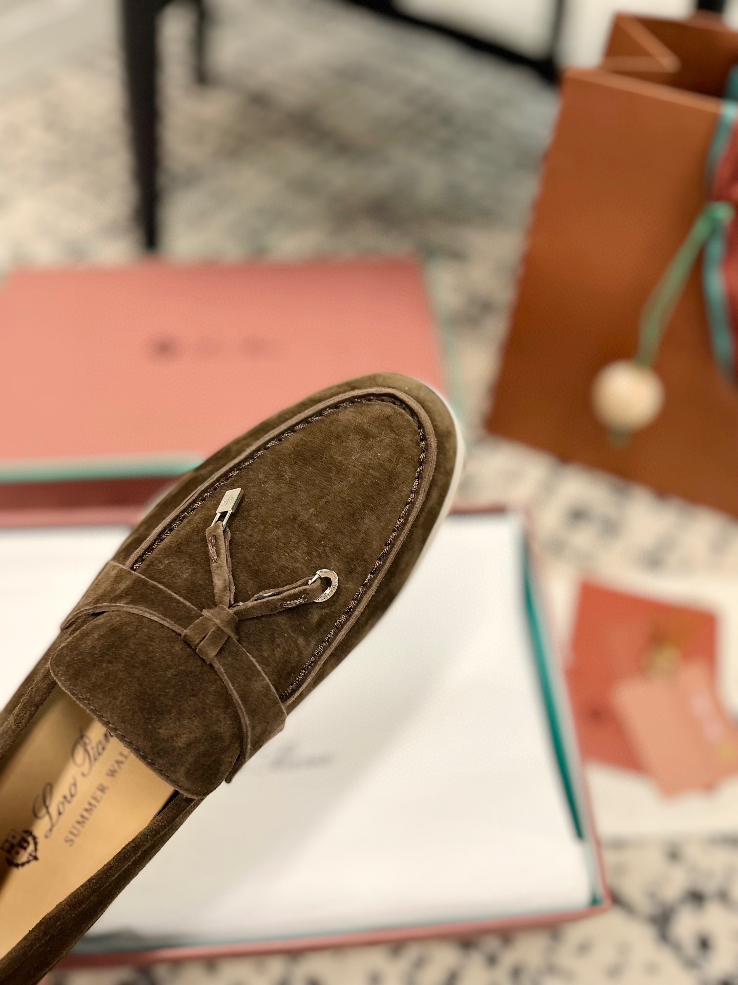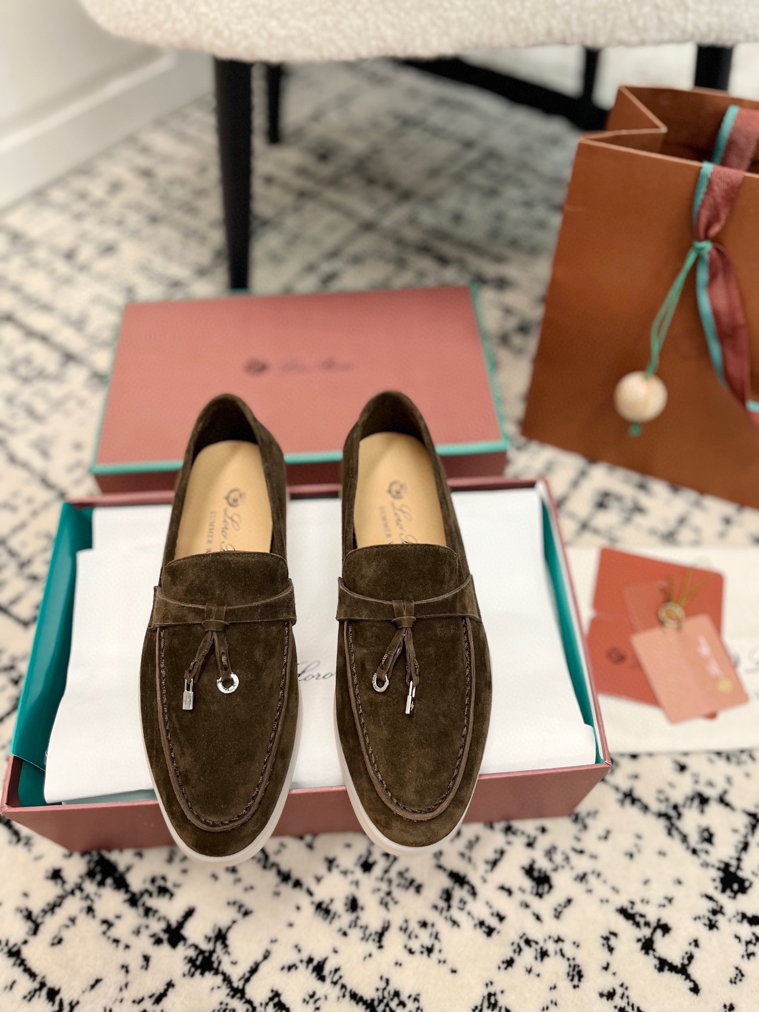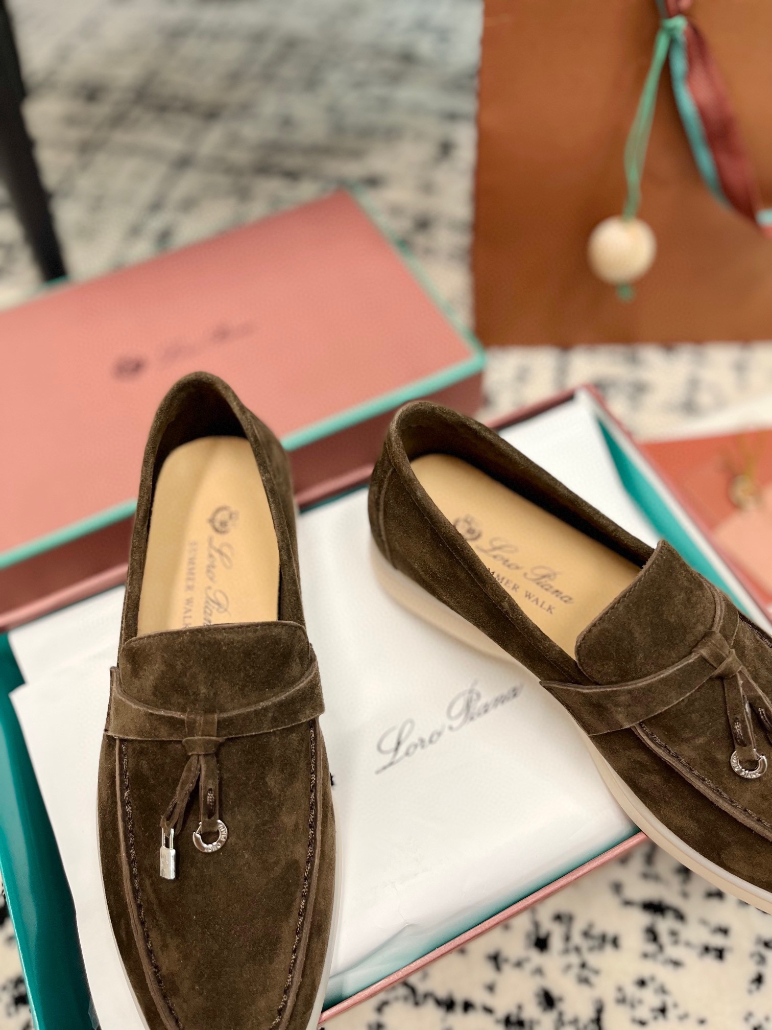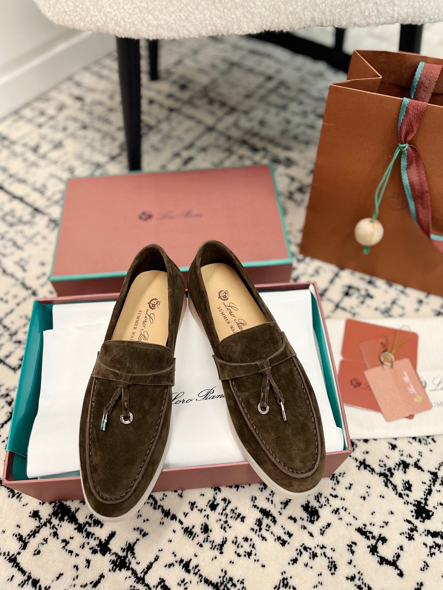 这款鞋子是AAAAA 1:1 质量 (非常棒). 使用了和原版一模一样的材料. 商标部分也保持了和洛罗皮亚纳/Loro Piana一样. 图片拍摄是实物鞋子拍摄, 您所收到的实物保证和我们图片一模一样.