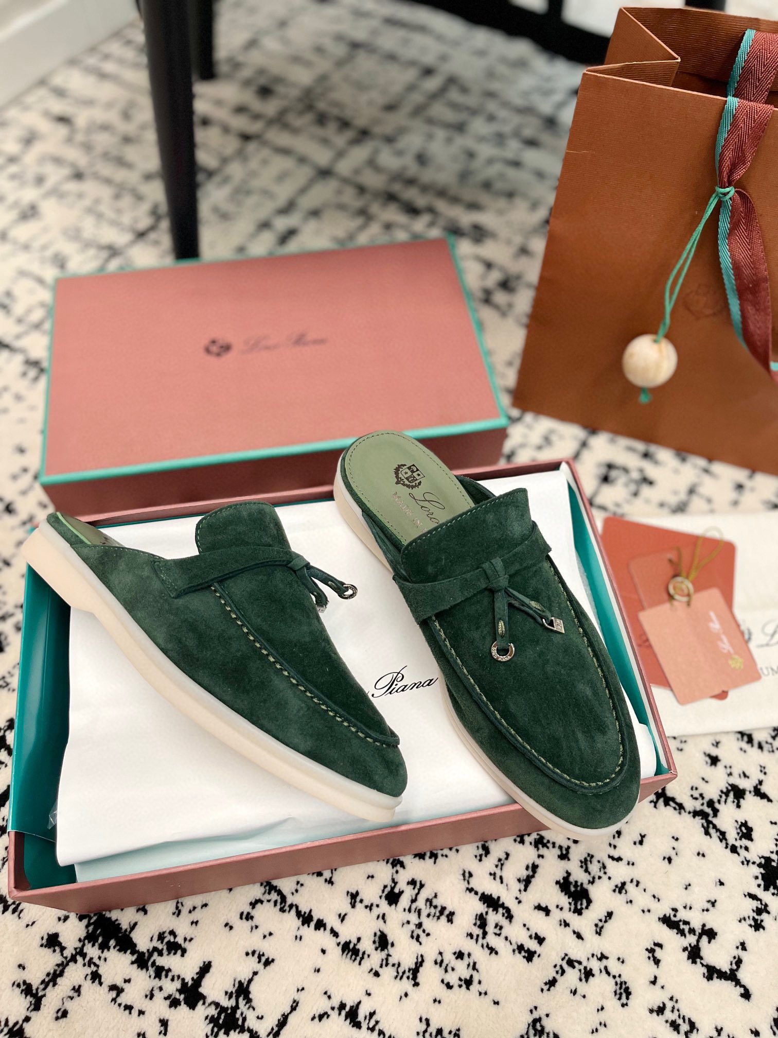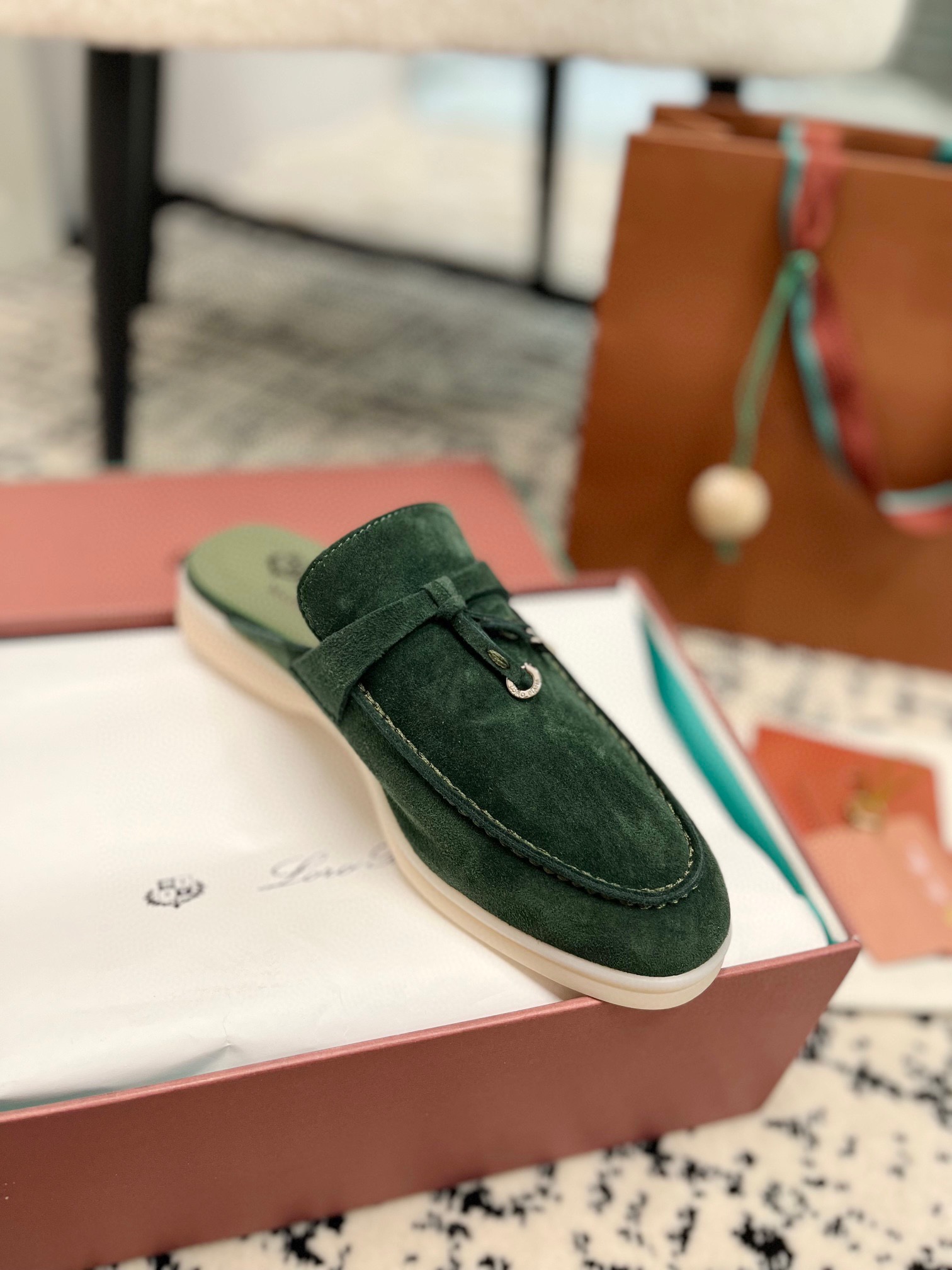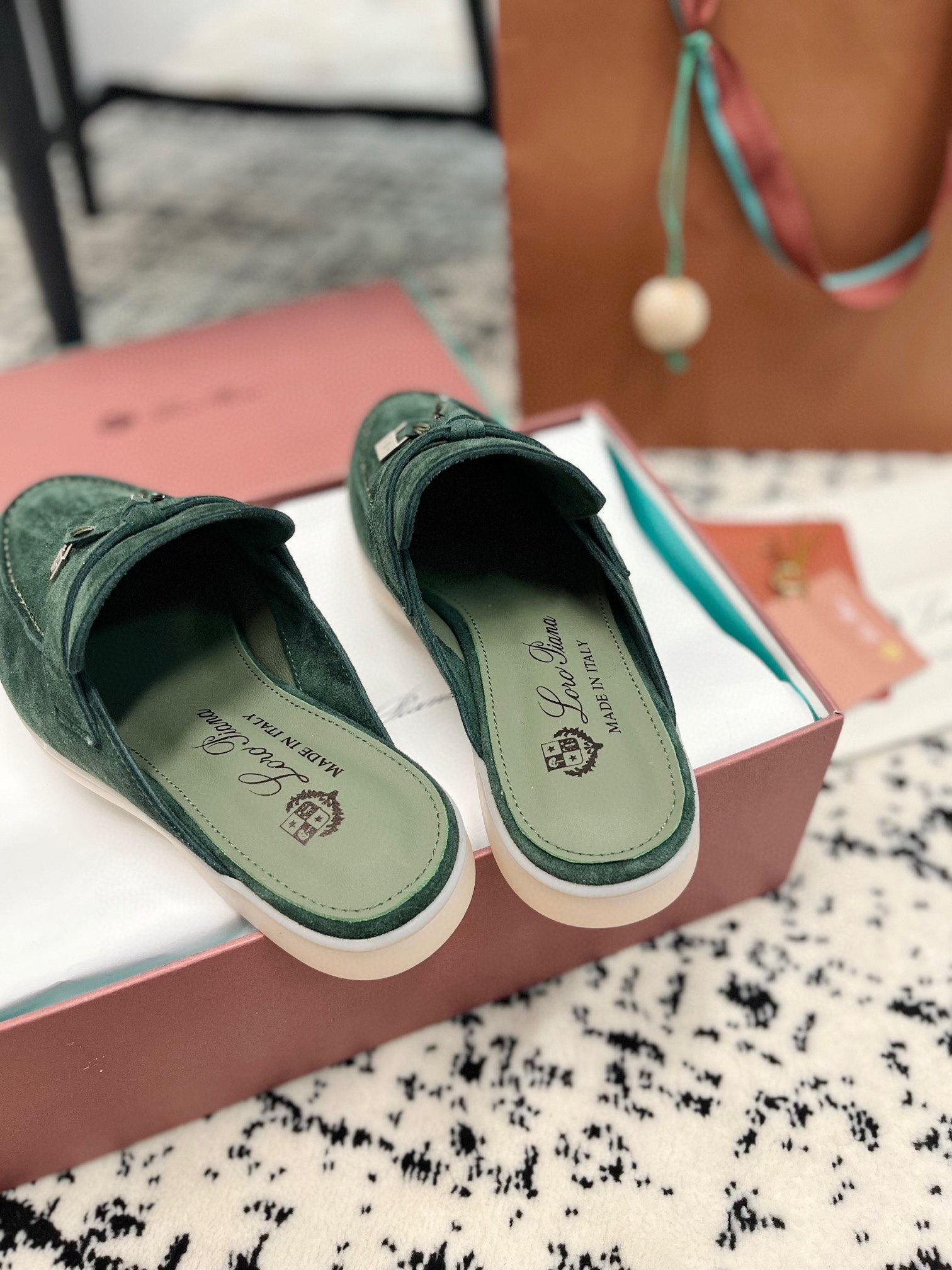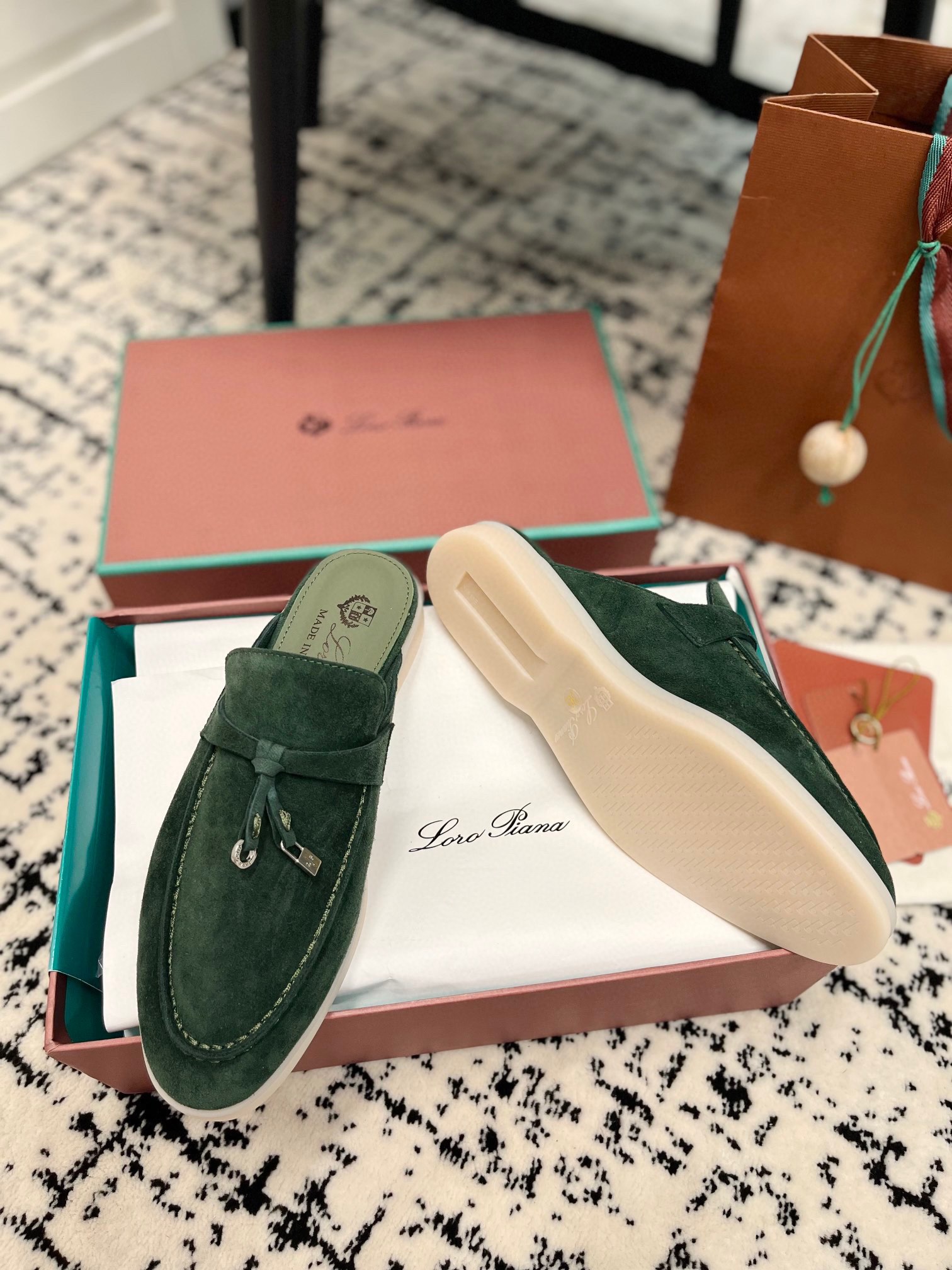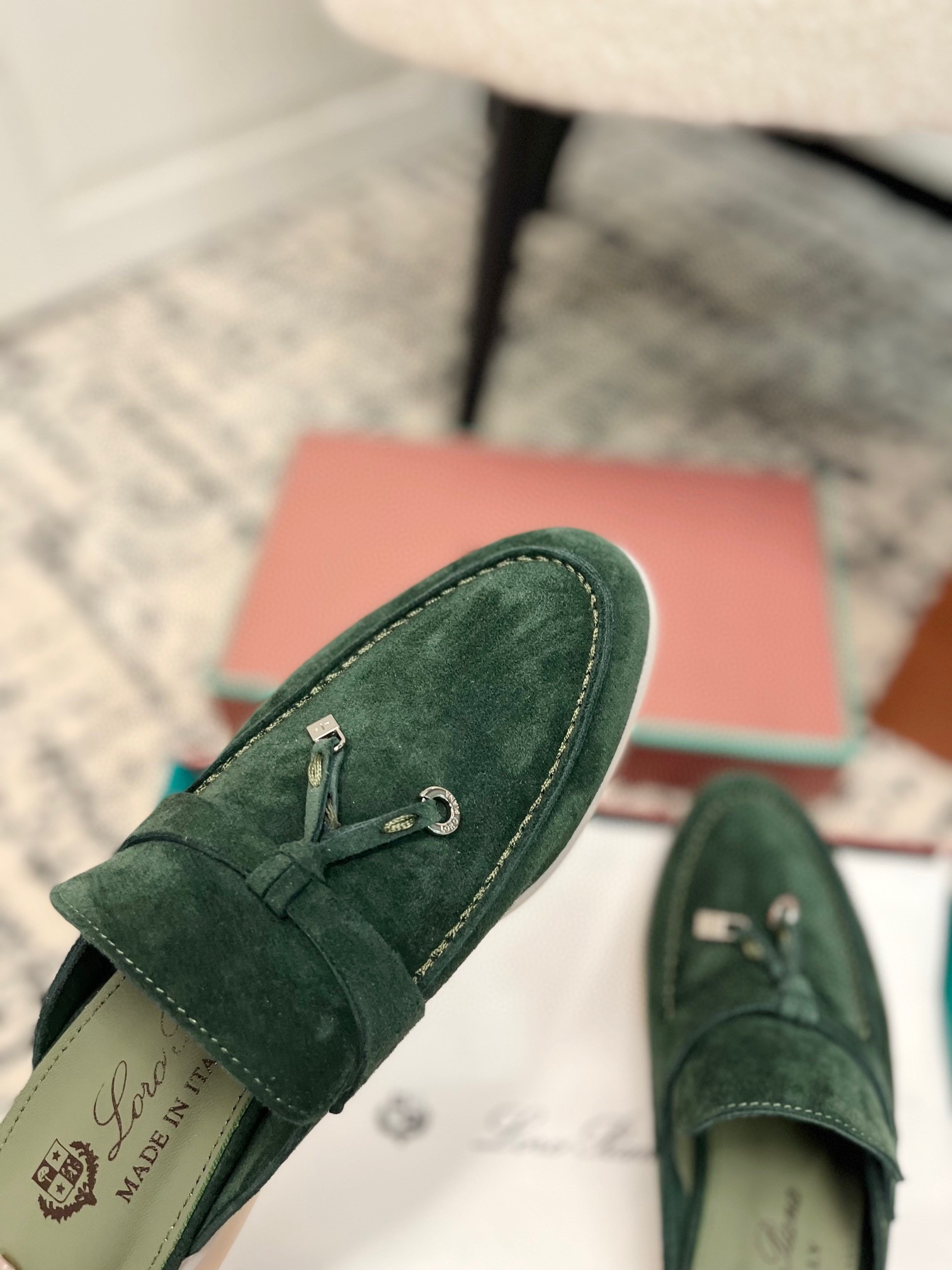 这款鞋子是AAAAA 1:1 质量 (非常棒). 使用了和原版一模一样的材料. 商标部分也保持了和洛罗皮亚纳/Loro Piana一样. 图片拍摄是实物鞋子拍摄, 您所收到的实物保证和我们图片一模一样.
