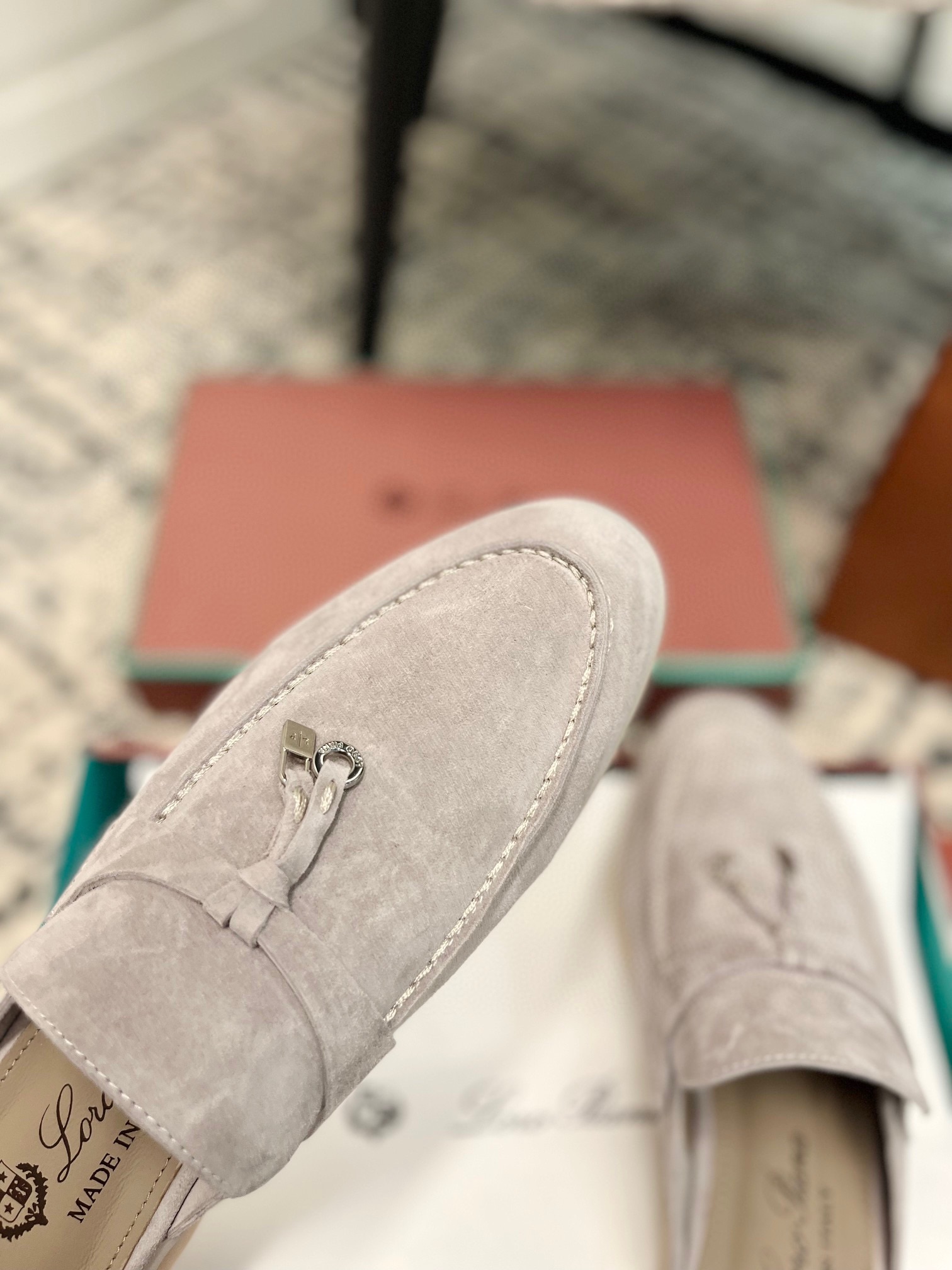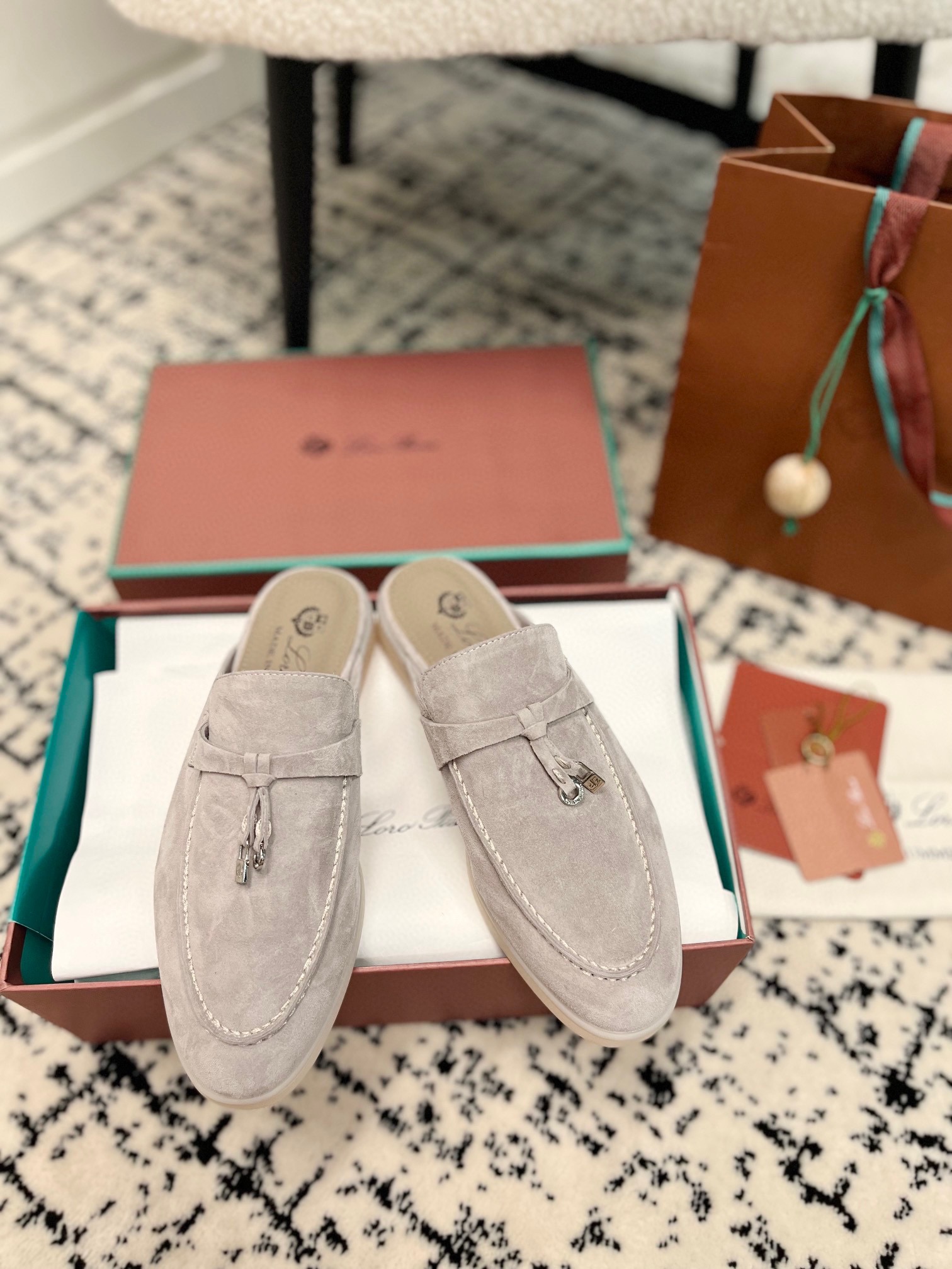 这款鞋子是AAAAA 1:1 质量 (非常棒). 使用了和原版一模一样的材料. 商标部分也保持了和洛罗皮亚纳/Loro Piana一样. 图片拍摄是实物鞋子拍摄, 您所收到的实物保证和我们图片一模一样.