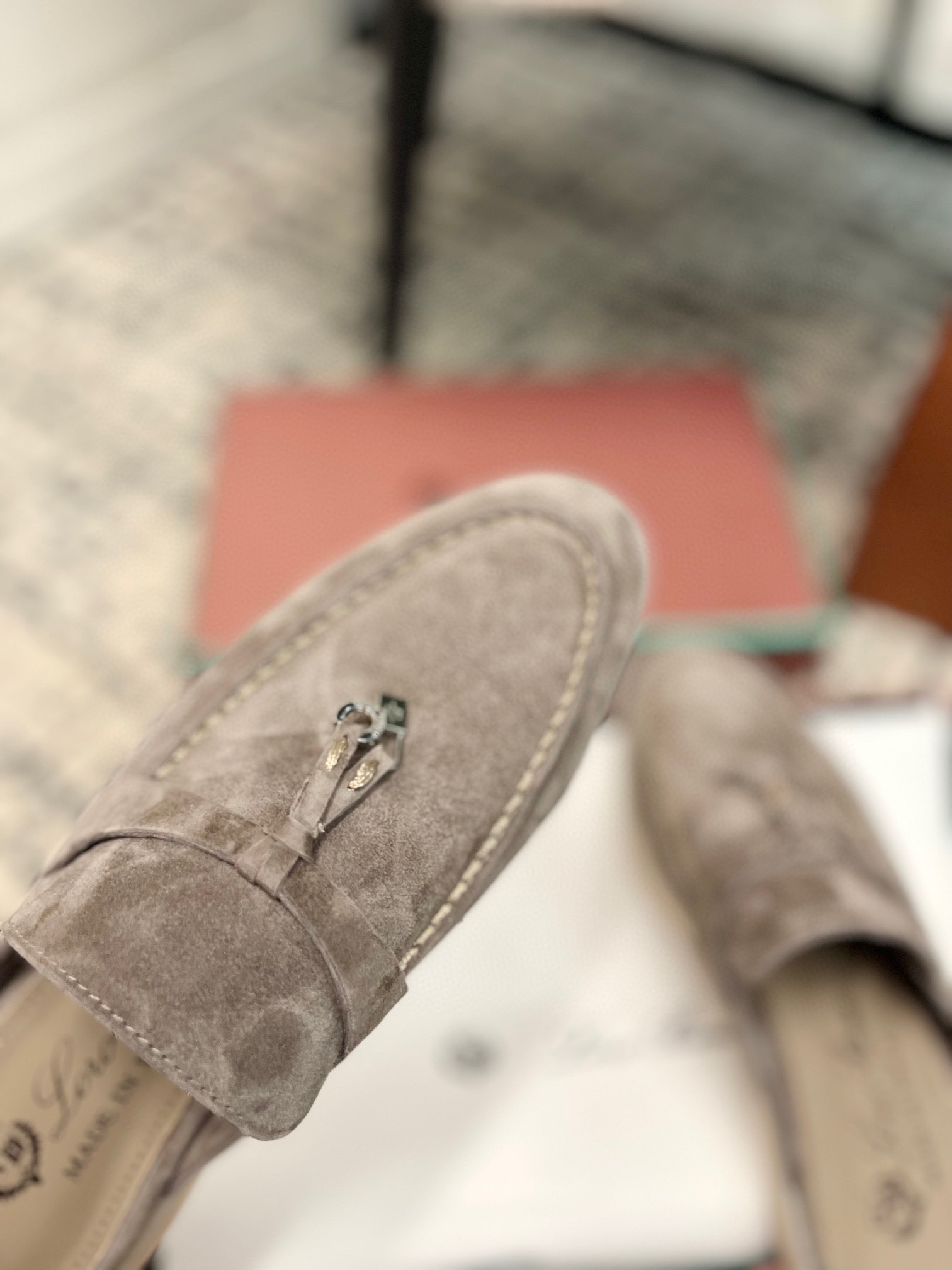 这款鞋子是AAAAA 1:1 质量 (非常棒). 使用了和原版一模一样的材料. 商标部分也保持了和洛罗皮亚纳/Loro Piana一样. 图片拍摄是实物鞋子拍摄, 您所收到的实物保证和我们图片一模一样.