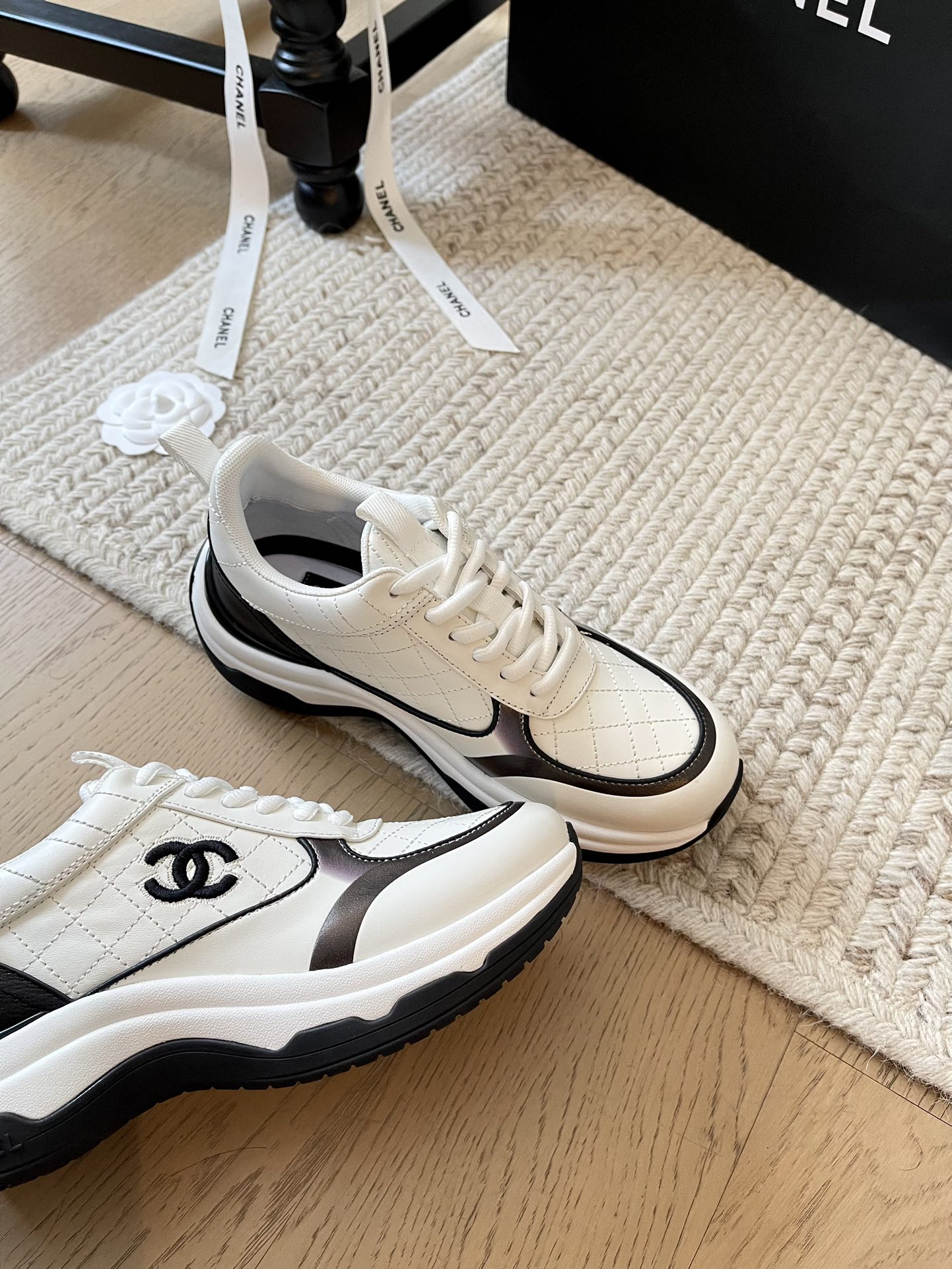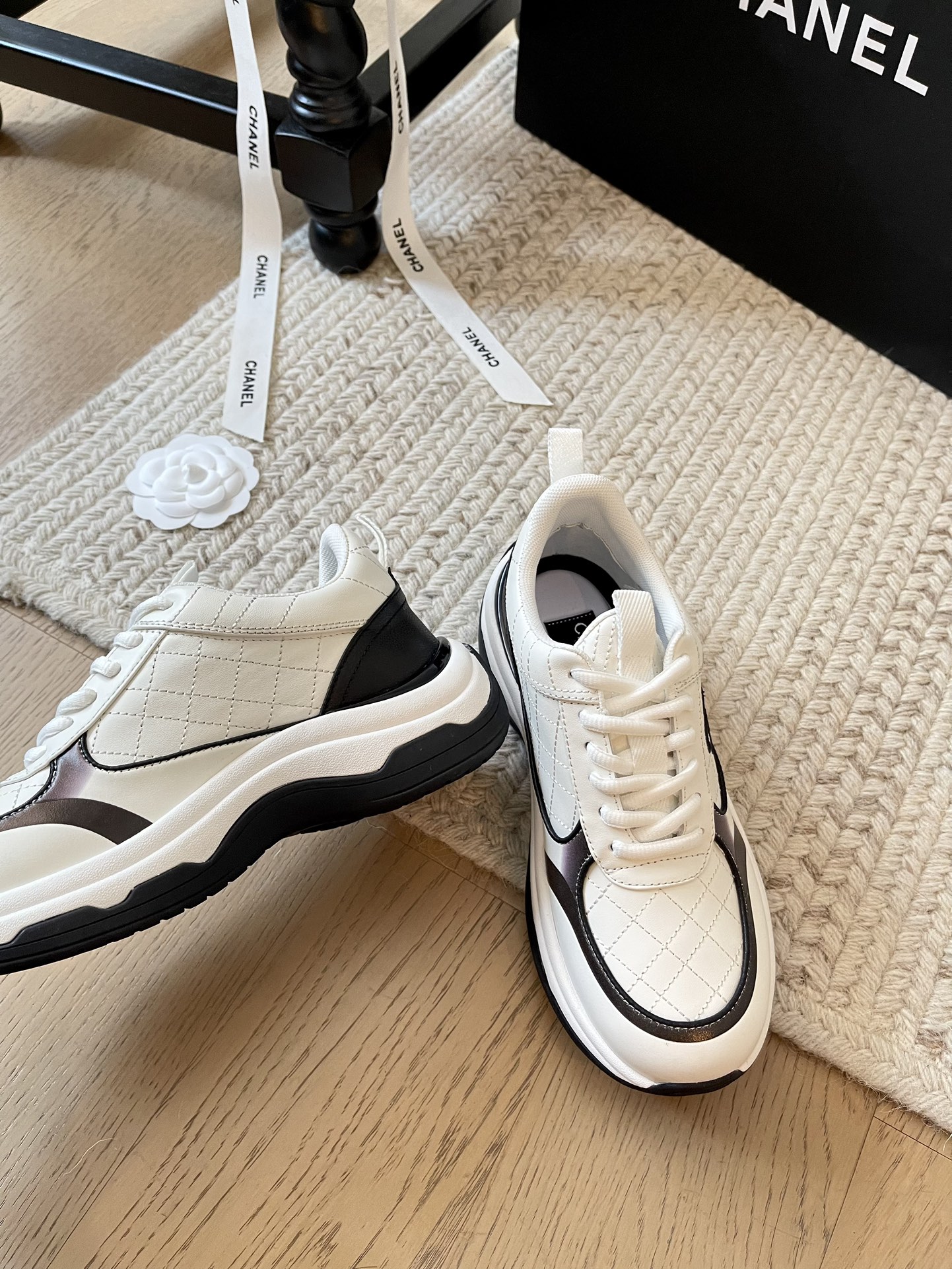 这款鞋子是AAAAA 1:1 质量 (非常棒). 使用了和原版一模一样的材料. 商标部分也保持了和香奈儿/Chanel一样. 图片拍摄是实物鞋子拍摄, 您所收到的实物保证和我们图片一模一样.