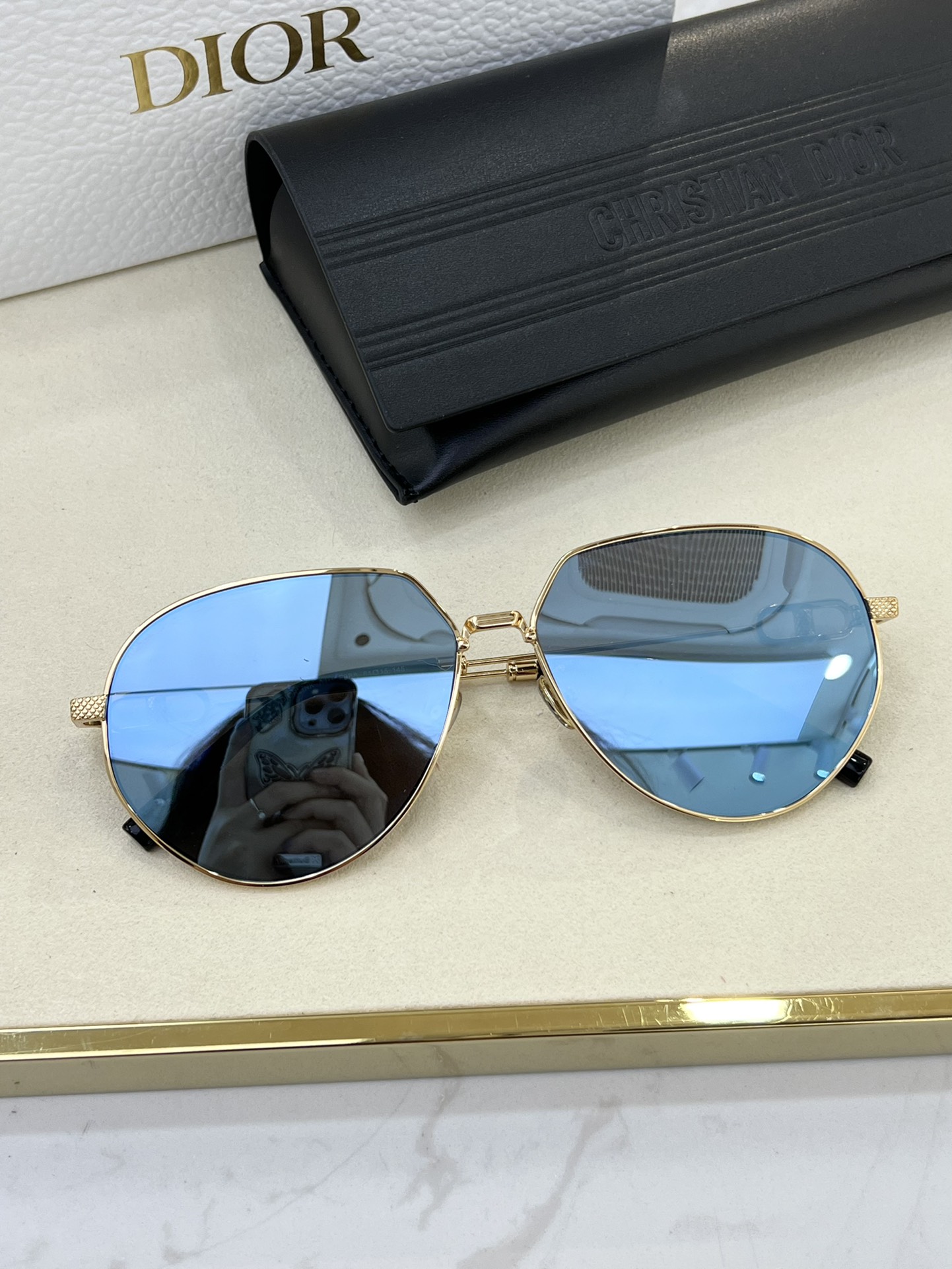 这款太阳眼镜是AAAAA 1:1 质量 (非常棒). 使用了和原版一模一样的材料. 商标部分也保持了和迪奥/Dior一样. 图片拍摄是实物太阳眼镜拍摄, 您所收到的实物保证和我们图片一模一样.