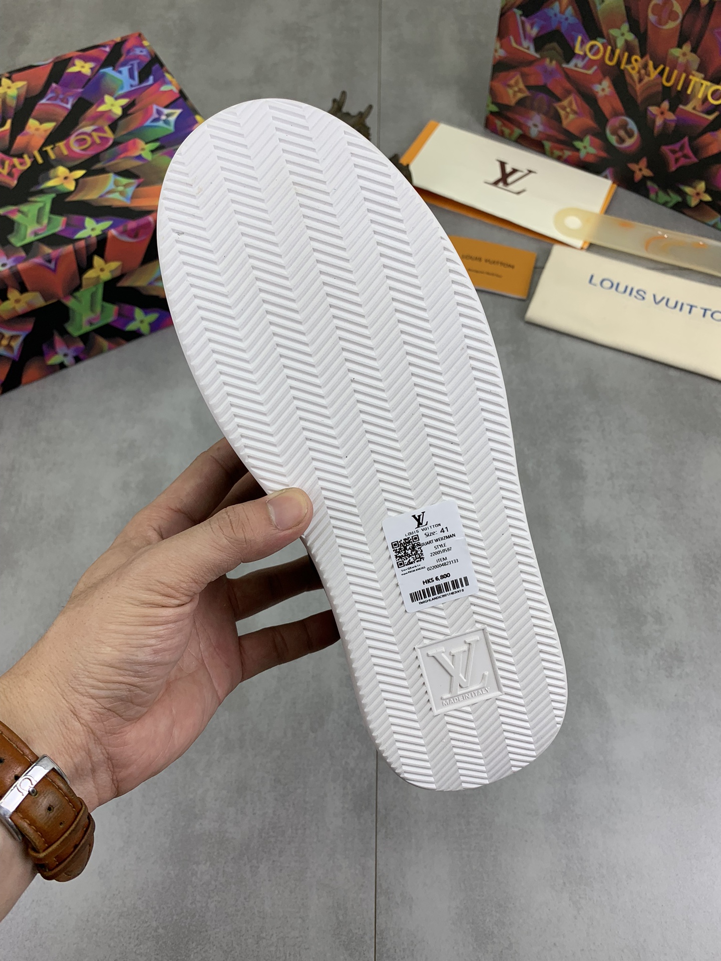 这款鞋子是AAAAA 1:1 质量 (非常棒). 使用了和原版一模一样的材料. 商标部分也保持了和路易威登/Louis Vuitton一样. 图片拍摄是实物鞋子拍摄, 您所收到的实物保证和我们图片一模一样.