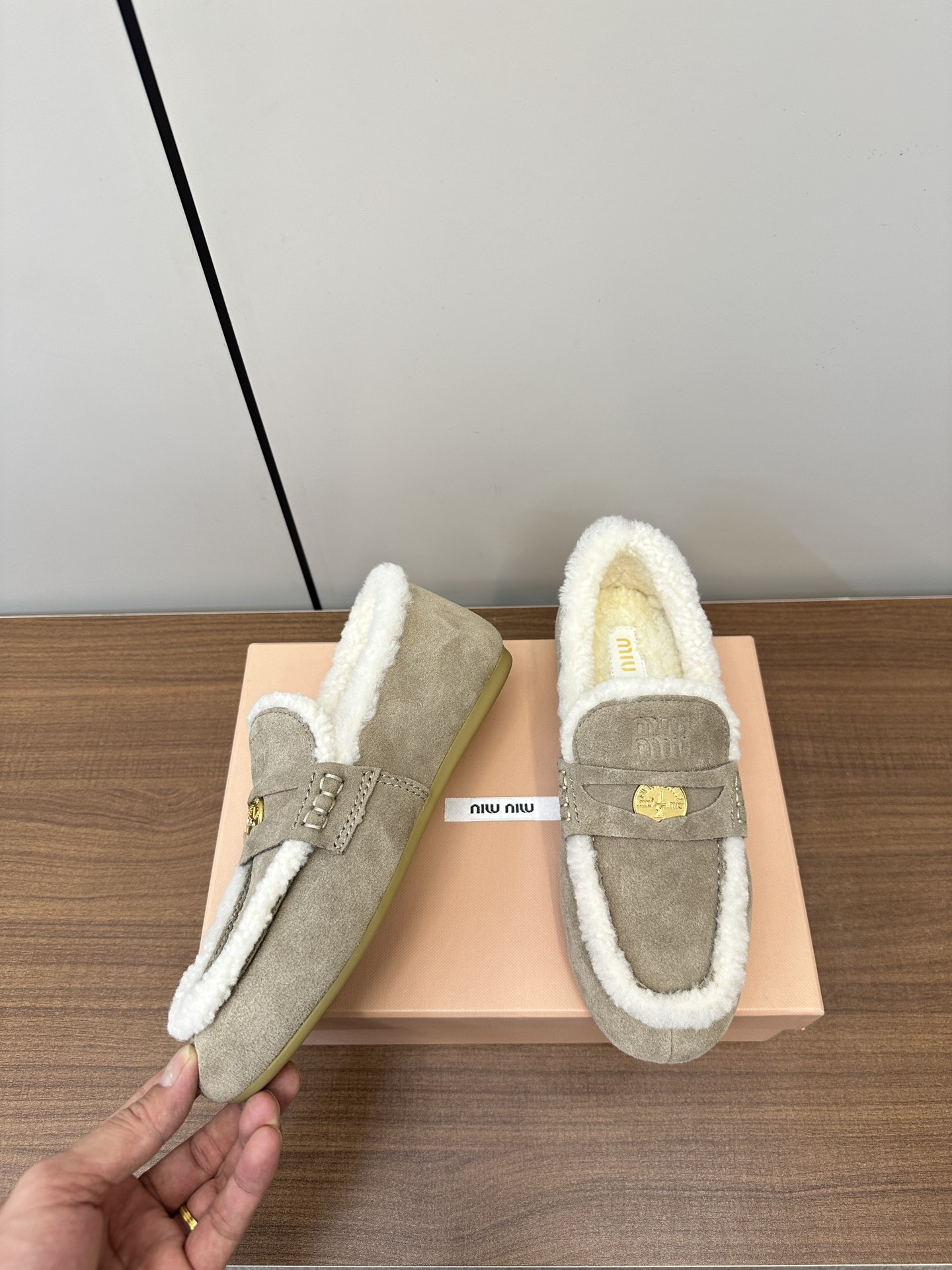 这款鞋子是AAAAA 1:1 质量 (非常棒). 使用了和原版一模一样的材料. 商标部分也保持了和缪缪/Miu Miu一样. 图片拍摄是实物鞋子拍摄, 您所收到的实物保证和我们图片一模一样.