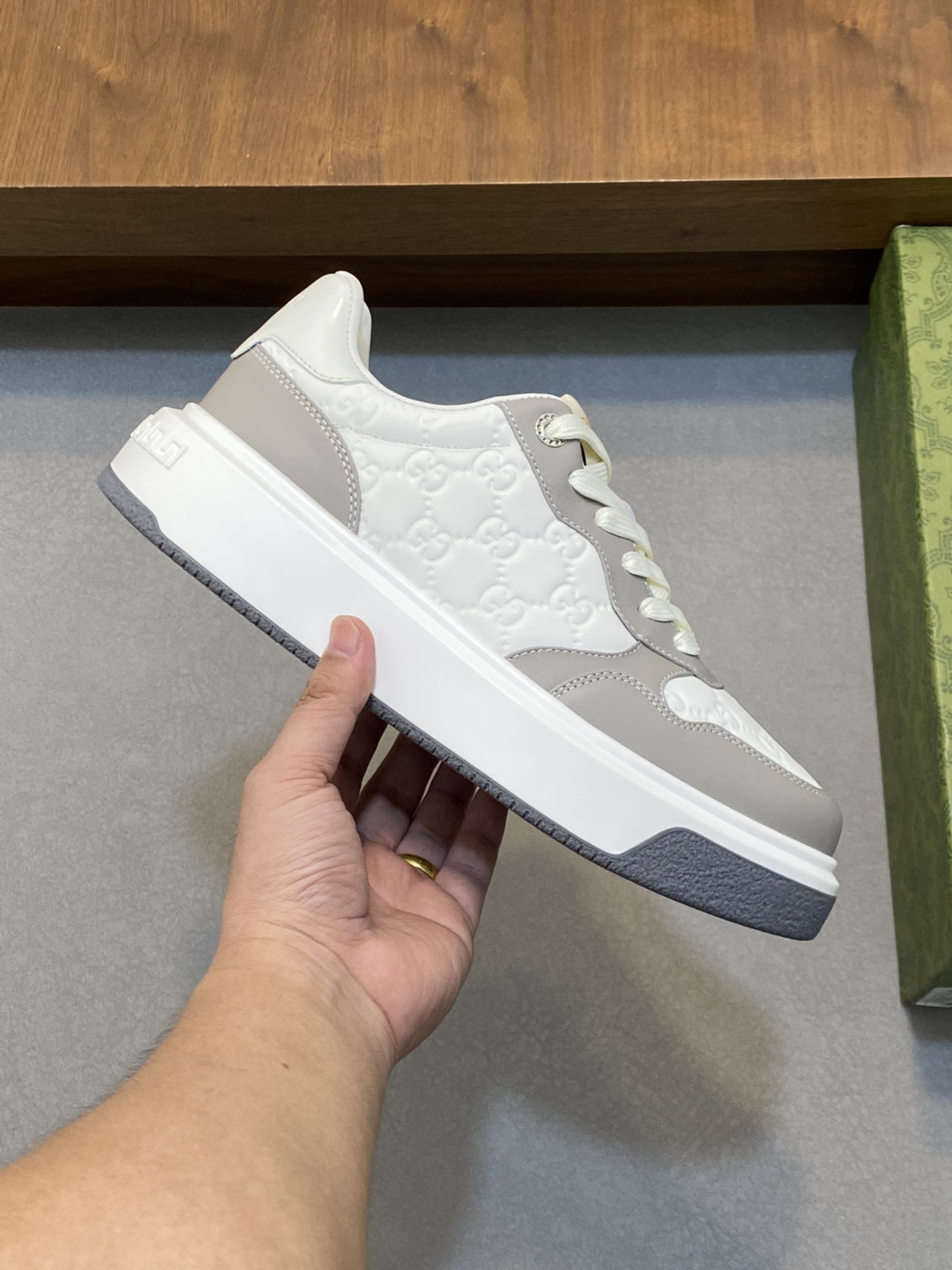 这款鞋子是AAAAA 1:1 质量 (非常棒). 使用了和原版一模一样的材料. 商标部分也保持了和古奇/Gucci一样. 图片拍摄是实物鞋子拍摄, 您所收到的实物保证和我们图片一模一样.