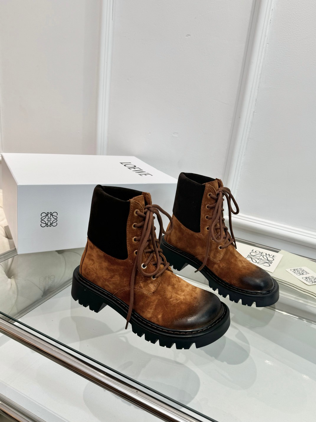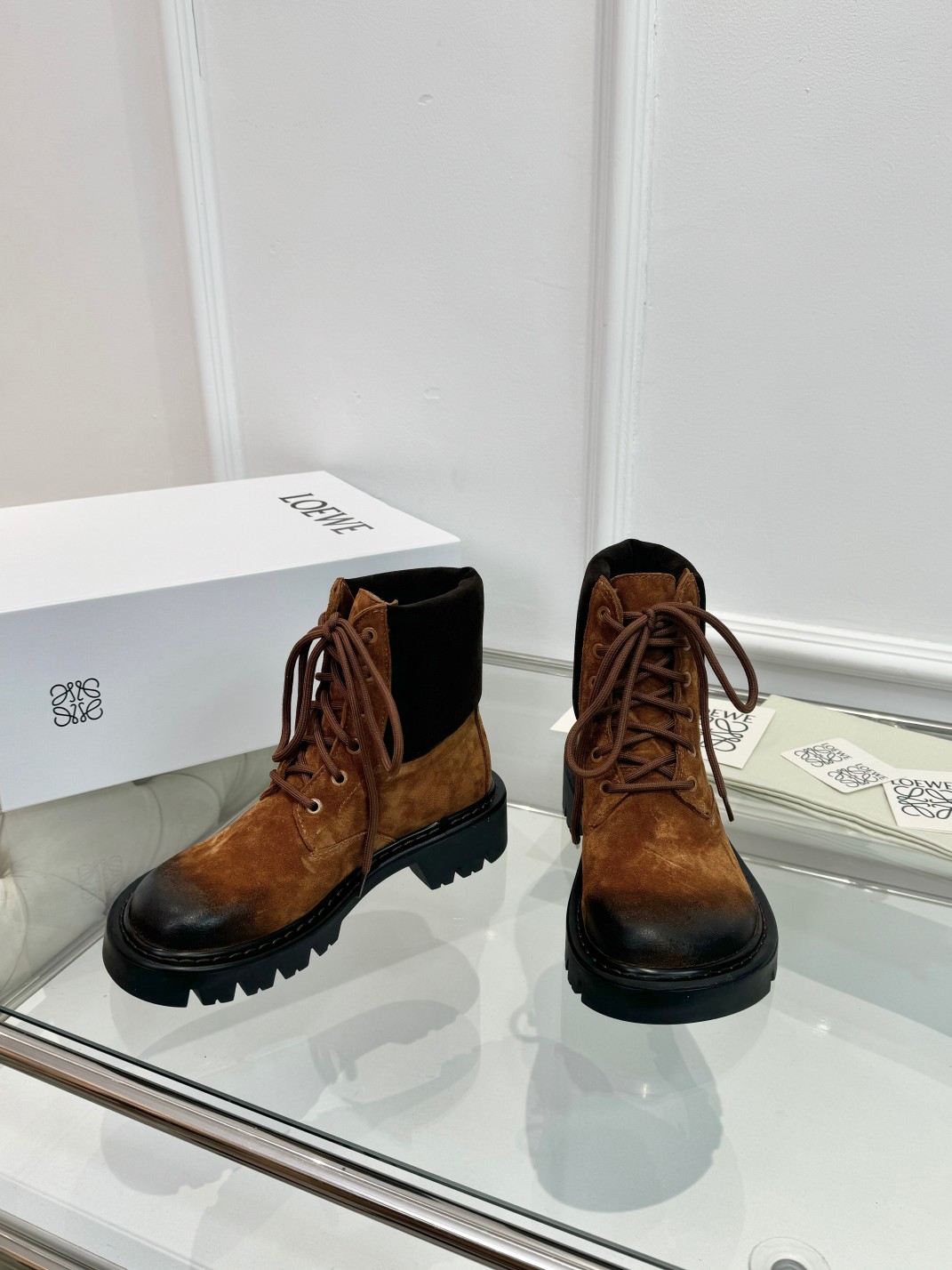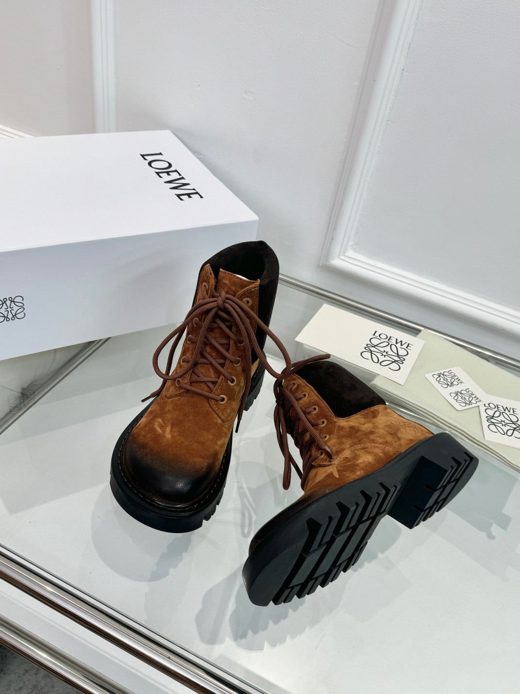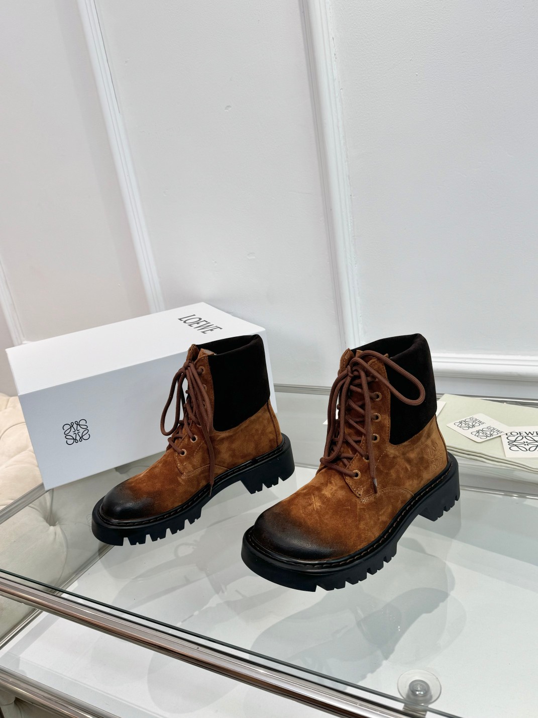 这款鞋子是AAAAA 1:1 质量 (非常棒). 使用了和原版一模一样的材料. 商标部分也保持了和罗意威/Loewe一样. 图片拍摄是实物鞋子拍摄, 您所收到的实物保证和我们图片一模一样.