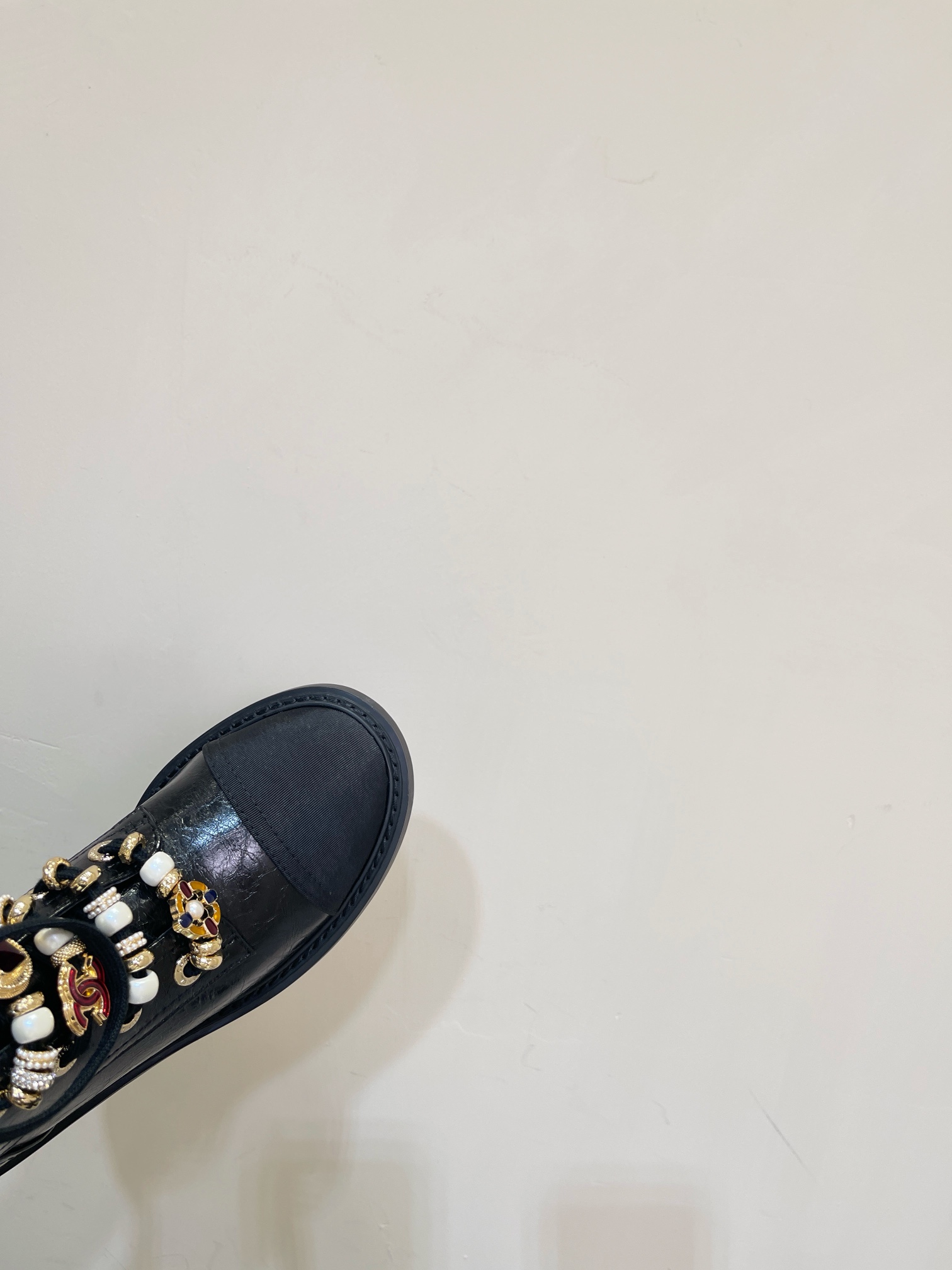 这款鞋子是AAAAA 1:1 质量 (非常棒). 使用了和原版一模一样的材料. 商标部分也保持了和香奈儿/Chanel一样. 图片拍摄是实物鞋子拍摄, 您所收到的实物保证和我们图片一模一样.