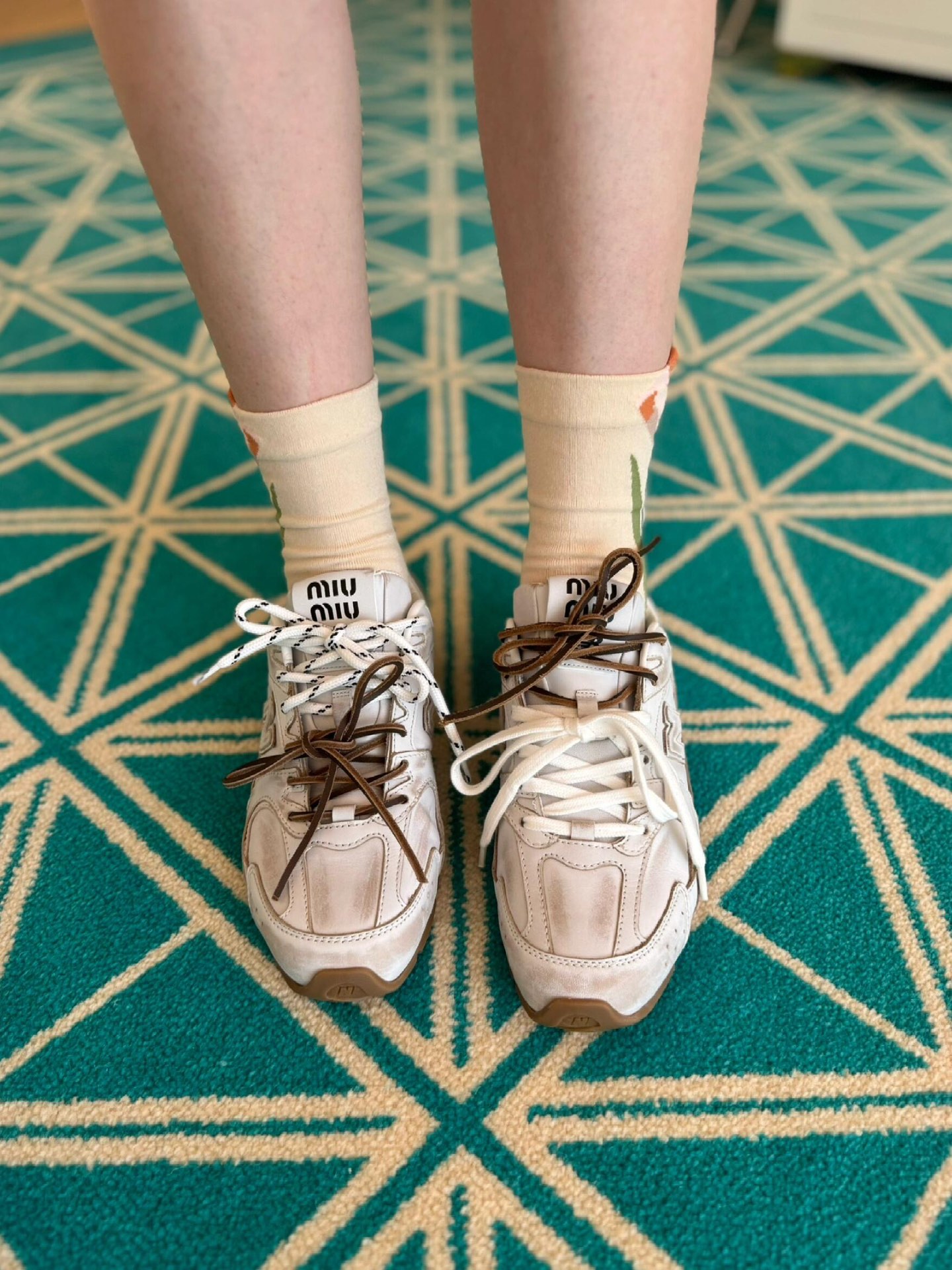 这款鞋子是AAAAA 1:1 质量 (非常棒). 使用了和原版一模一样的材料. 商标部分也保持了和缪缪/Miu Miu一样. 图片拍摄是实物鞋子拍摄, 您所收到的实物保证和我们图片一模一样.
