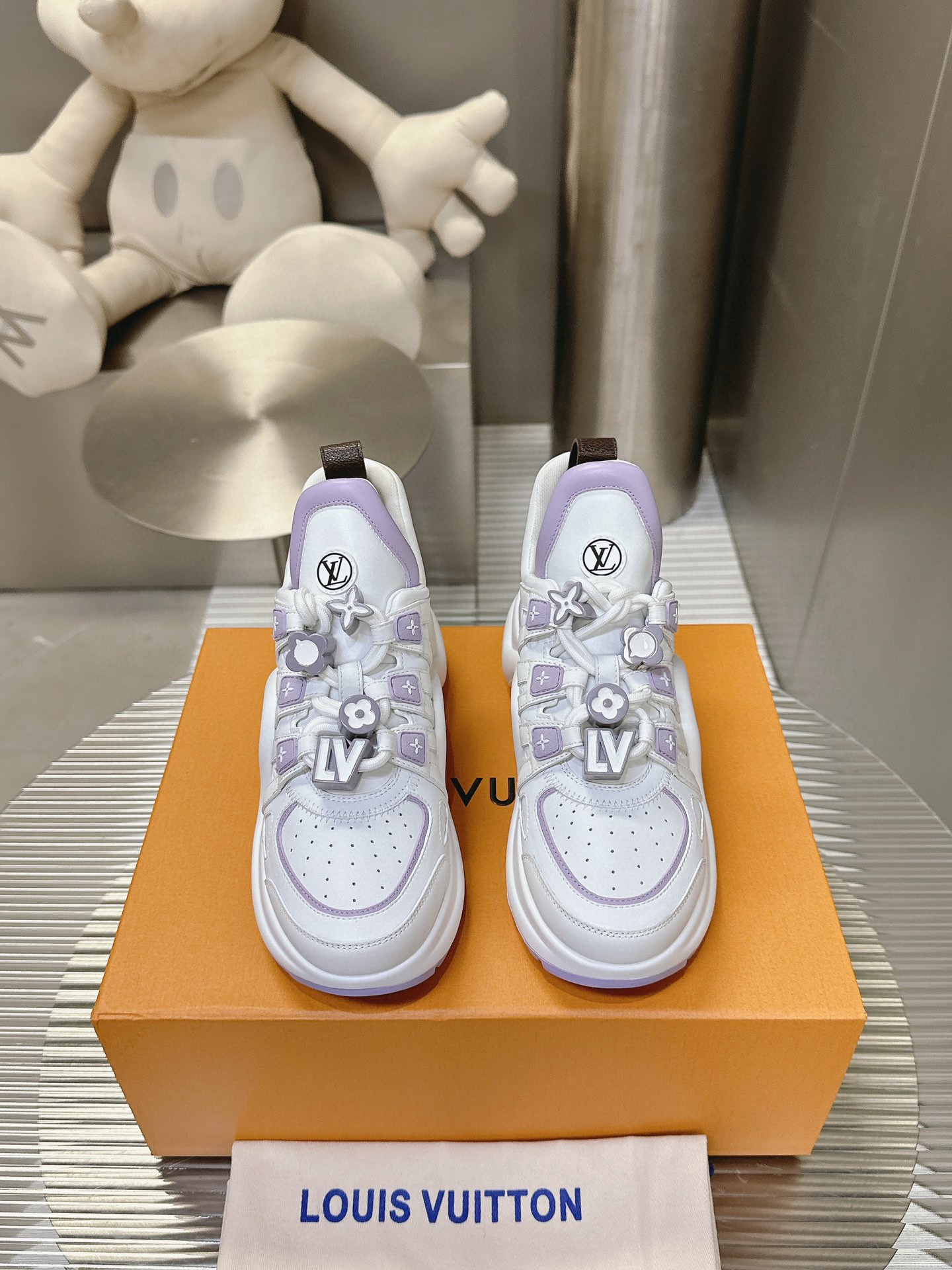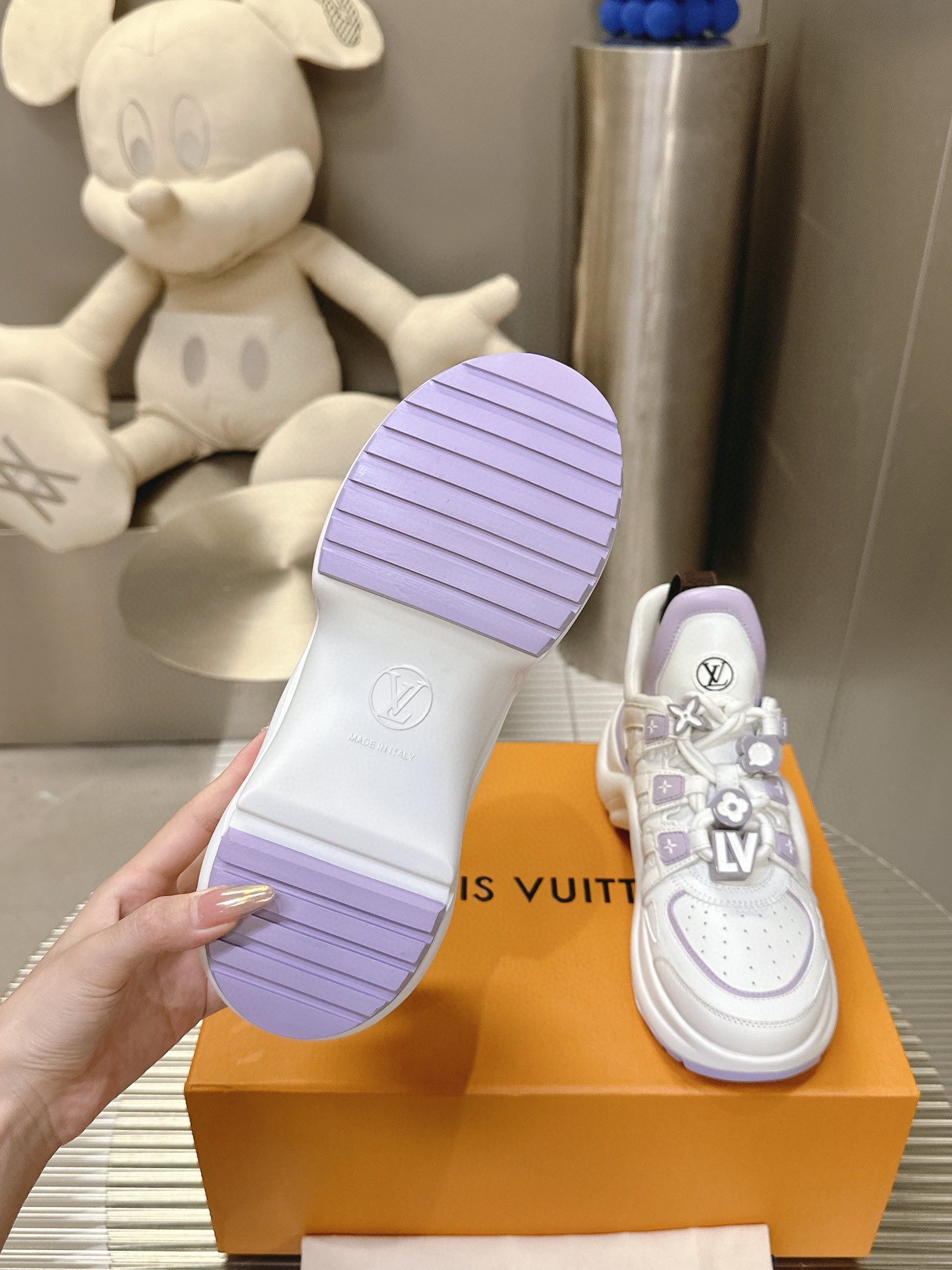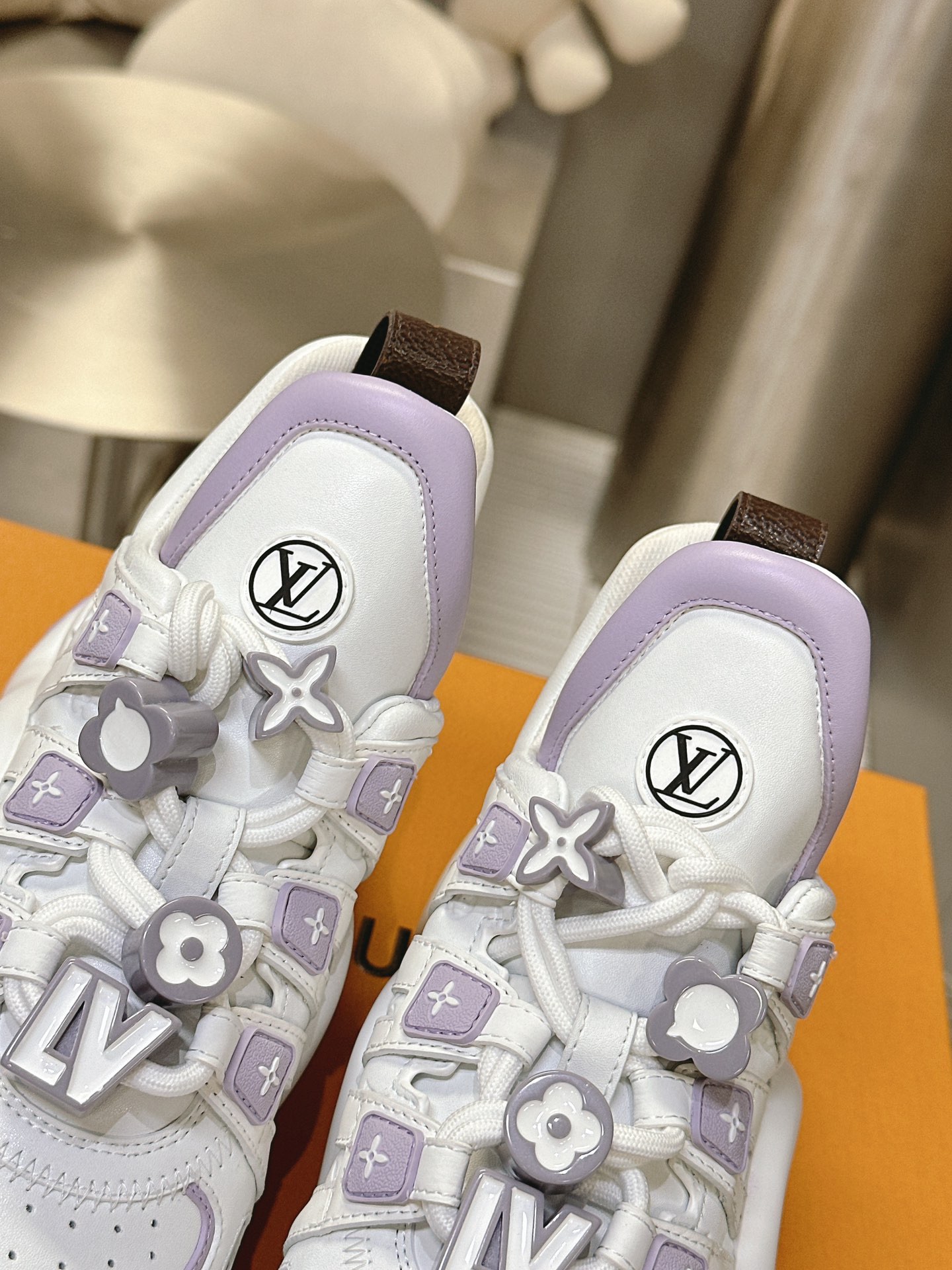 这款鞋子是AAAAA 1:1 质量 (非常棒). 使用了和原版一模一样的材料. 商标部分也保持了和路易威登/Louis Vuitton一样. 图片拍摄是实物鞋子拍摄, 您所收到的实物保证和我们图片一模一样.