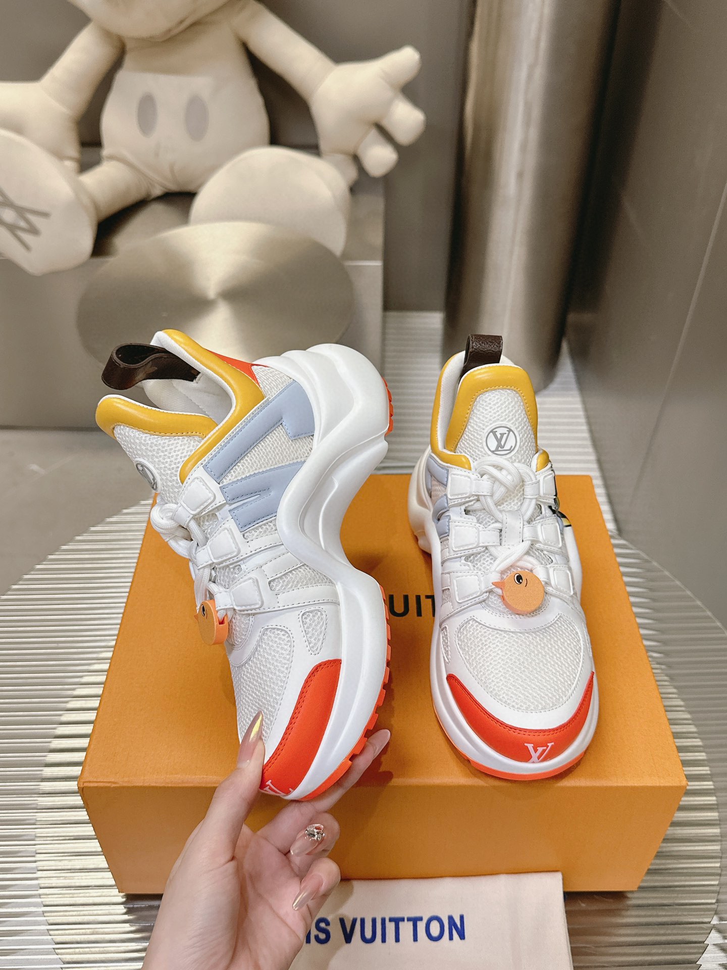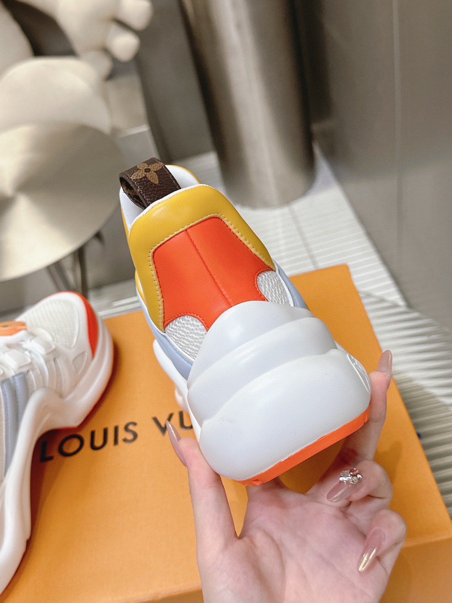 这款鞋子是AAAAA 1:1 质量 (非常棒). 使用了和原版一模一样的材料. 商标部分也保持了和路易威登/Louis Vuitton一样. 图片拍摄是实物鞋子拍摄, 您所收到的实物保证和我们图片一模一样.