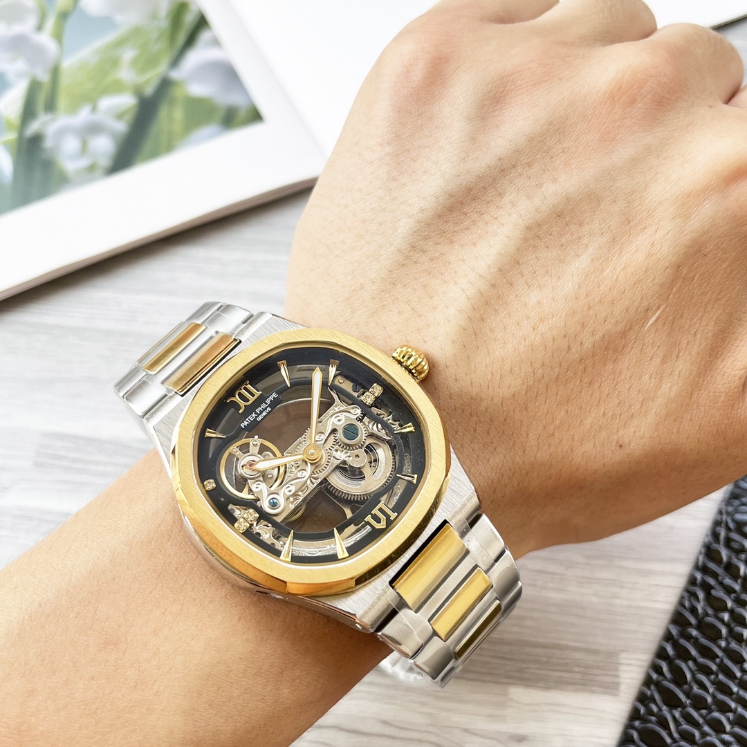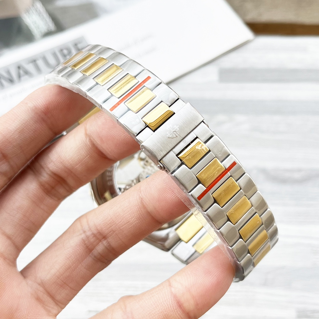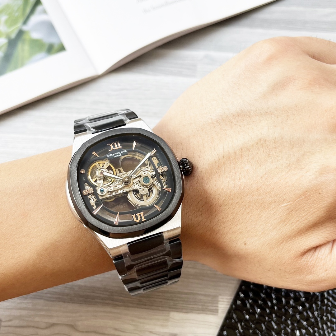 这款手表是AAAAA 1:1 质量 (非常棒). 使用了和原版一模一样的材料. 商标部分也保持了和百达翡丽/Patek Philippe一样. 图片拍摄是实物手表拍摄, 您所收到的实物保证和我们图片一模一样.