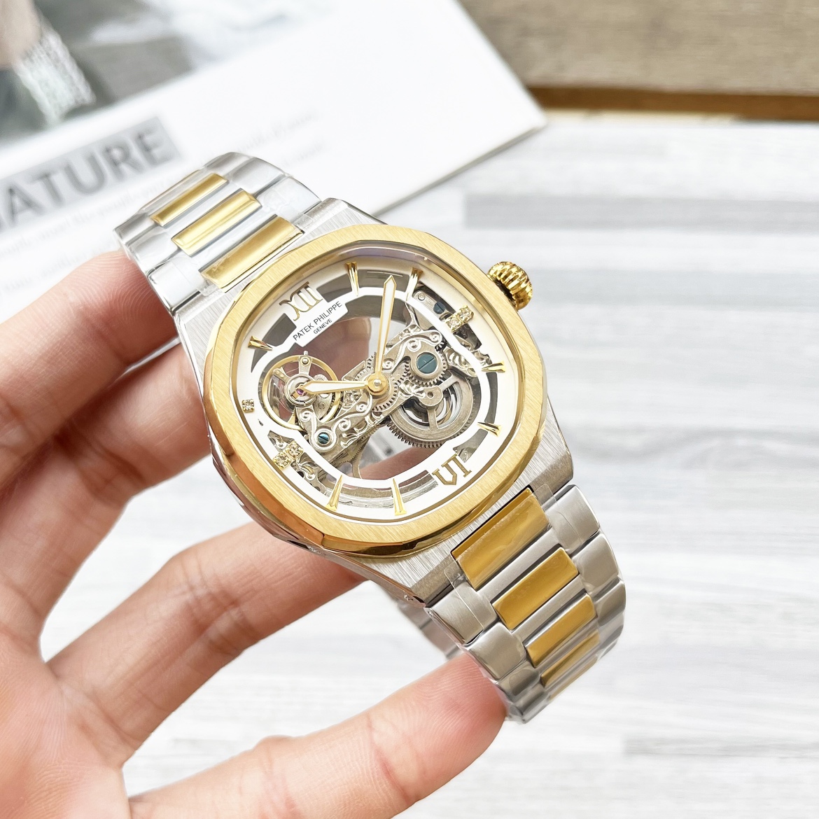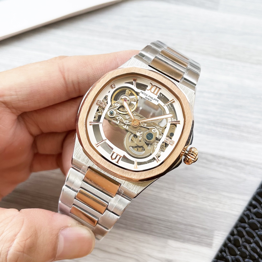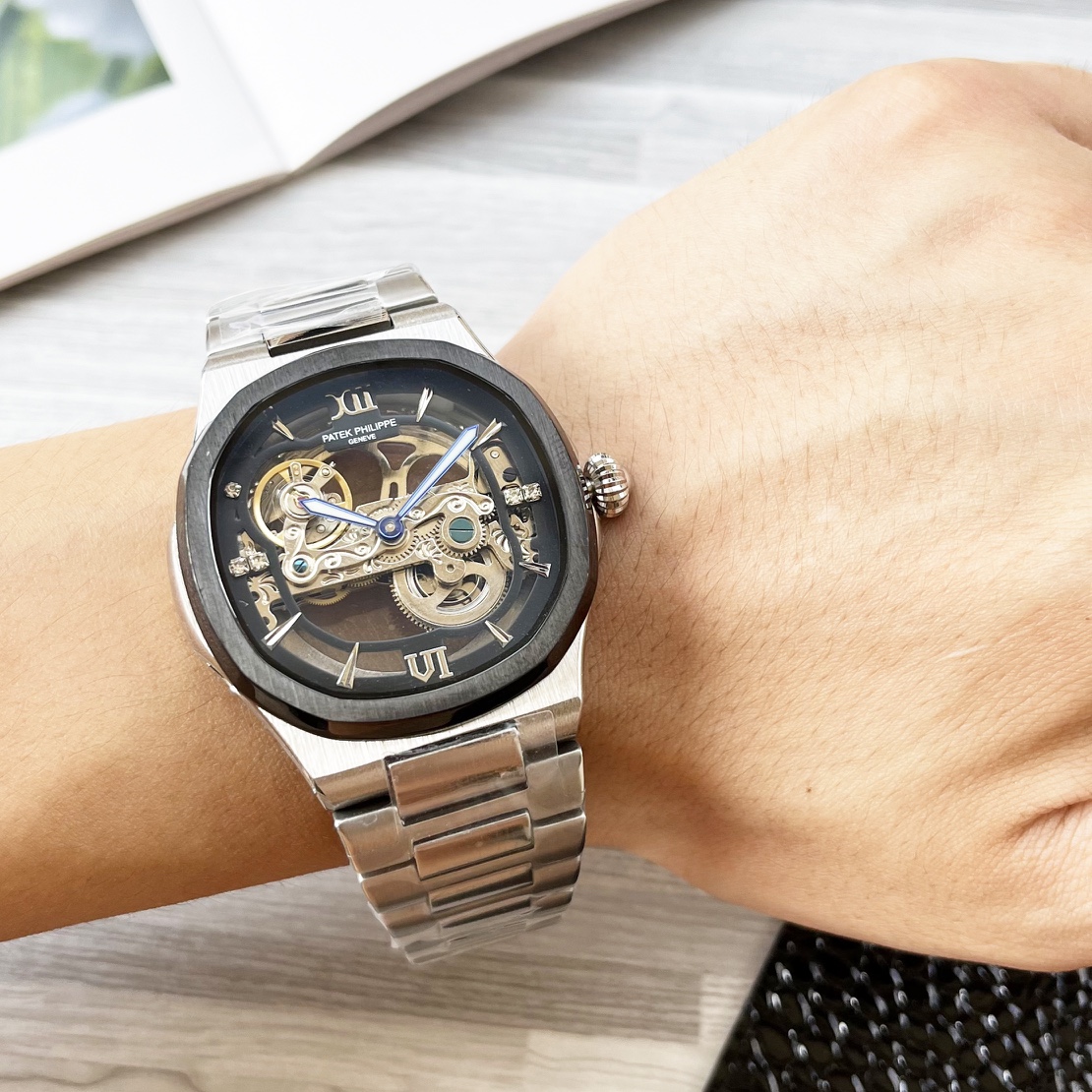 这款手表是AAAAA 1:1 质量 (非常棒). 使用了和原版一模一样的材料. 商标部分也保持了和百达翡丽/Patek Philippe一样. 图片拍摄是实物手表拍摄, 您所收到的实物保证和我们图片一模一样.