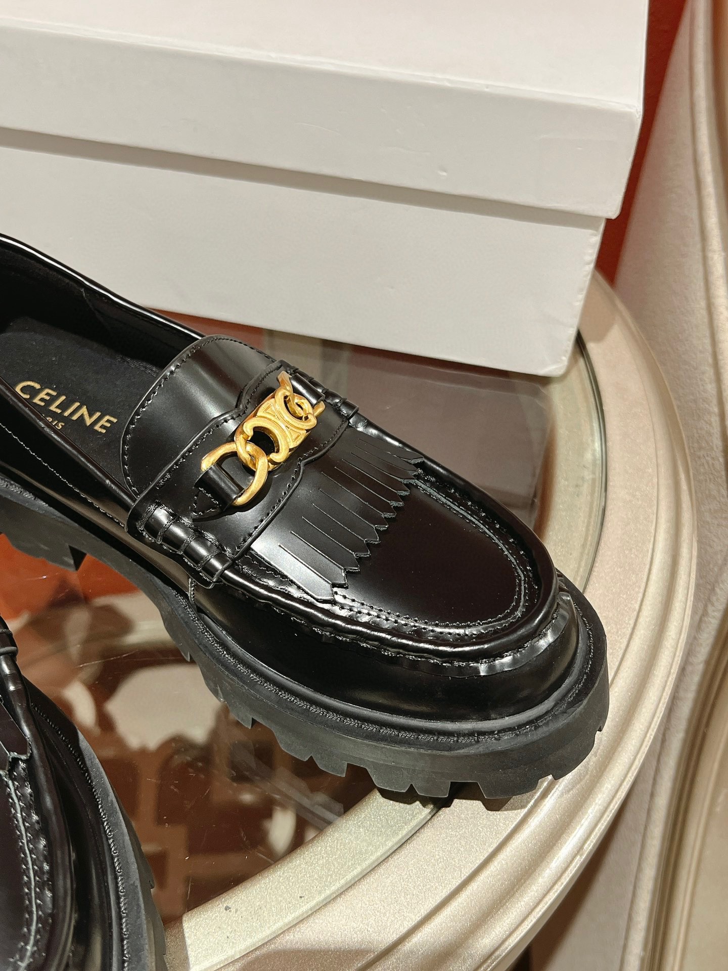 这款鞋子是AAAAA 1:1 质量 (非常棒). 使用了和原版一模一样的材料. 商标部分也保持了和思琳/Celine一样. 图片拍摄是实物鞋子拍摄, 您所收到的实物保证和我们图片一模一样.