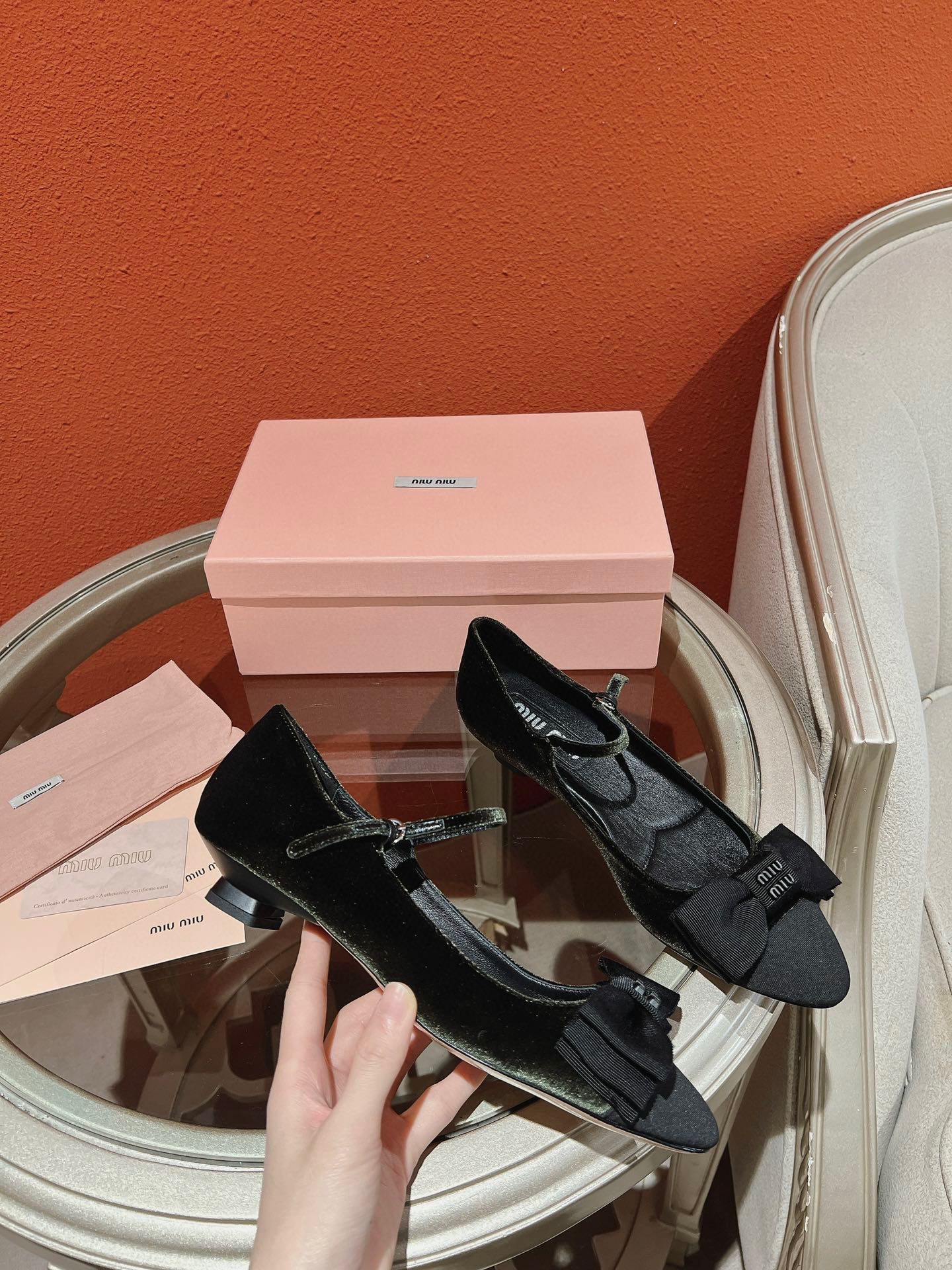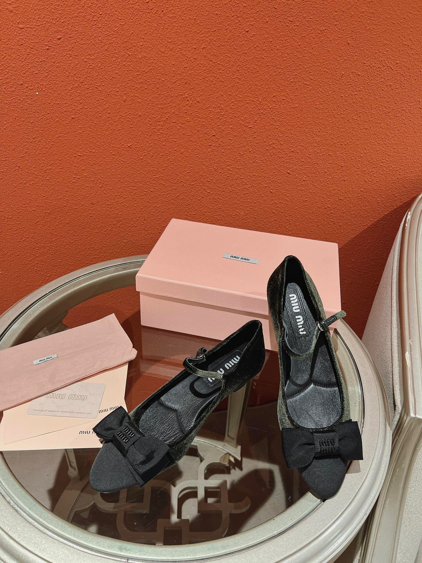 这款鞋子是AAAAA 1:1 质量 (非常棒). 使用了和原版一模一样的材料. 商标部分也保持了和缪缪/Miu Miu一样. 图片拍摄是实物鞋子拍摄, 您所收到的实物保证和我们图片一模一样.