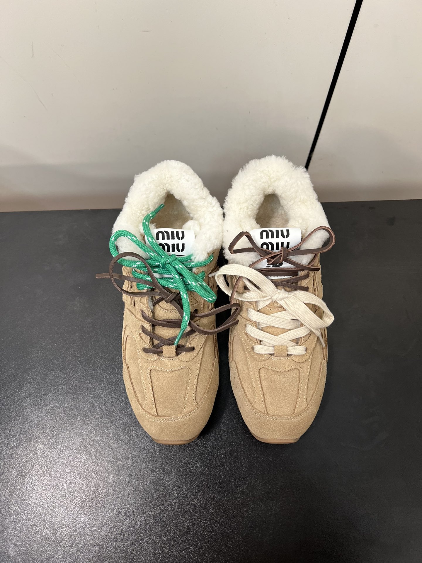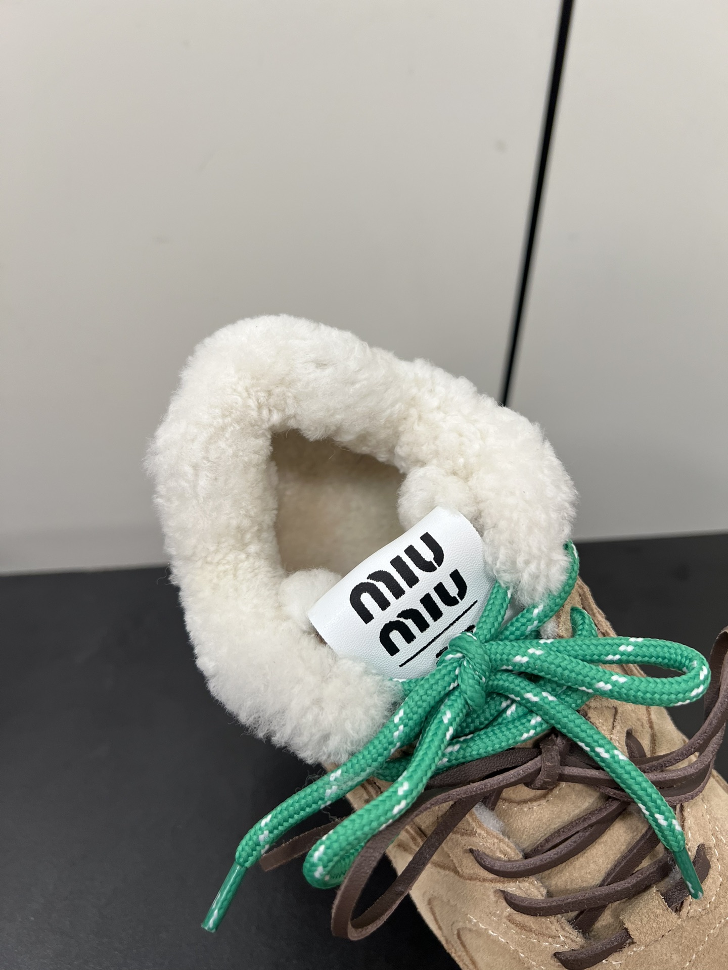 这款鞋子是AAAAA 1:1 质量 (非常棒). 使用了和原版一模一样的材料. 商标部分也保持了和缪缪/Miu Miu一样. 图片拍摄是实物鞋子拍摄, 您所收到的实物保证和我们图片一模一样.