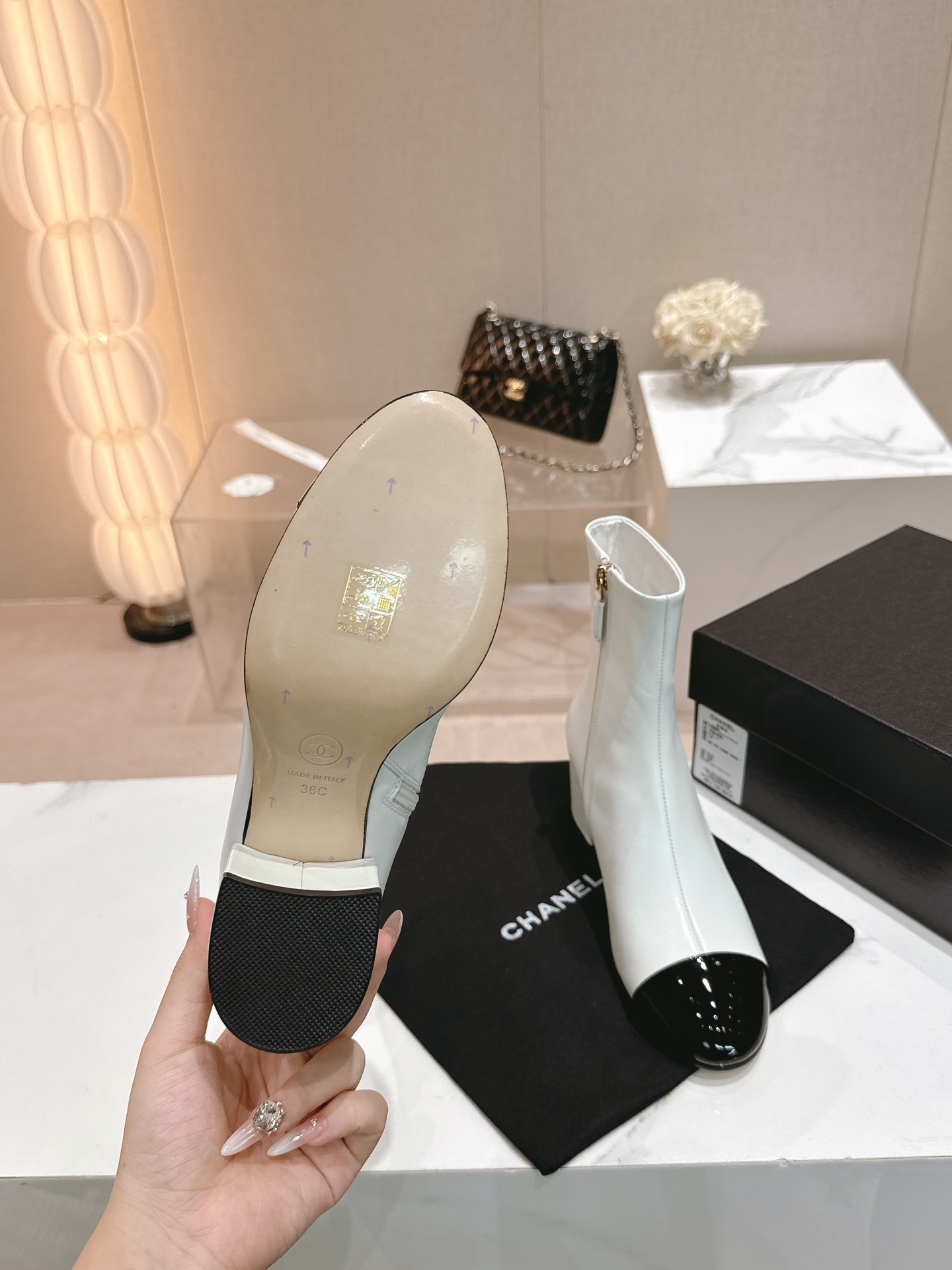这款鞋子是AAAAA 1:1 质量 (非常棒). 使用了和原版一模一样的材料. 商标部分也保持了和香奈儿/Chanel一样. 图片拍摄是实物鞋子拍摄, 您所收到的实物保证和我们图片一模一样.