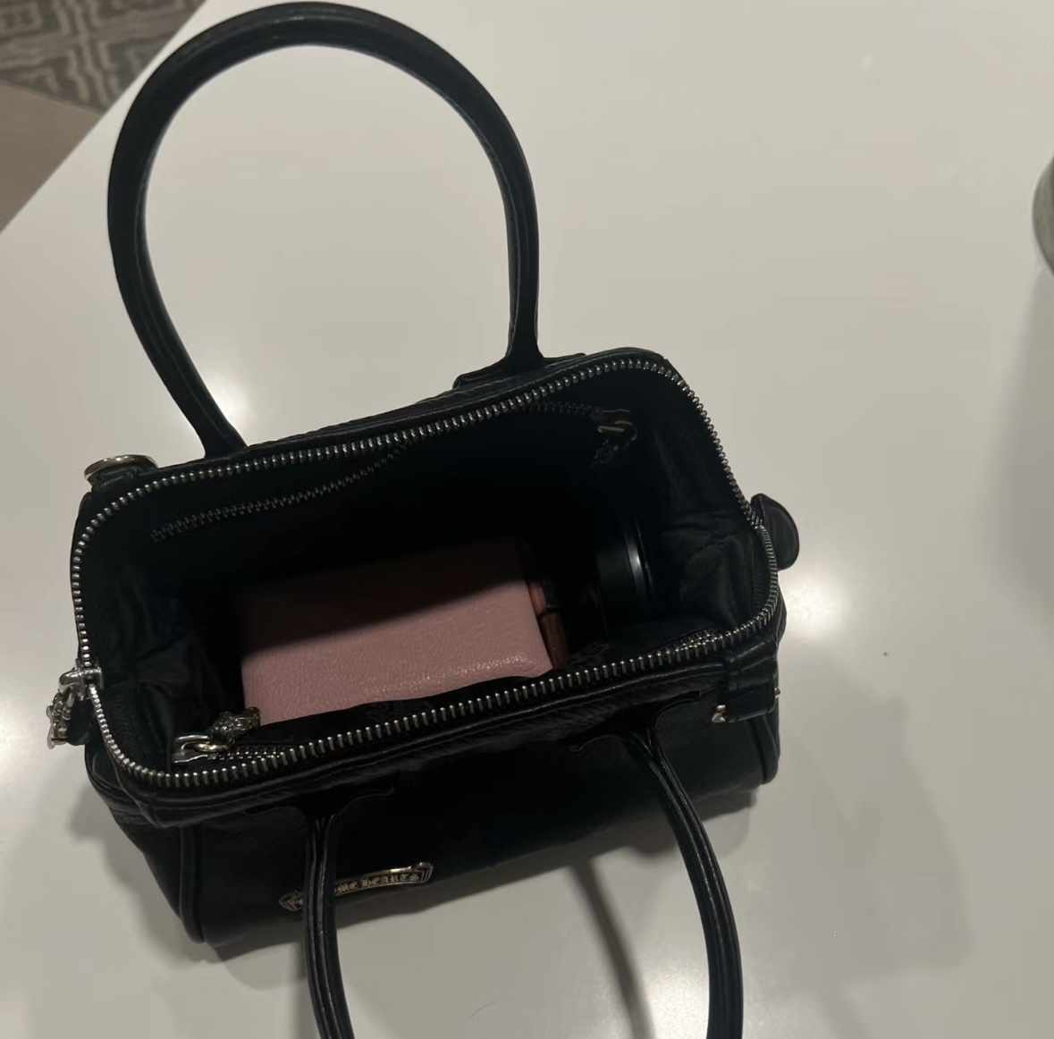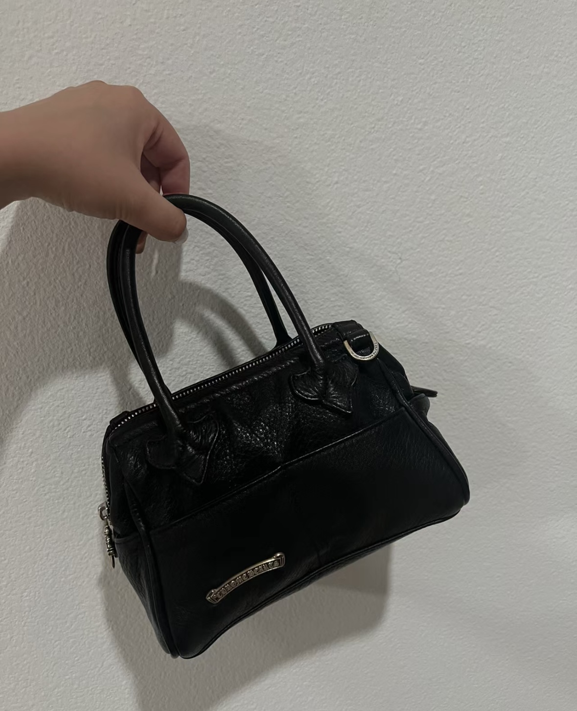 这款包包是AAAAA 1:1 质量 (非常棒). 使用了和原版一模一样的材料. 商标部分也保持了和克罗心/Chrome Hearts一样. 图片拍摄是实物包包拍摄, 您所收到的实物保证和我们图片一模一样.