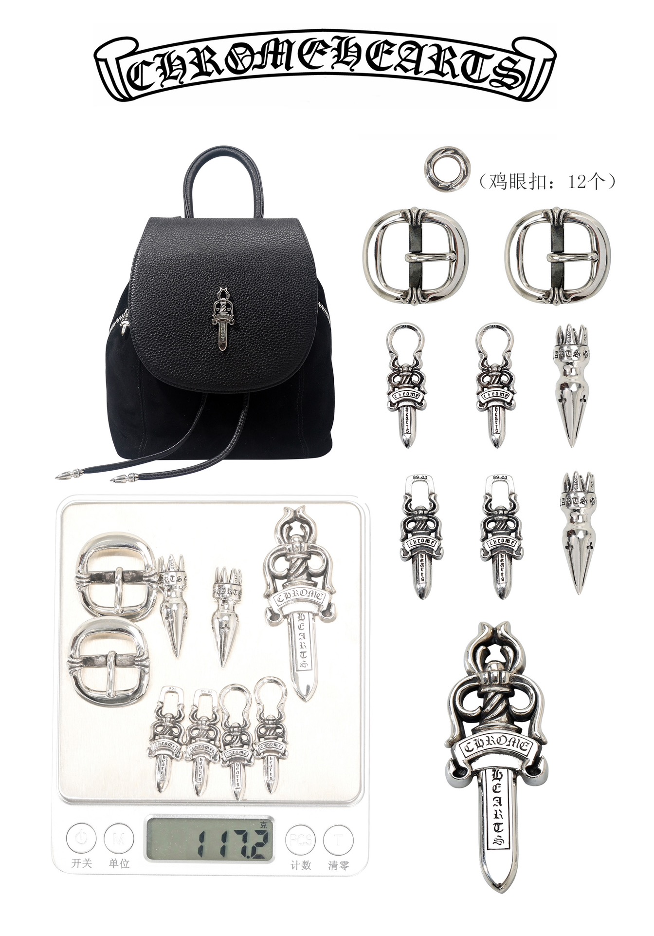这款背包是AAAAA 1:1 质量 (非常棒). 使用了和原版一模一样的材料. 商标部分也保持了和克罗心/Chrome Hearts一样. 图片拍摄是实物背包拍摄, 您所收到的实物保证和我们图片一模一样.