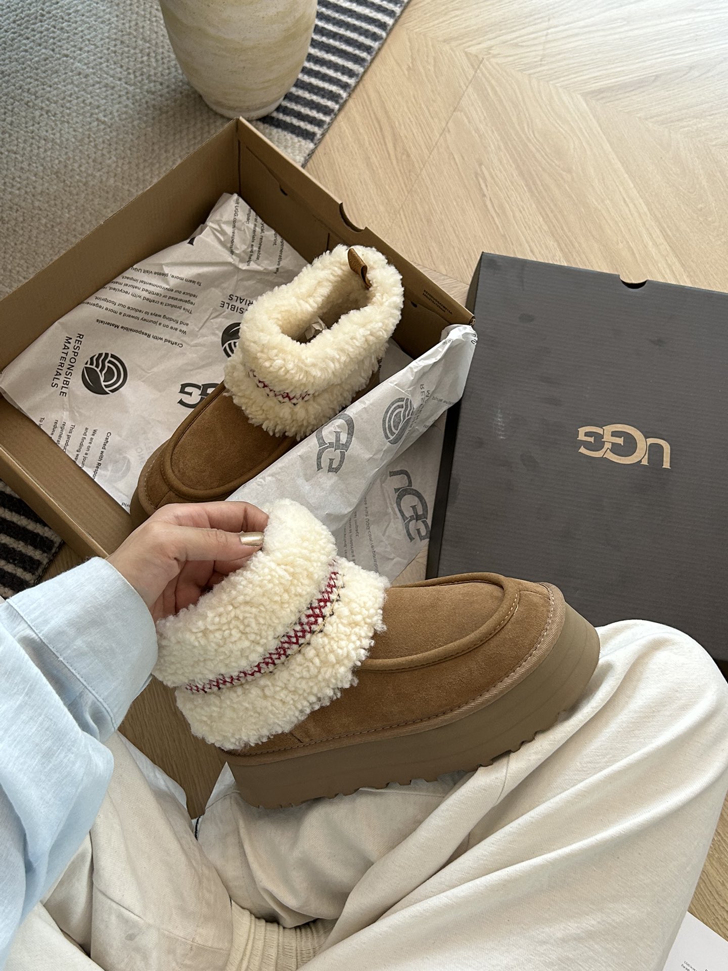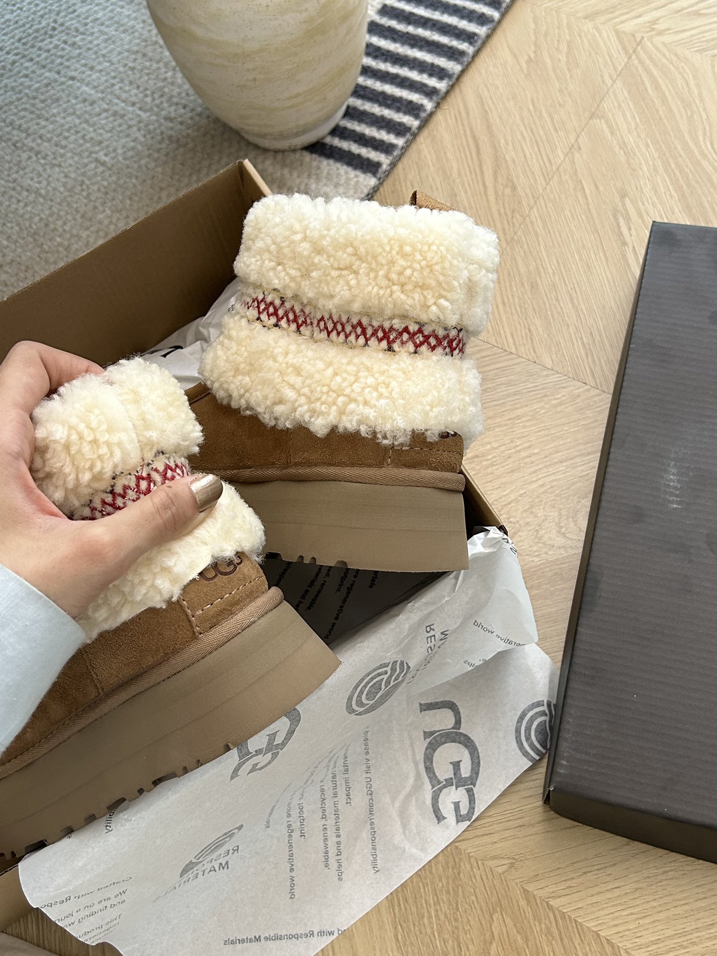 这款鞋子是AAAAA 1:1 质量 (非常棒). 使用了和原版一模一样的材料. 商标部分也保持了和UGG雪地靴一样. 图片拍摄是实物鞋子拍摄, 您所收到的实物保证和我们图片一模一样.