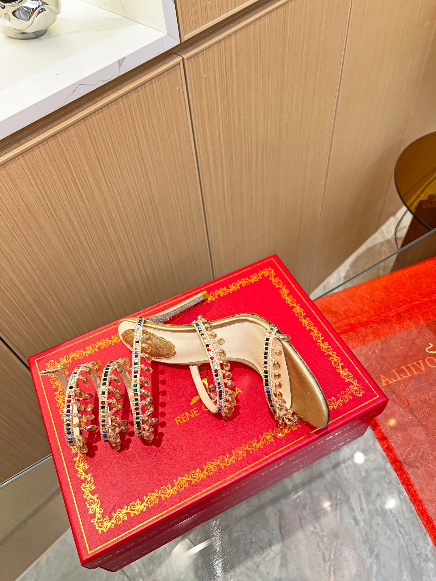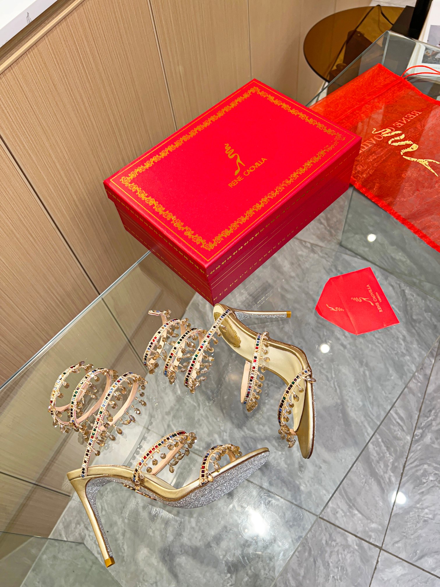 这款鞋子是AAAAA 1:1 质量 (非常棒). 使用了和原版一模一样的材料. 商标部分也保持了和芮妮·乔薇拉/Rene Caovilla一样. 图片拍摄是实物鞋子拍摄, 您所收到的实物保证和我们图片一模一样.