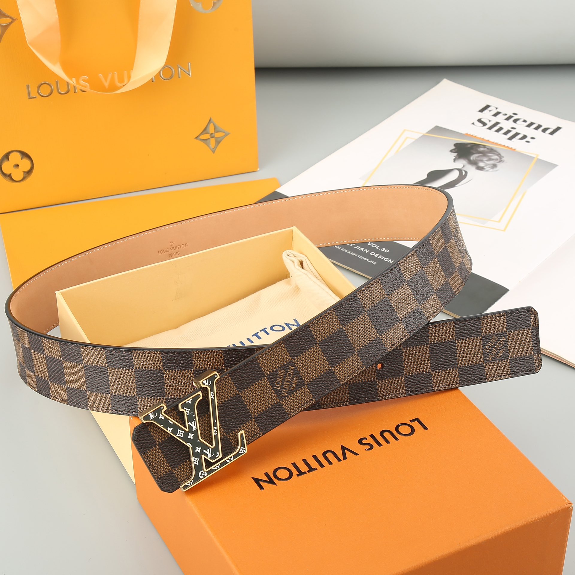 这款皮带是AAAAA 1:1 质量 (非常棒). 使用了和原版一模一样的材料. 商标部分也保持了和路易威登/Louis Vuitton一样. 图片拍摄是实物皮带拍摄, 您所收到的实物保证和我们图片一模一样.