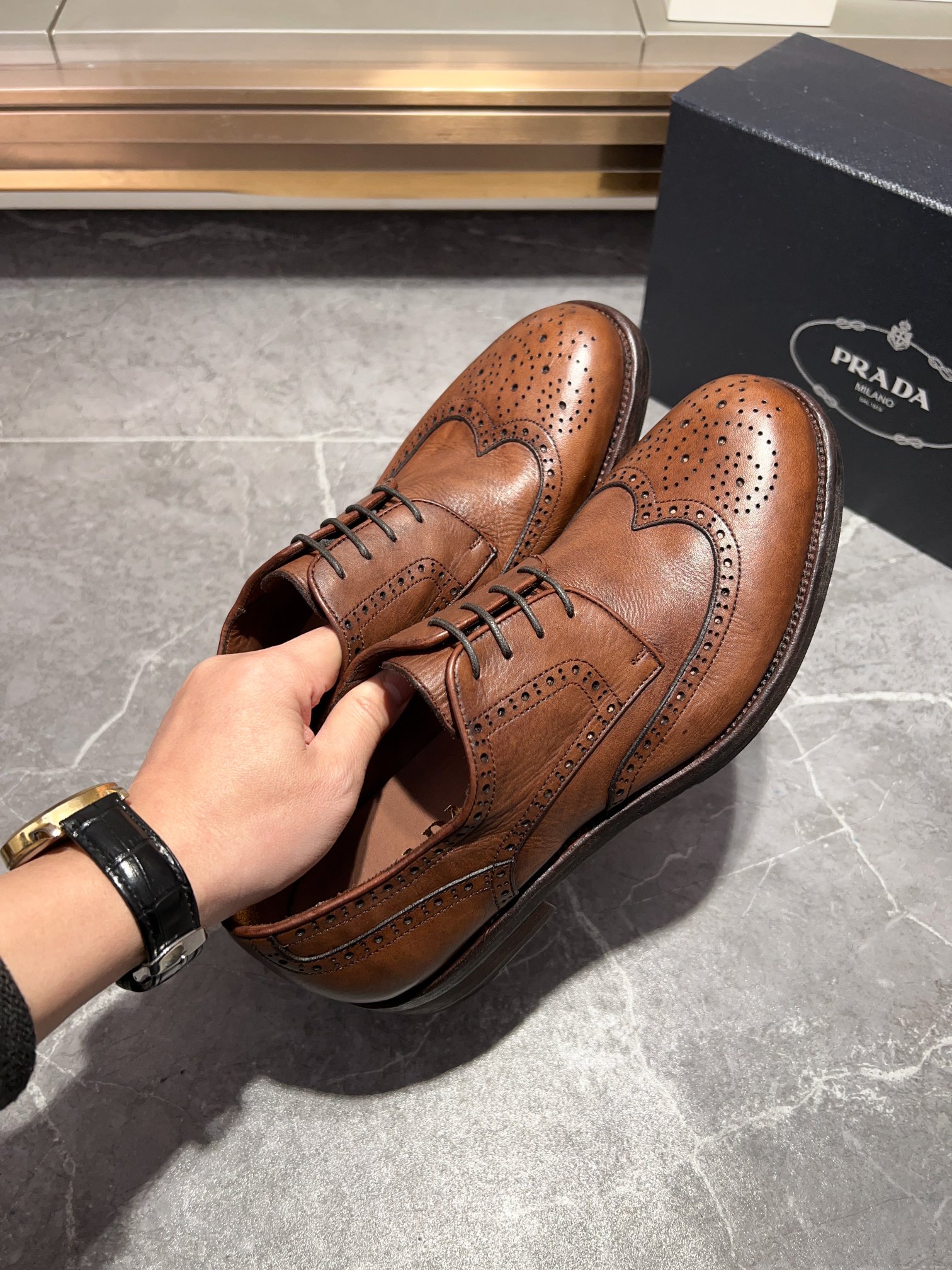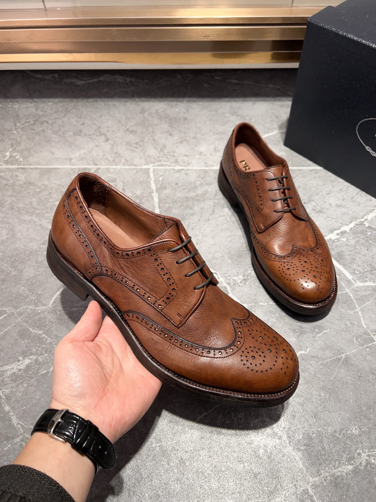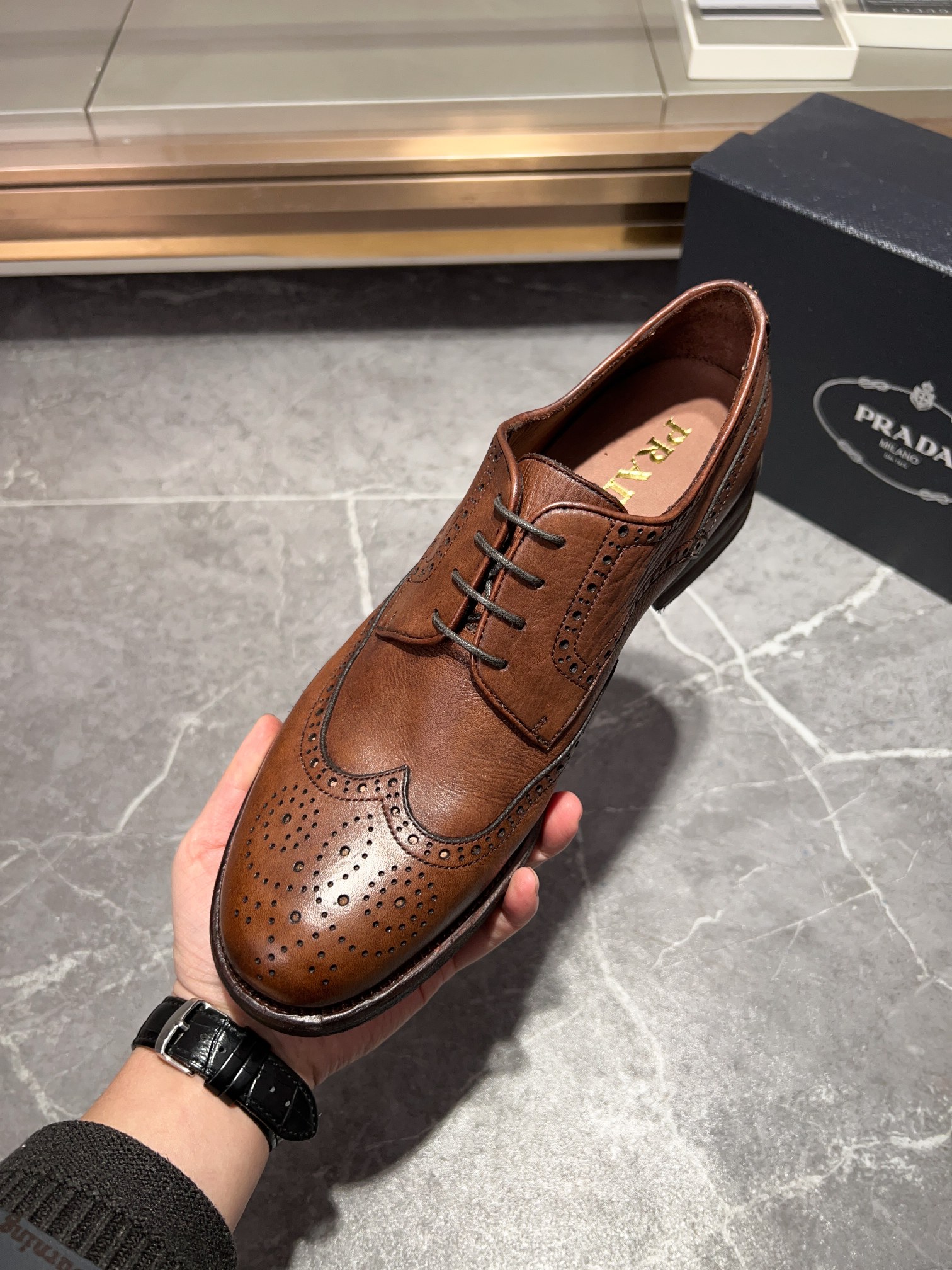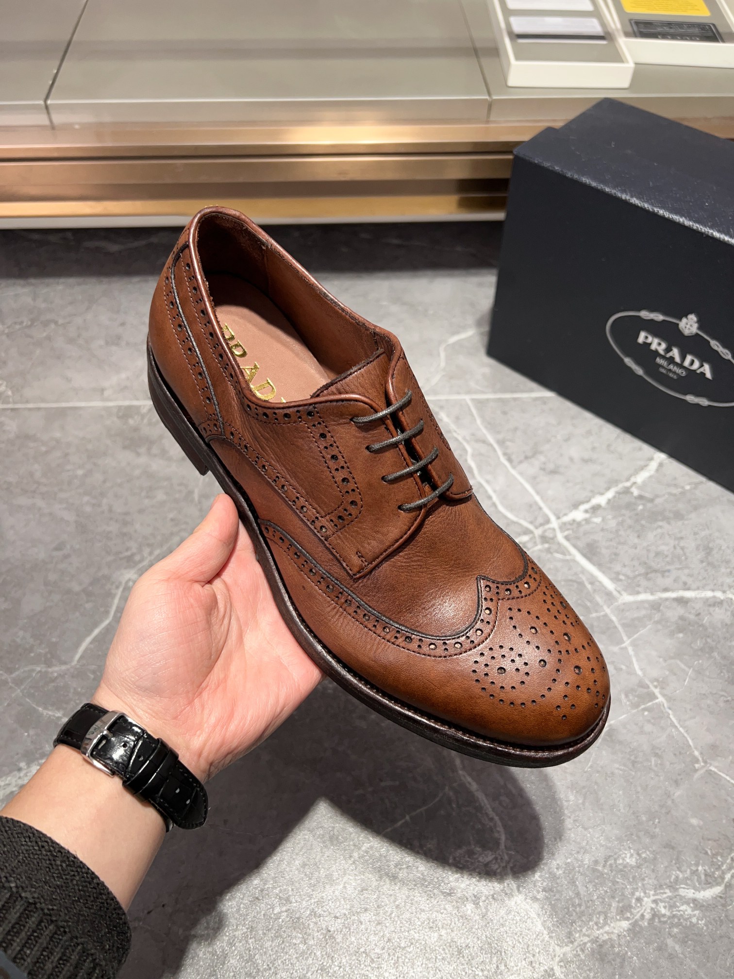 这款鞋子是AAAAA 1:1 质量 (非常棒). 使用了和原版一模一样的材料. 商标部分也保持了和普拉达/Prada一样. 图片拍摄是实物鞋子拍摄, 您所收到的实物保证和我们图片一模一样.