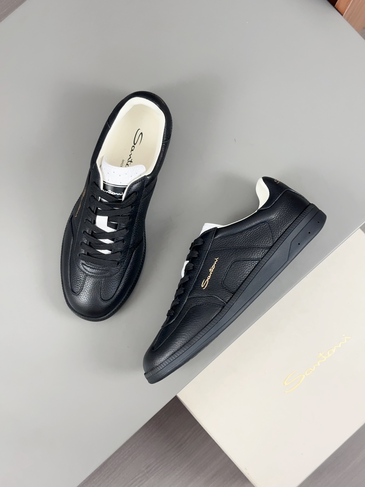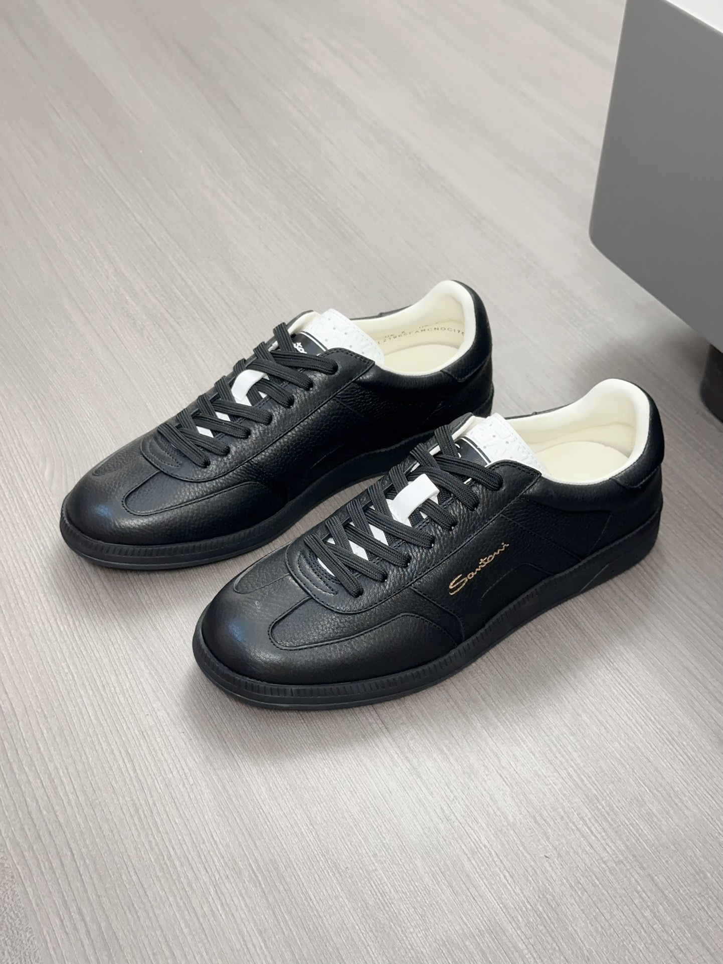 这款鞋子是AAAAA 1:1 质量 (非常棒). 使用了和原版一模一样的材料. 商标部分也保持了和Santoni一样. 图片拍摄是实物鞋子拍摄, 您所收到的实物保证和我们图片一模一样.