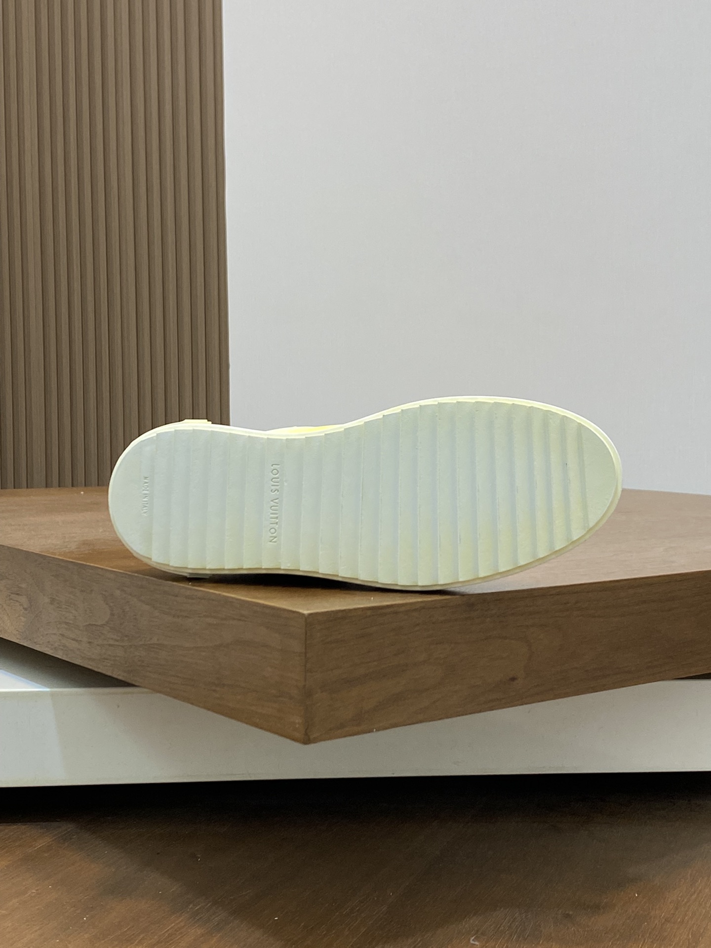这款鞋子是AAAAA 1:1 质量 (非常棒). 使用了和原版一模一样的材料. 商标部分也保持了和路易威登/Louis Vuitton一样. 图片拍摄是实物鞋子拍摄, 您所收到的实物保证和我们图片一模一样.